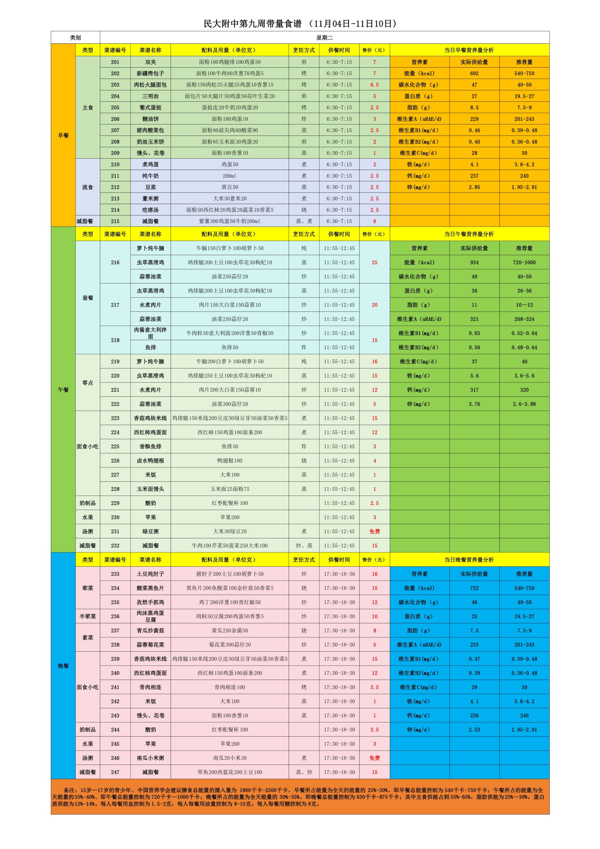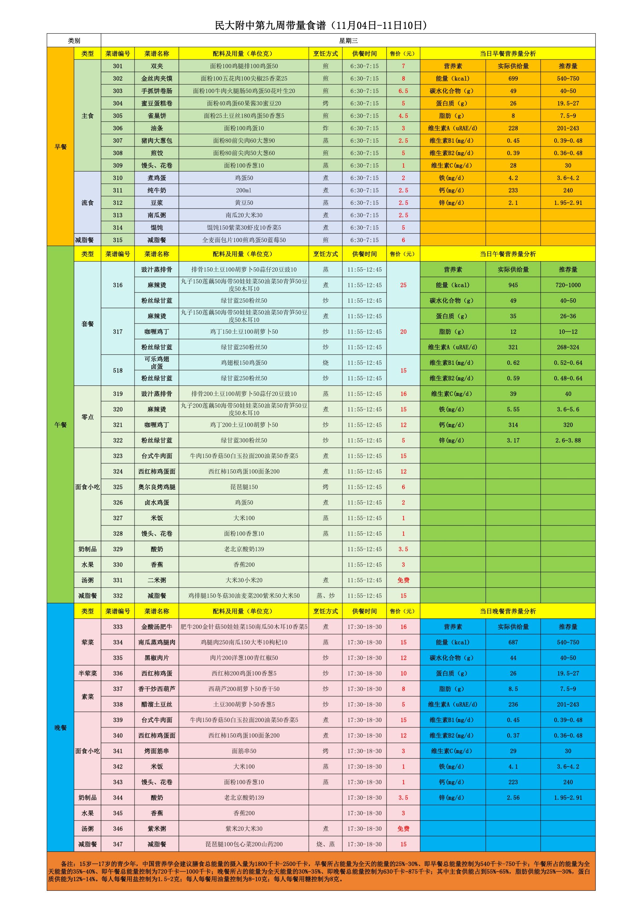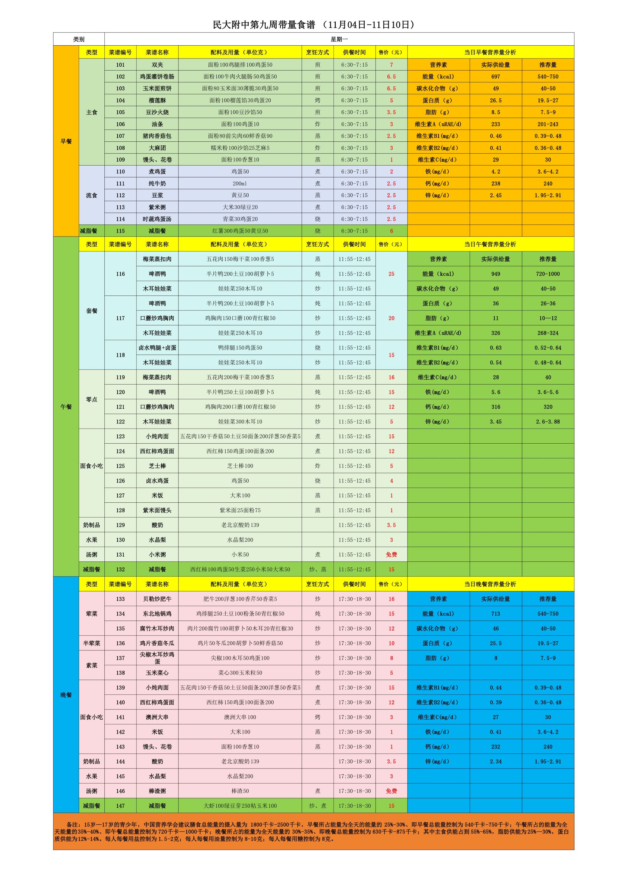 2024年秋季学期朝阳校区食堂菜谱(2024.11.4-11.10)