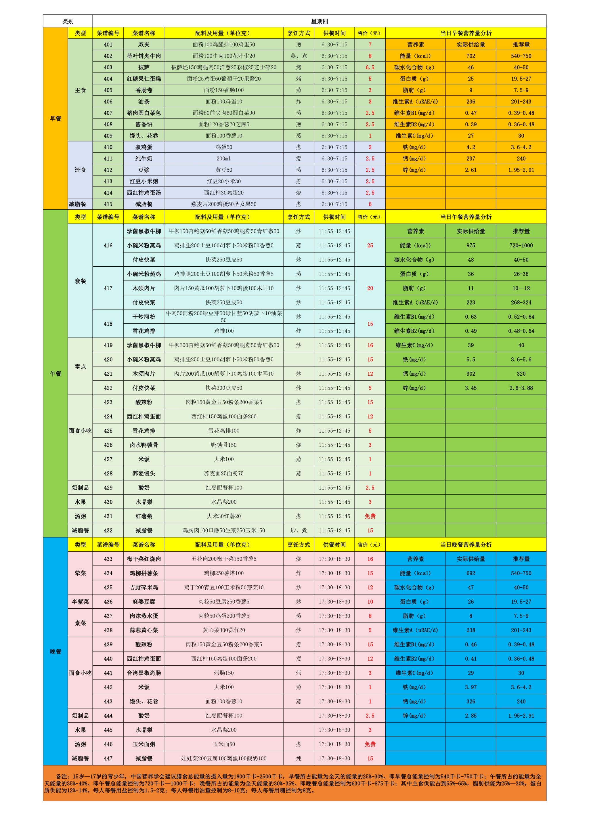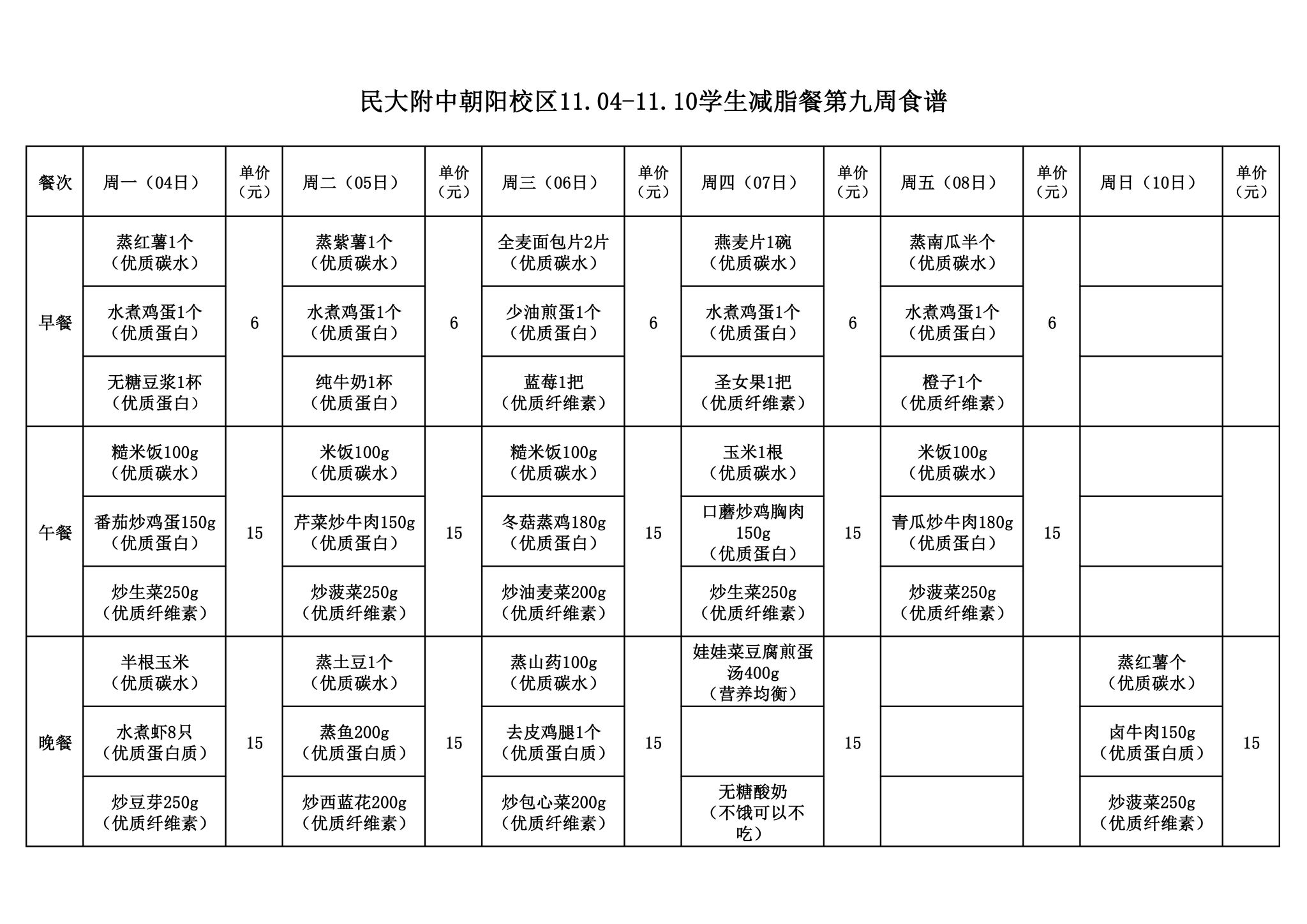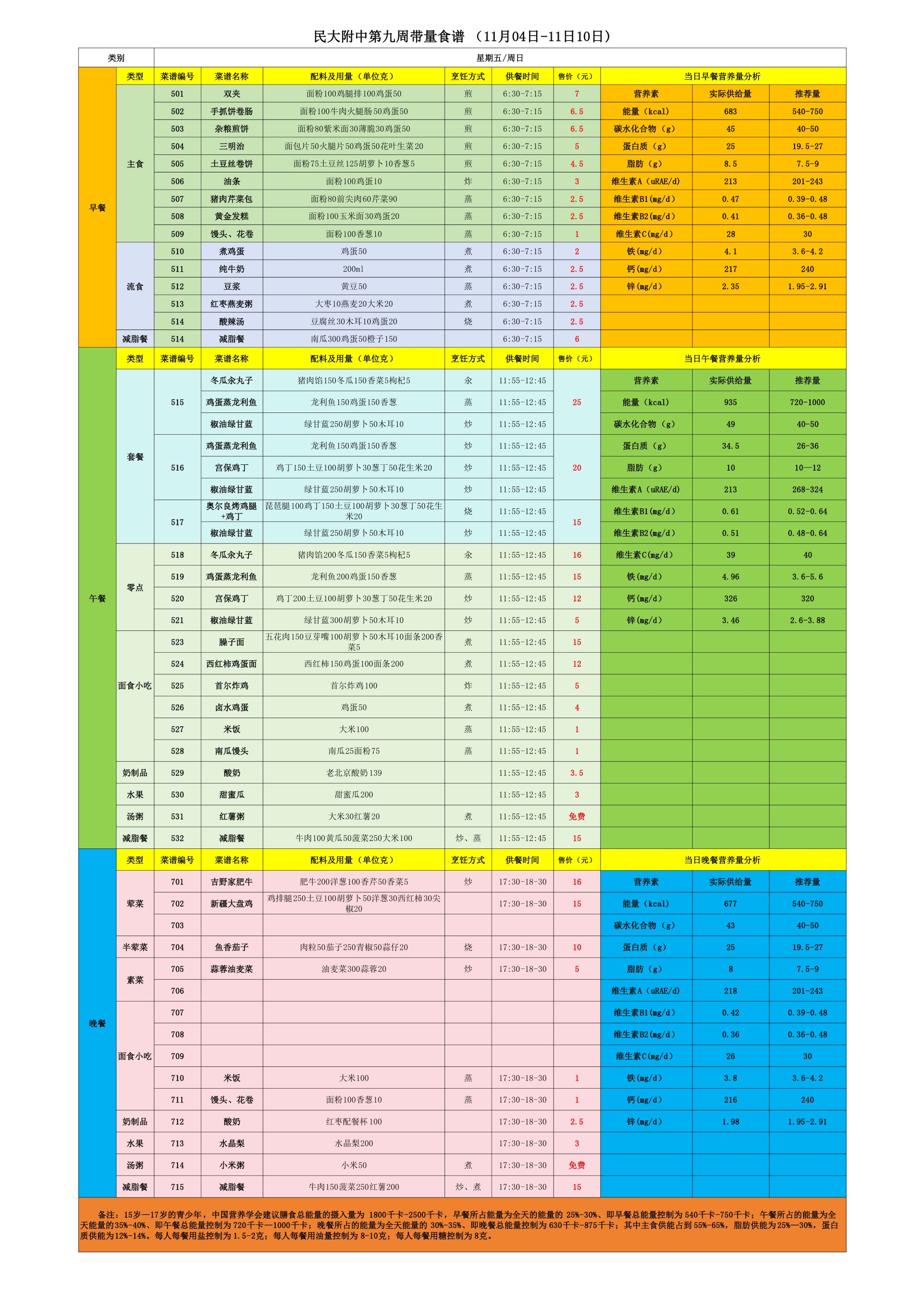 2024年秋季学期朝阳校区食堂菜谱(2024.11.4-11.10)