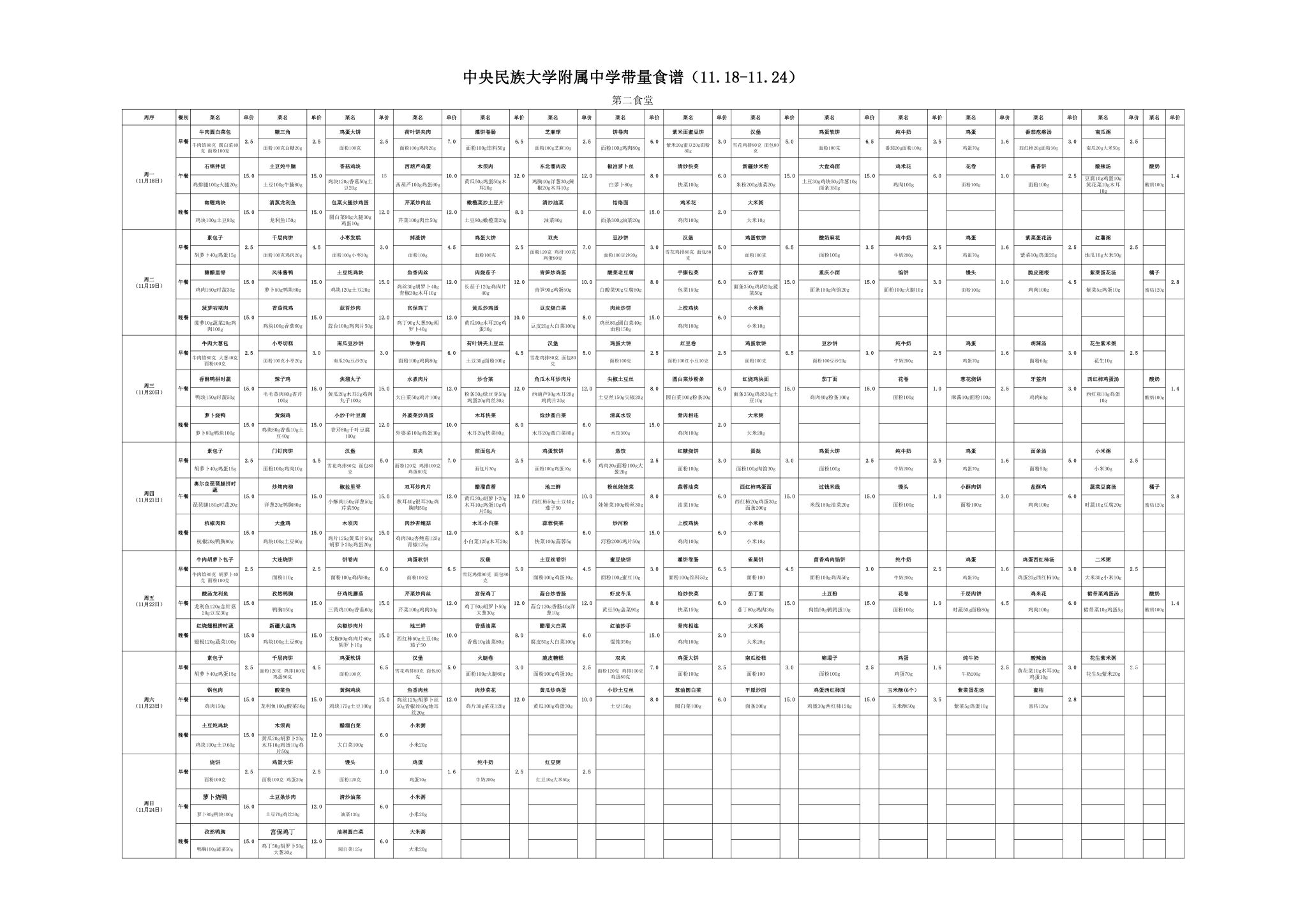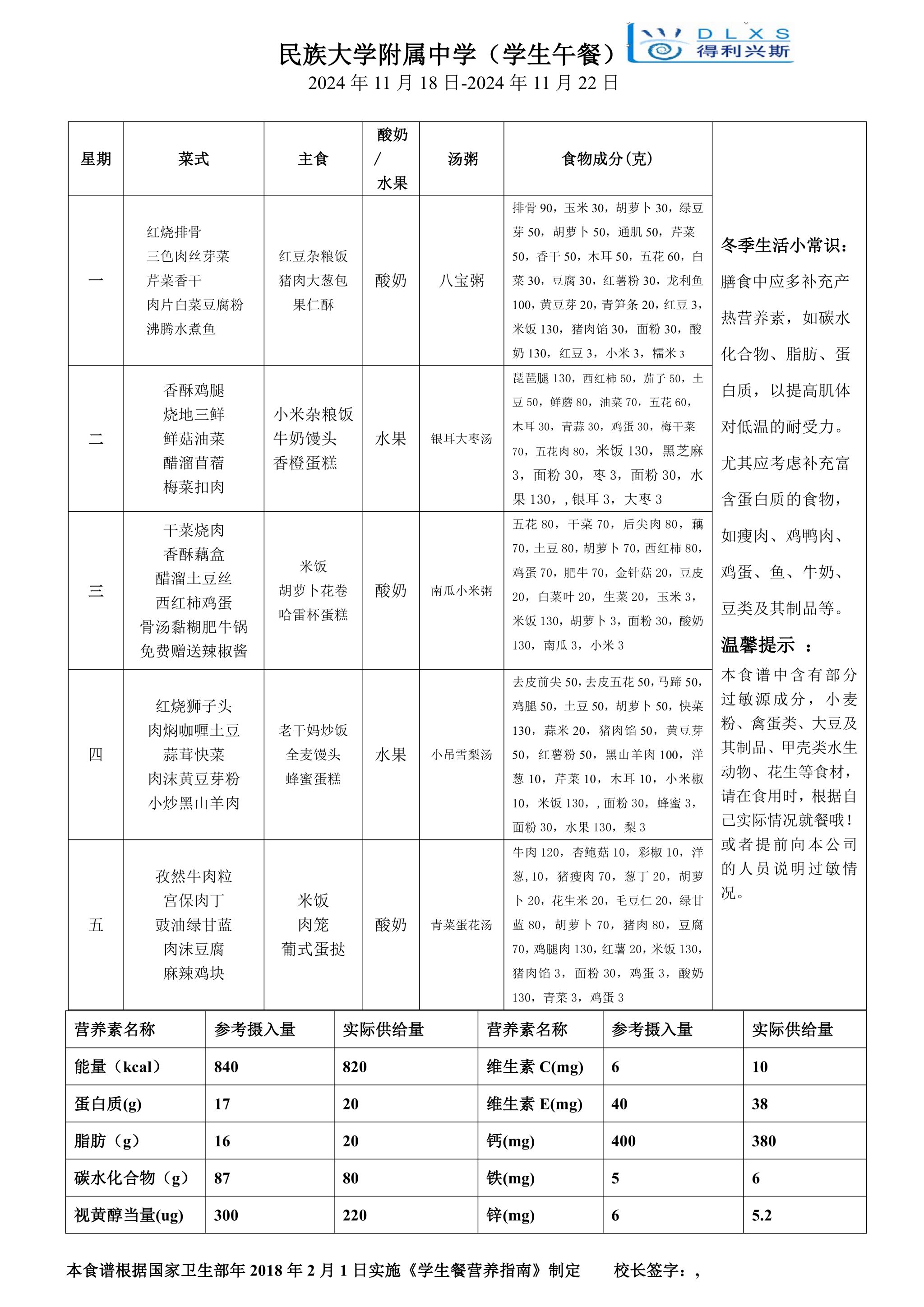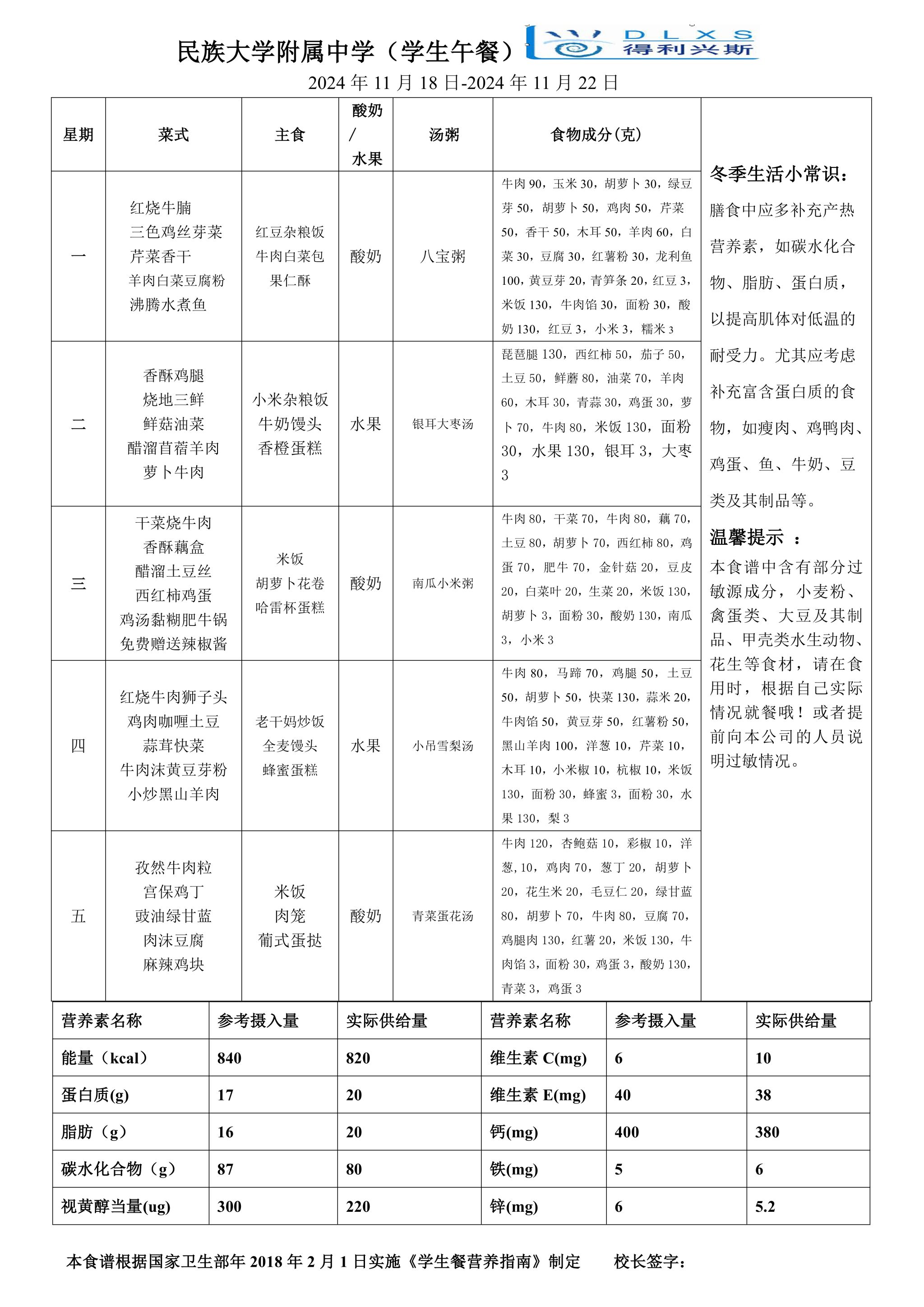 2024年秋季学期海淀校区食堂菜谱(2024.11.18-11.24)