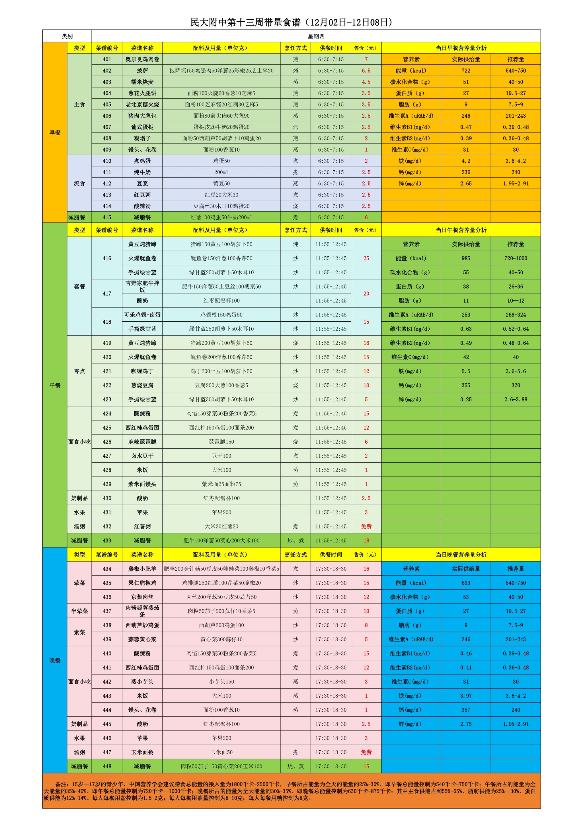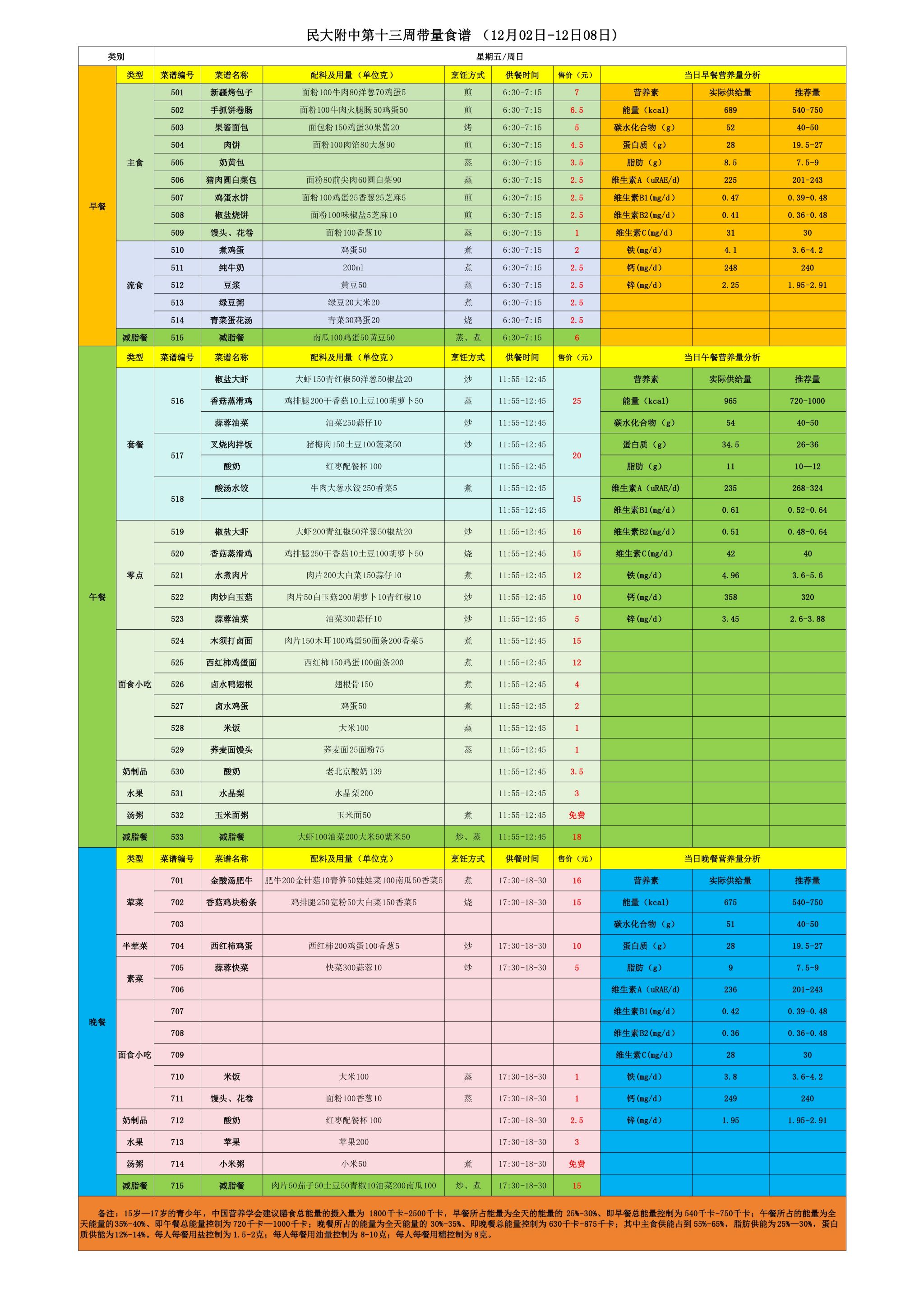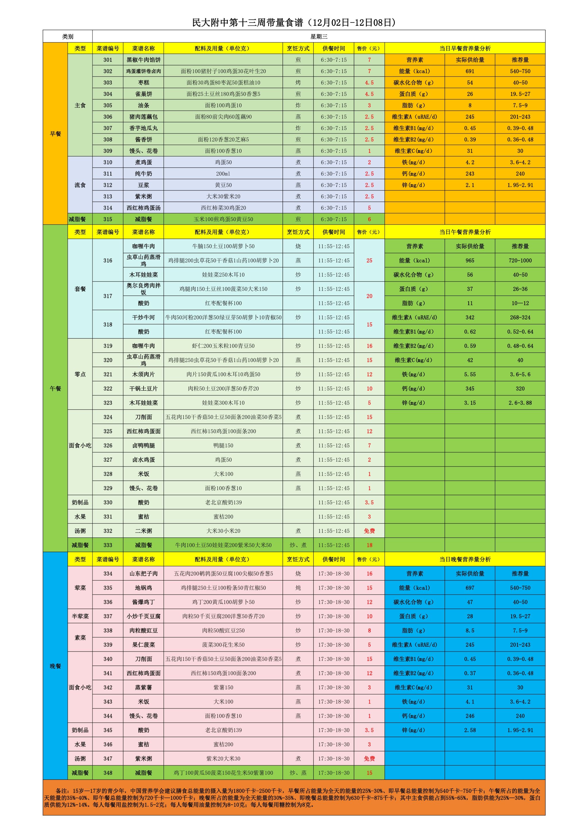 2024年秋季学期朝阳校区食堂菜谱(2024.12.02-12.08)