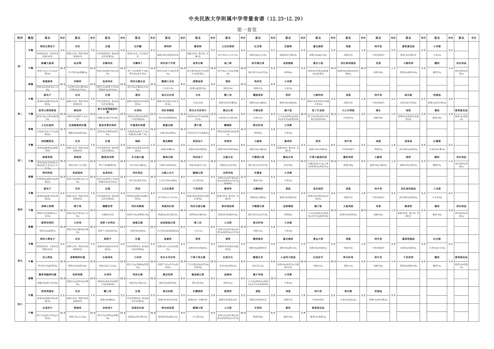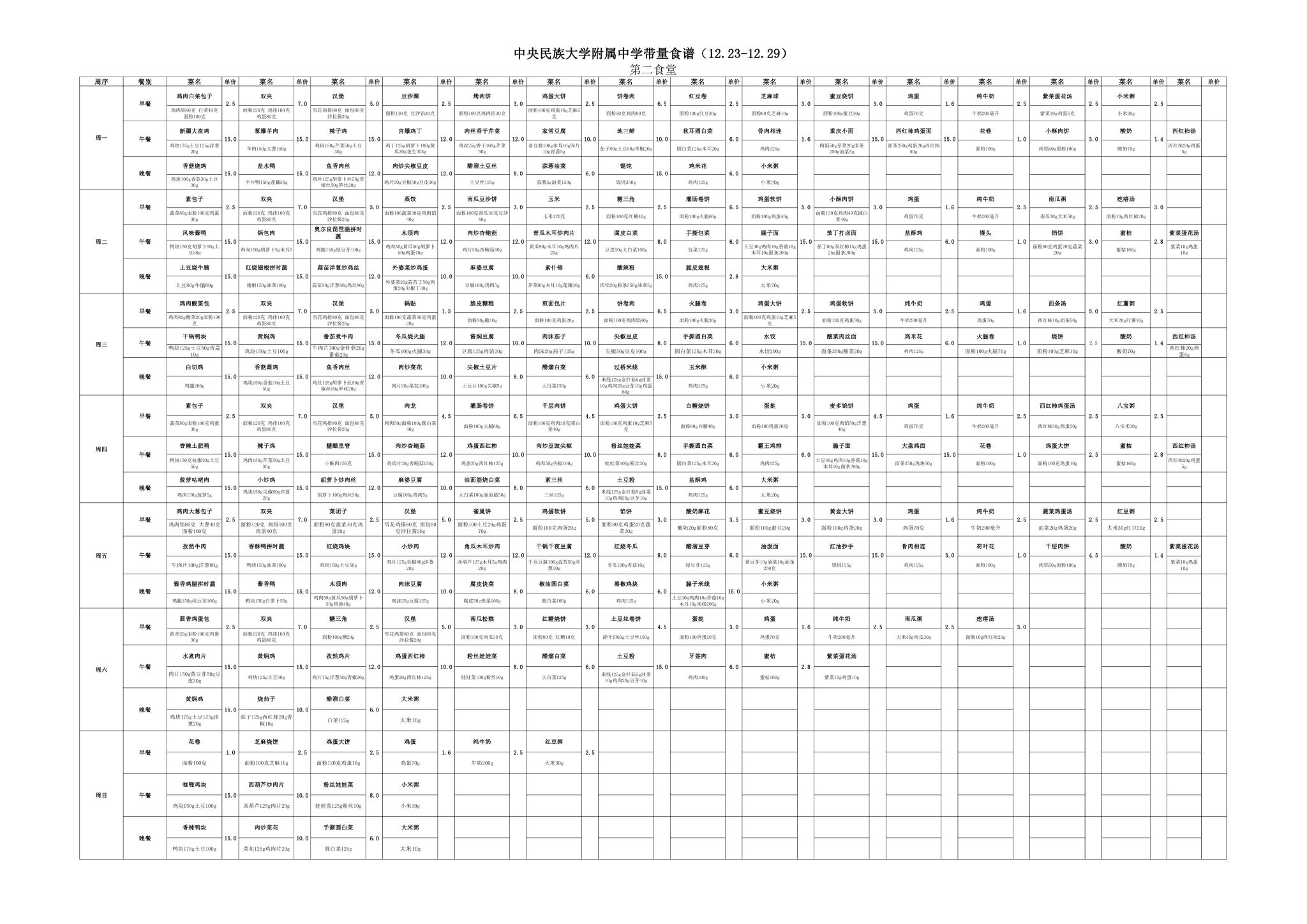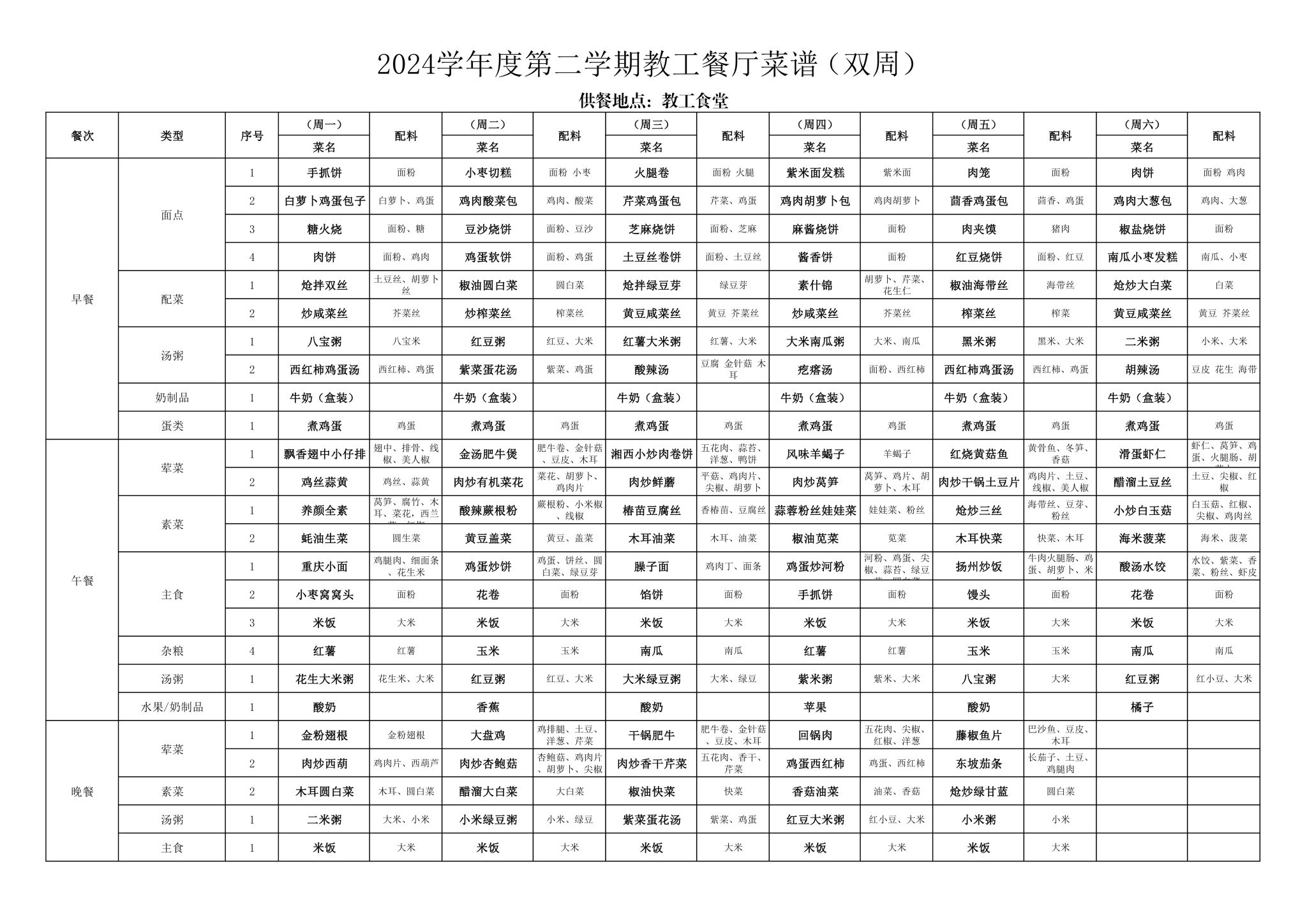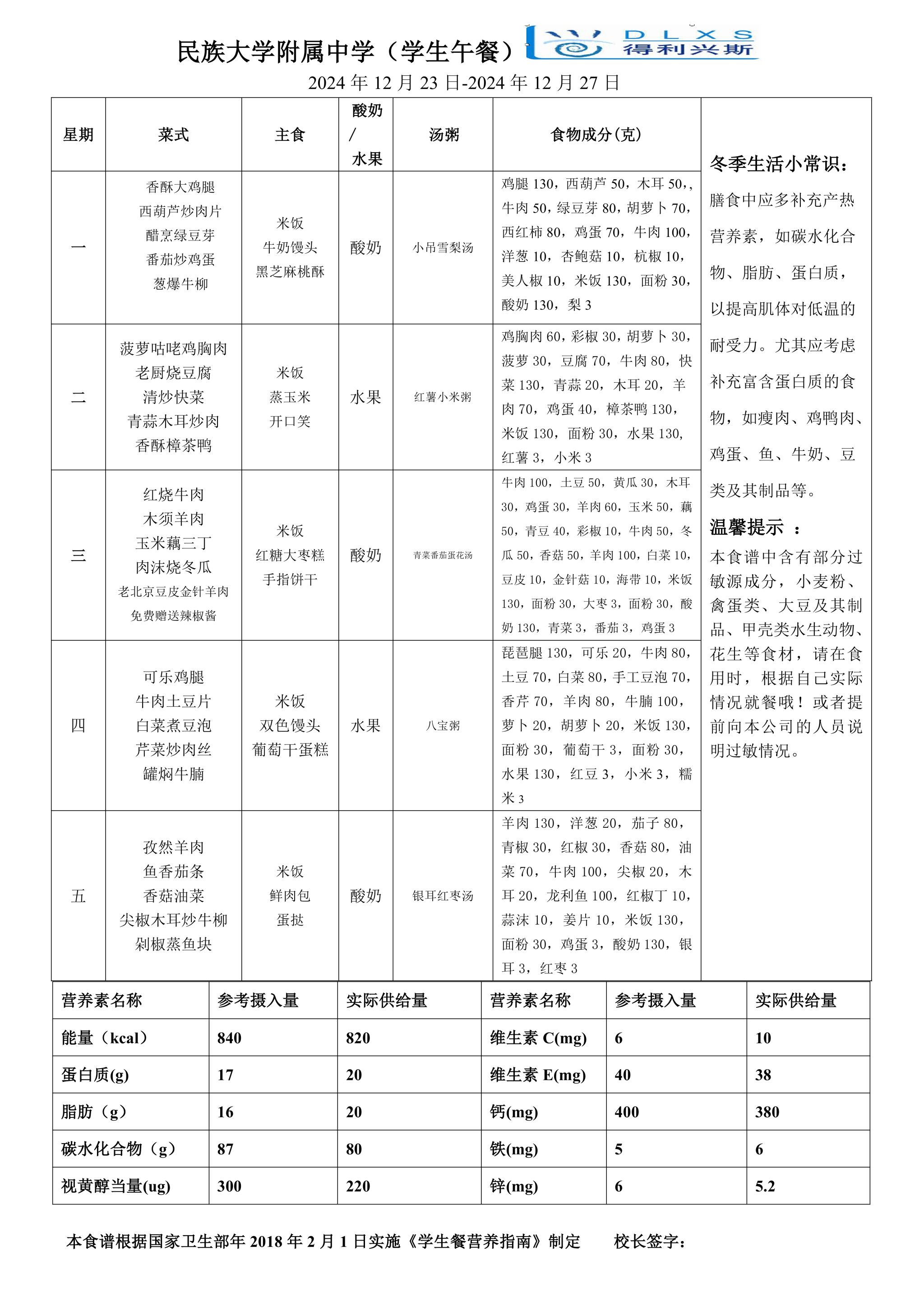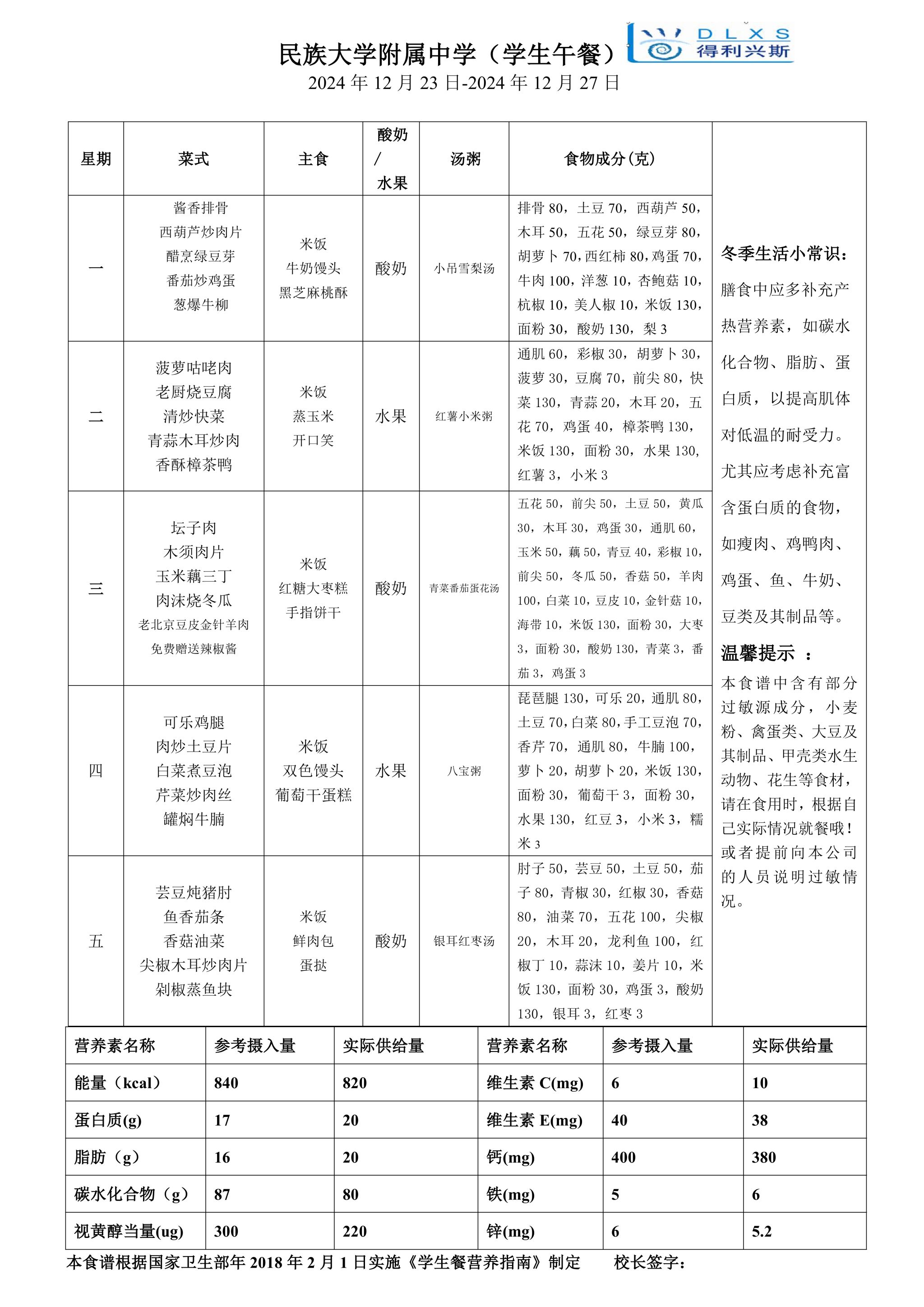 2024年秋季学期海淀校区食堂菜谱(2024.12.23-12.29)