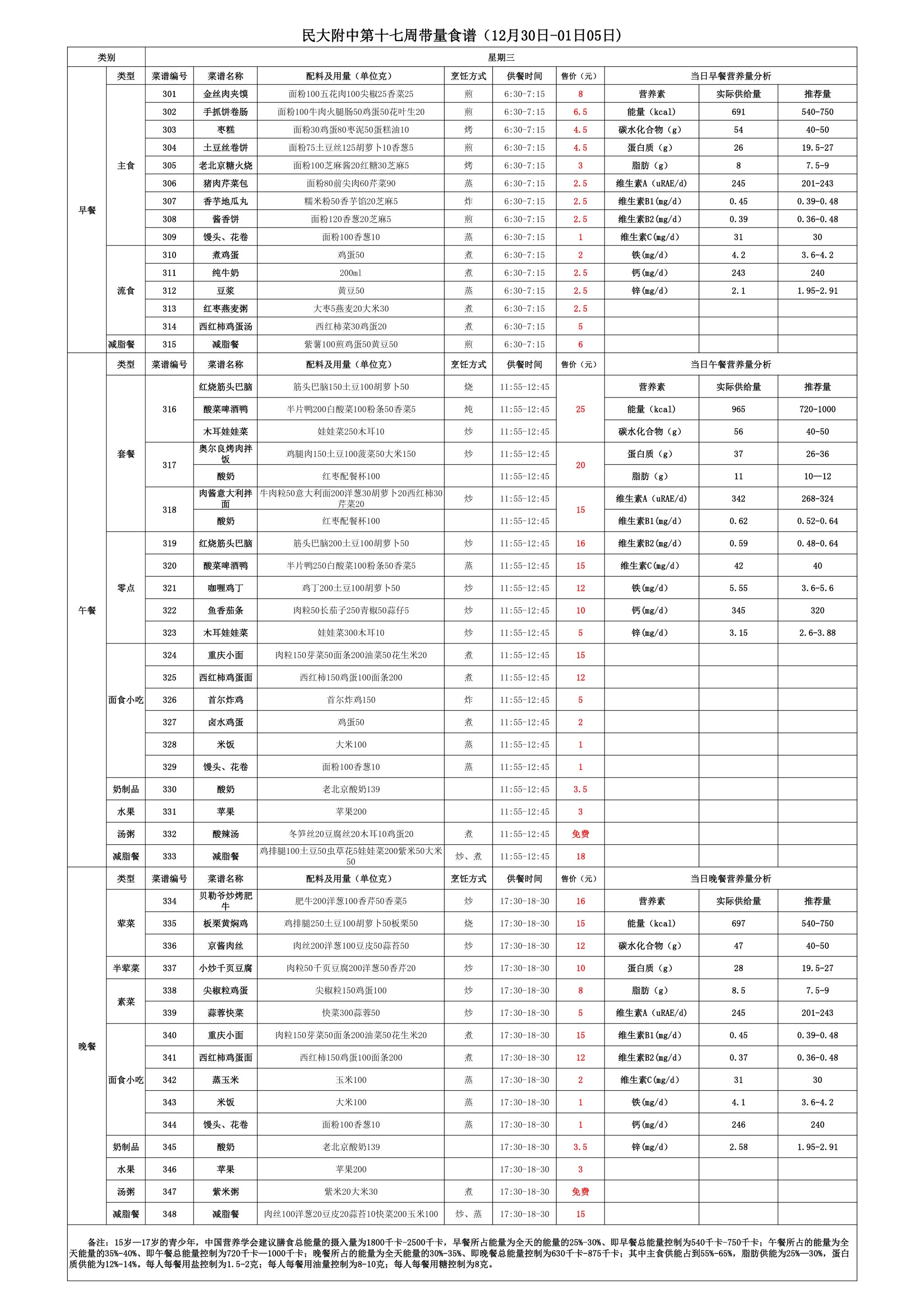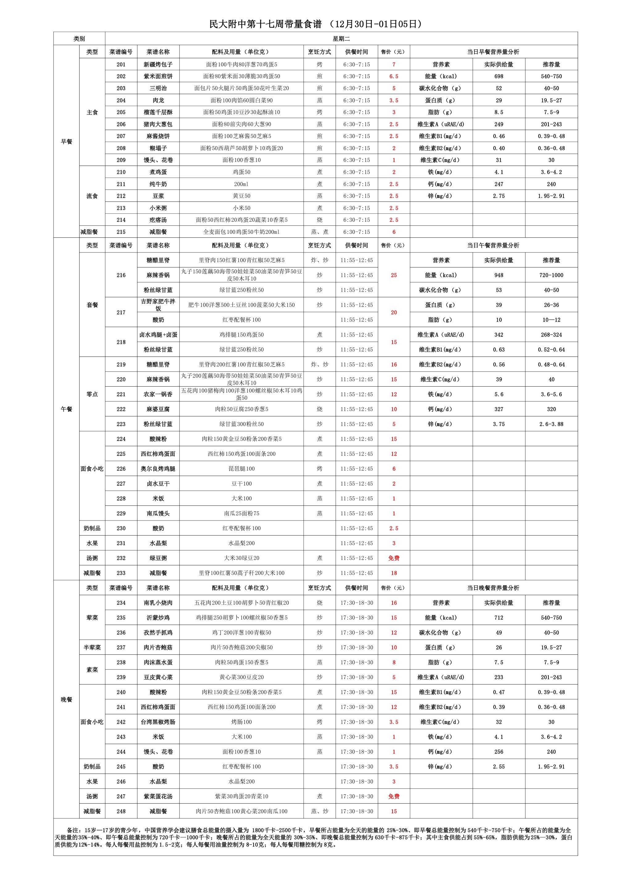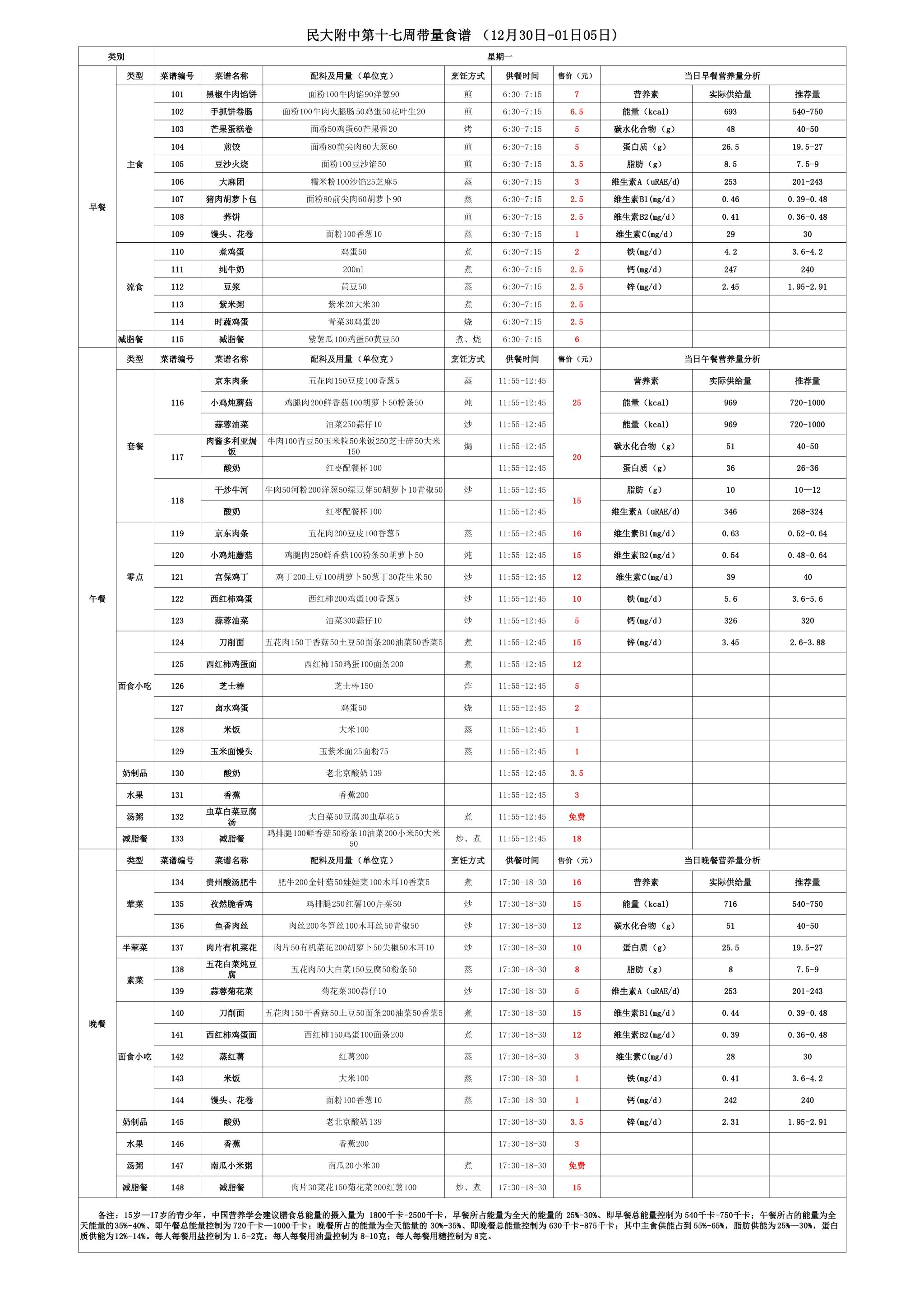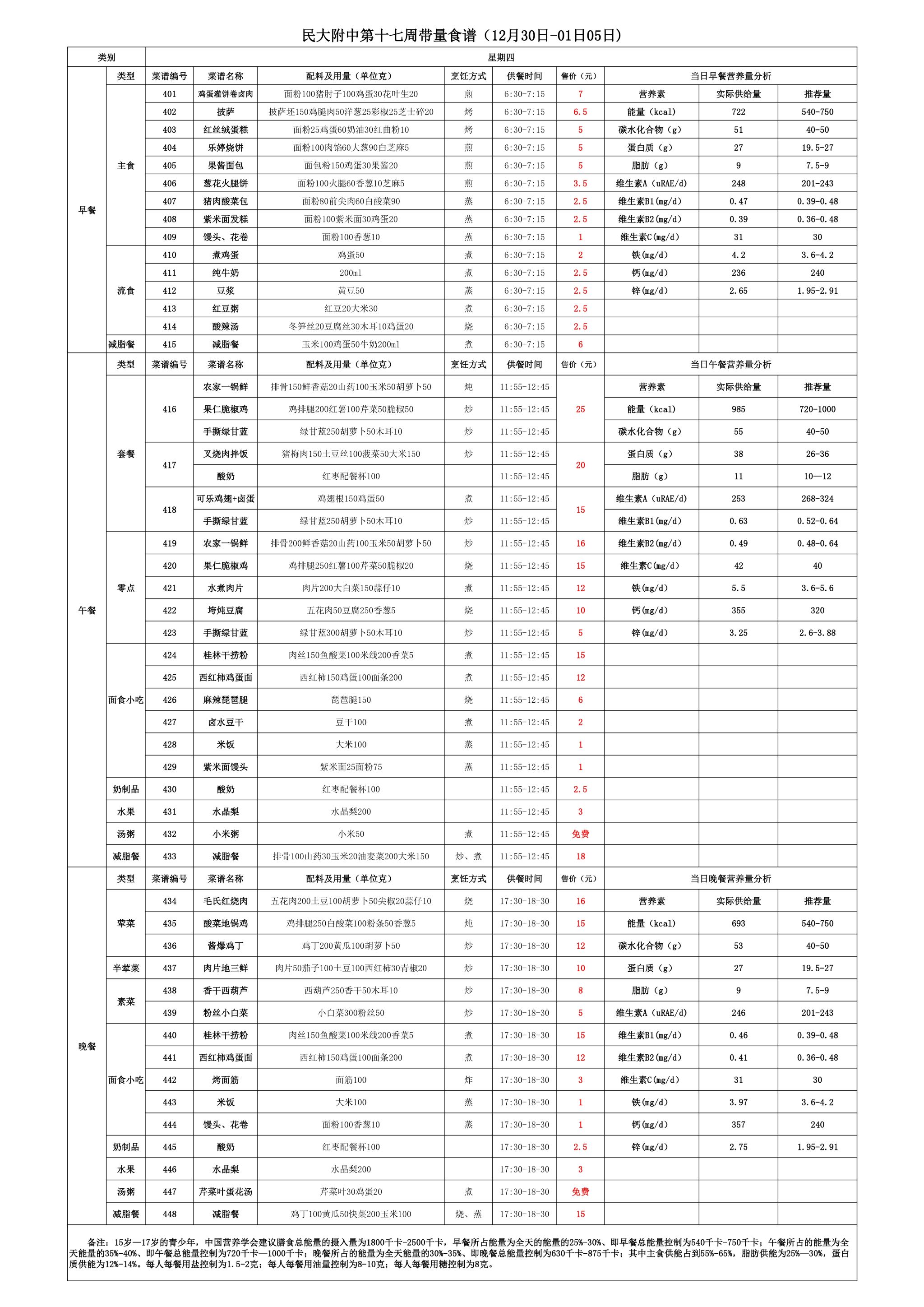 2024年秋季学期朝阳校区食堂菜谱(2024.12.30-2025.1.05)
