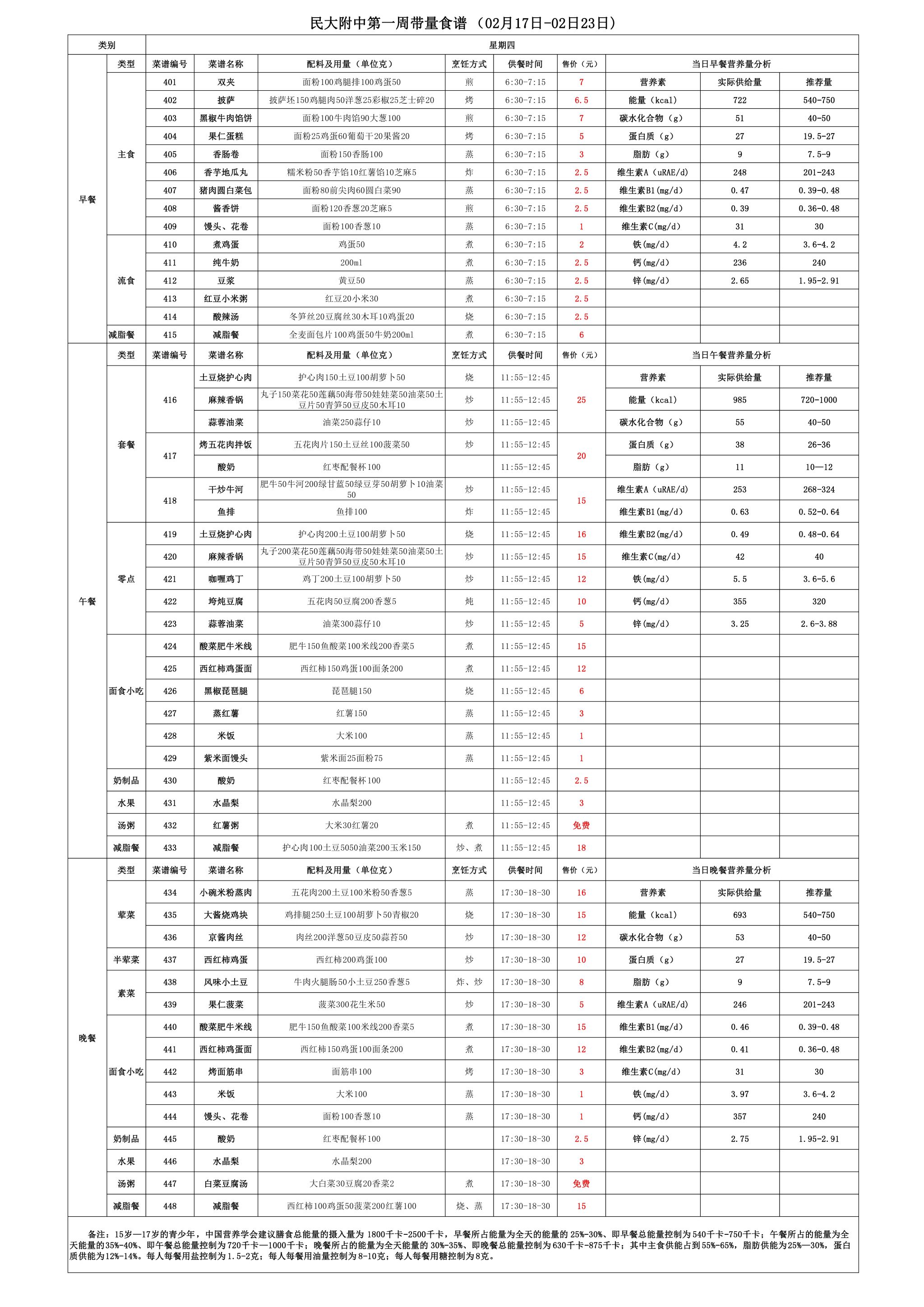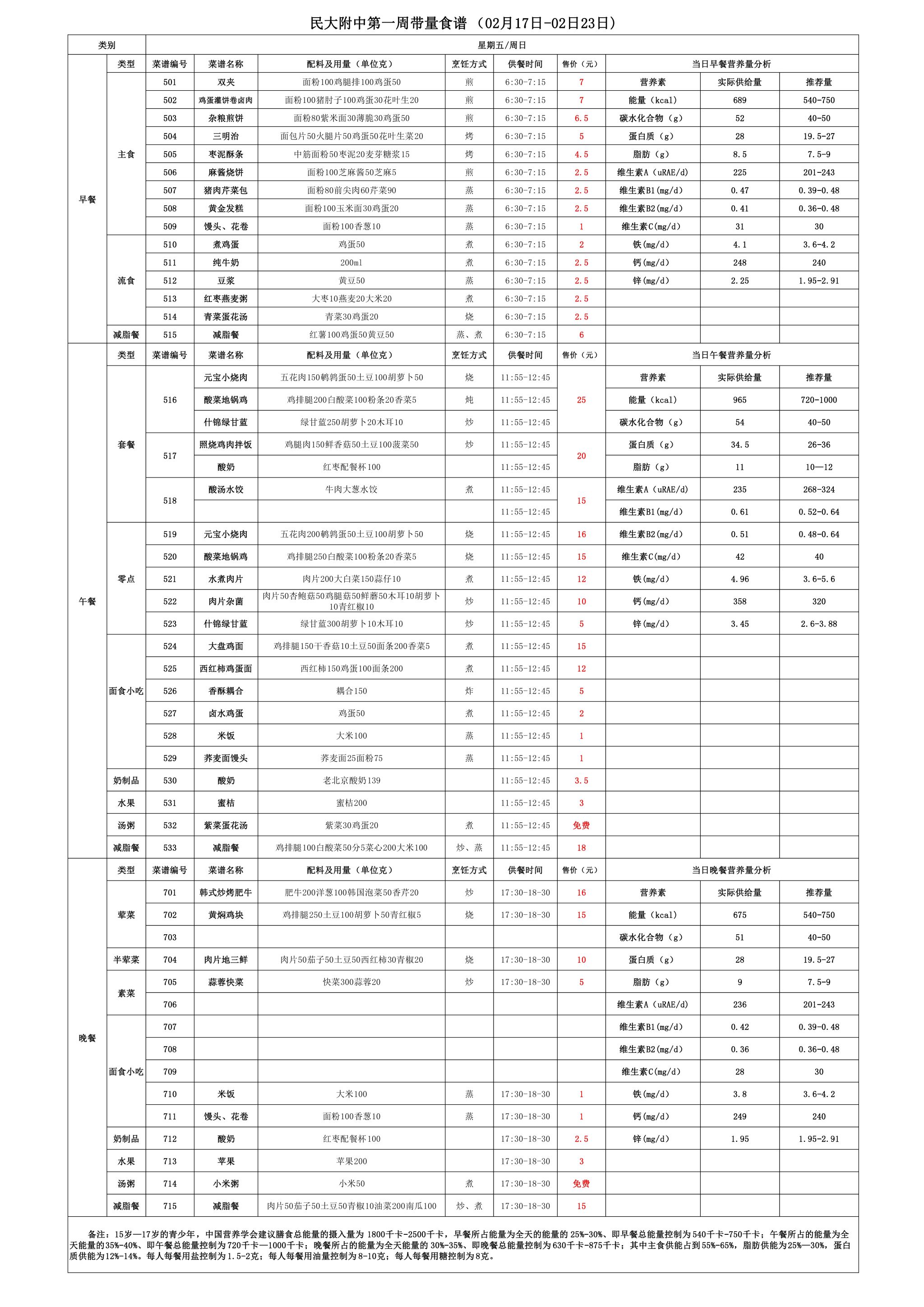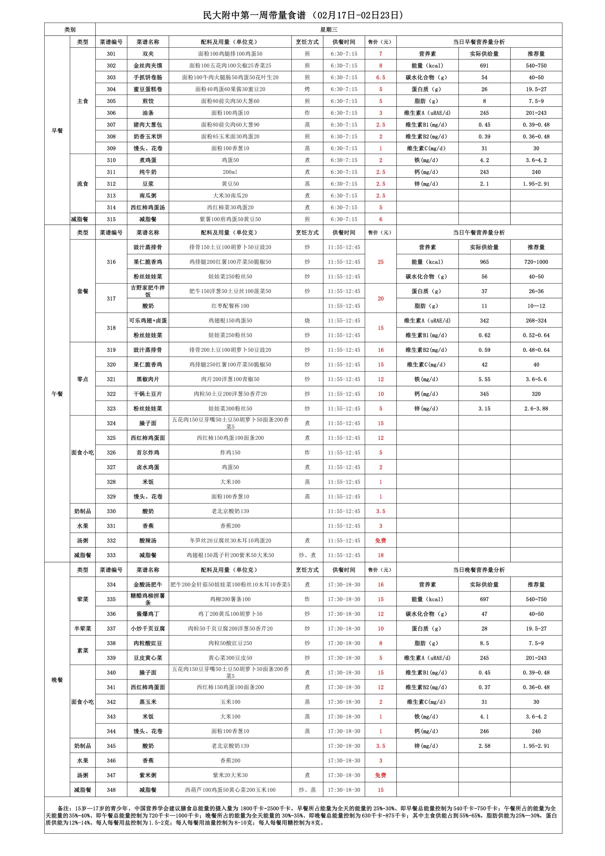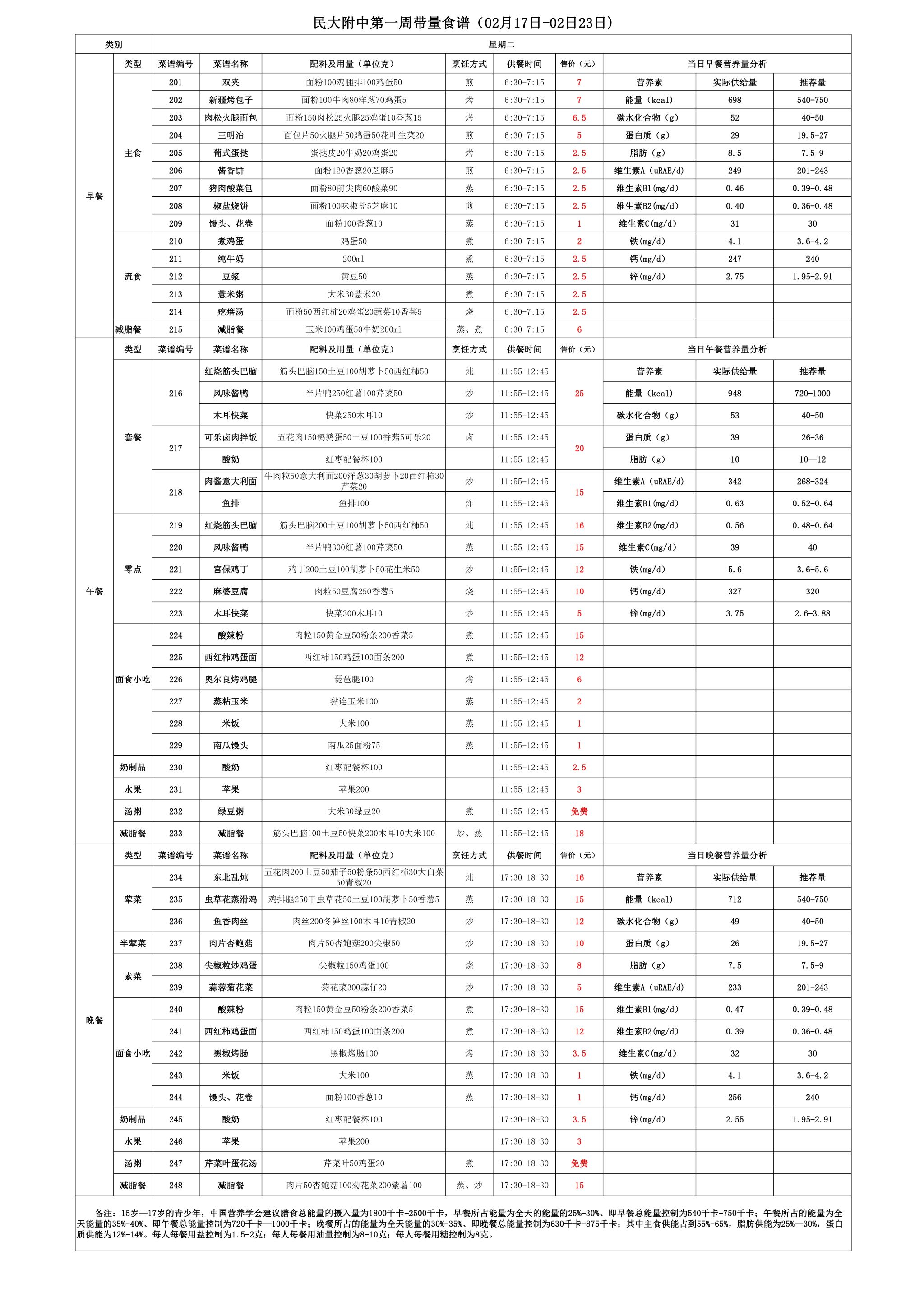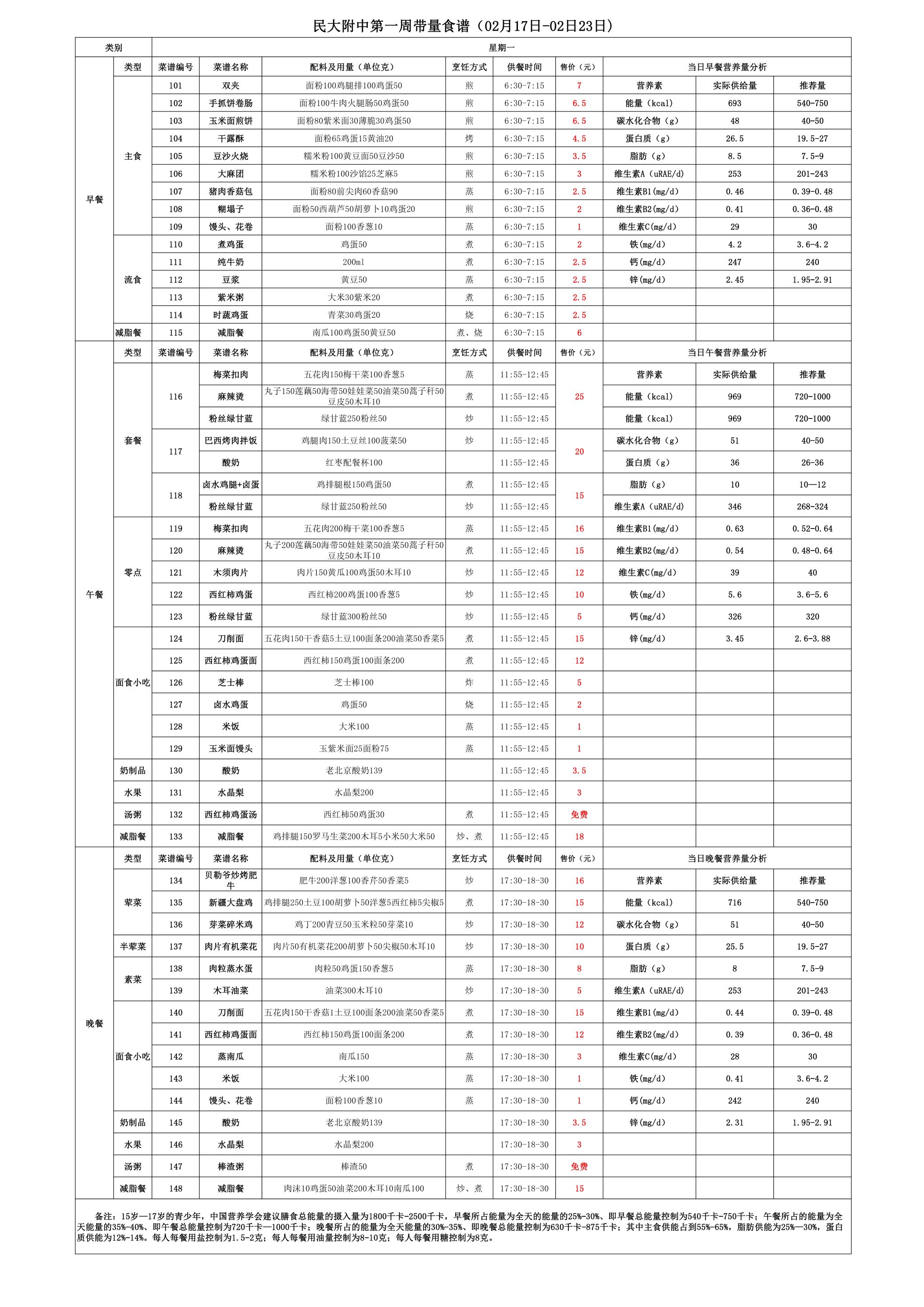 2025年春季学期朝阳校区食堂菜谱(2025.02.17-02.23)