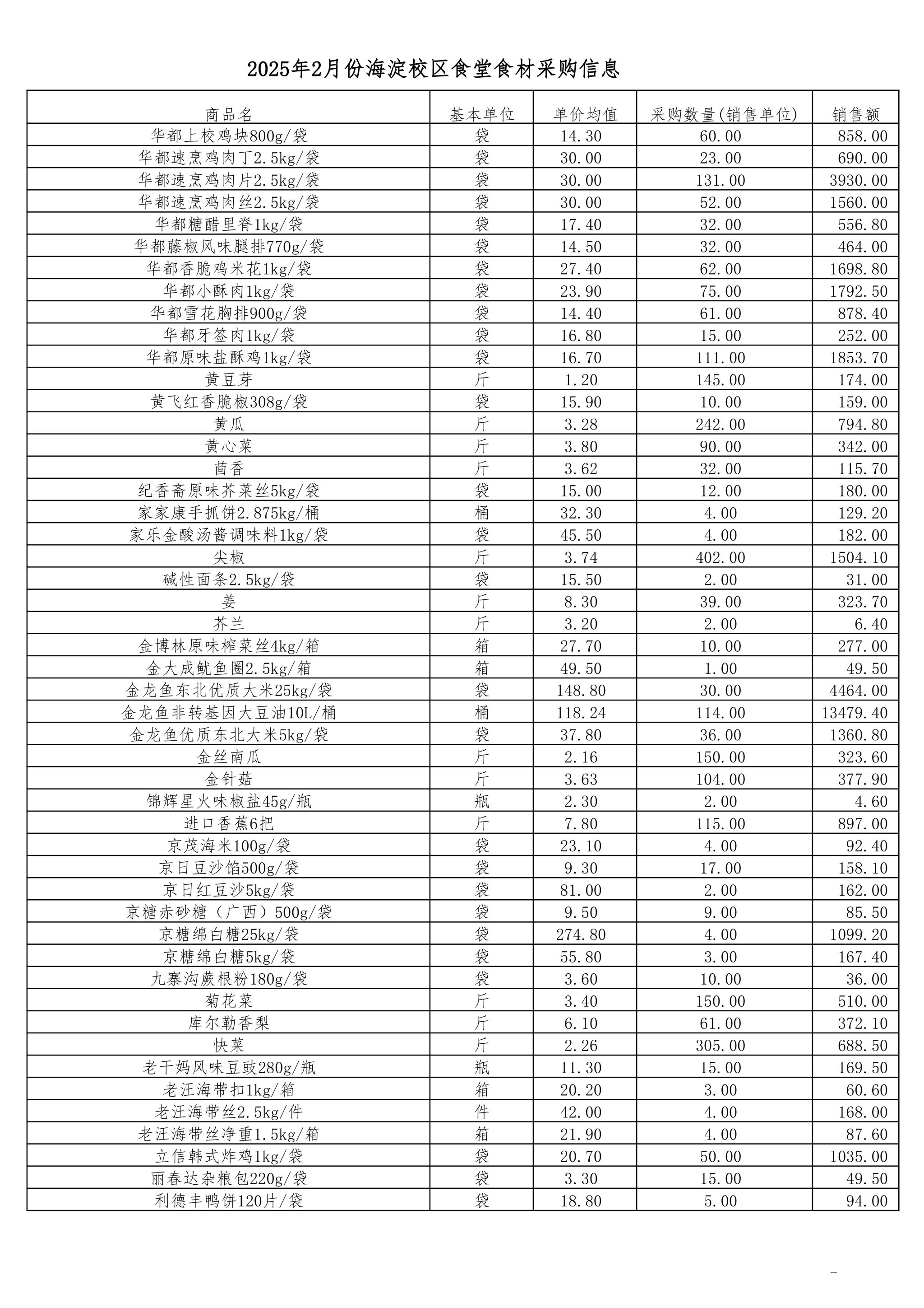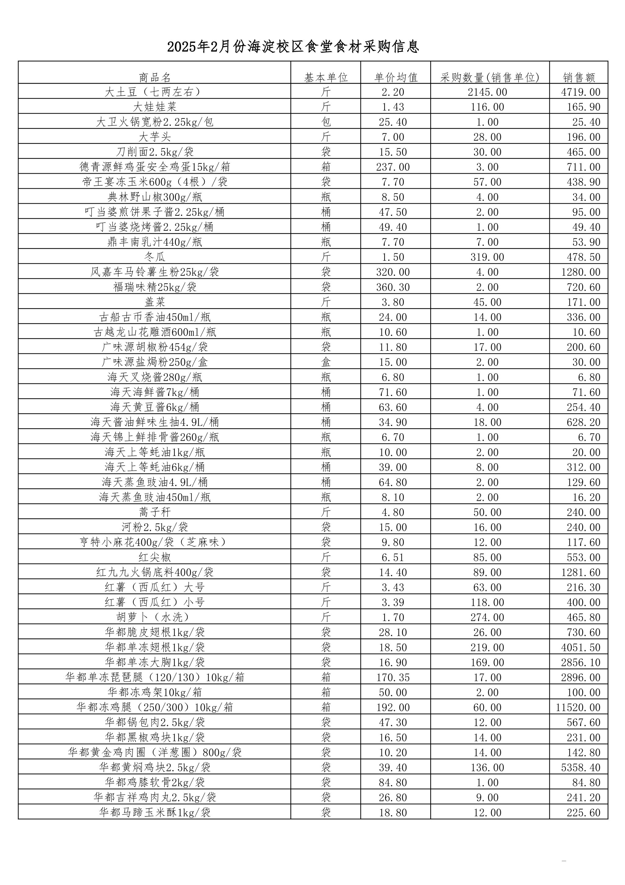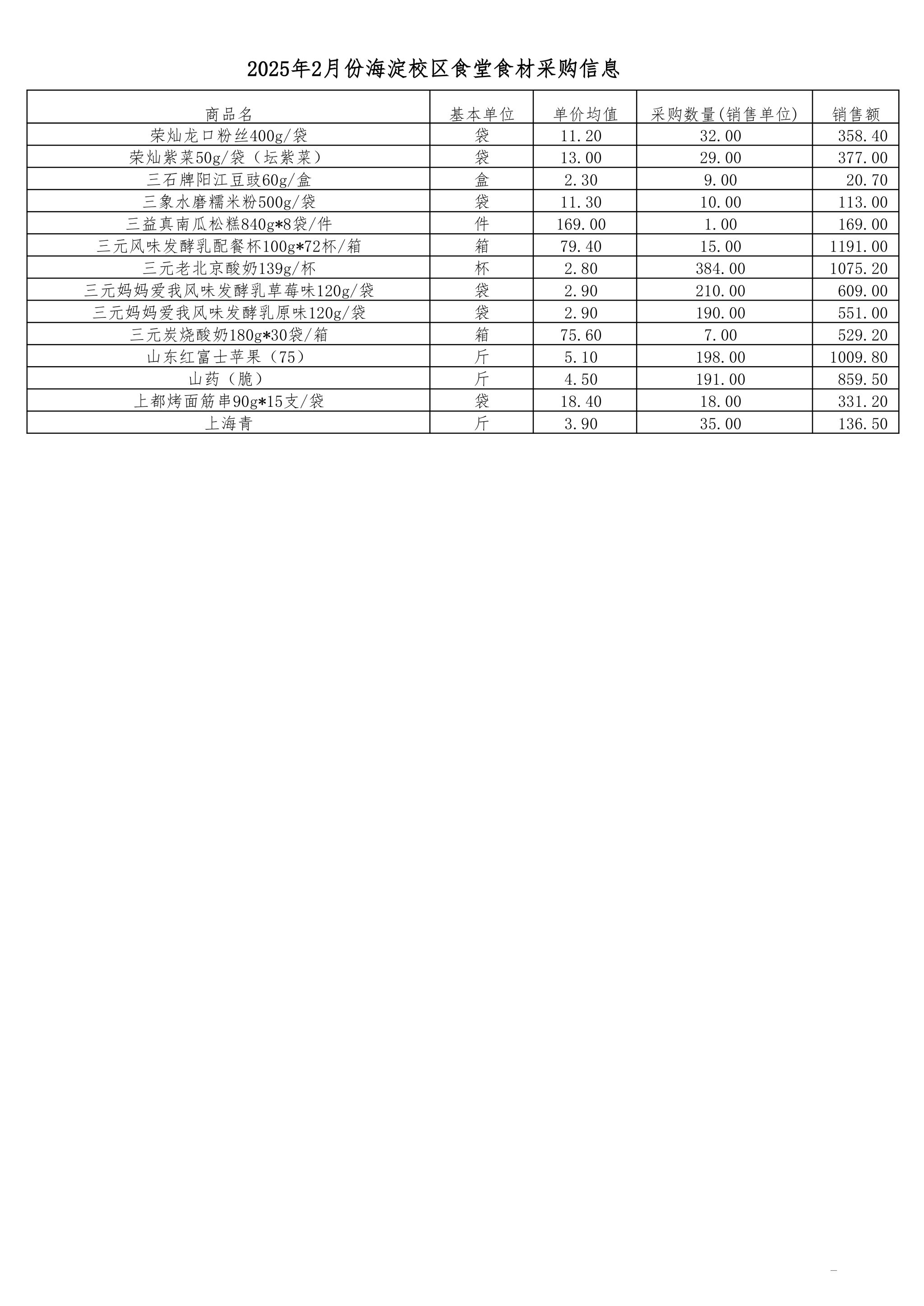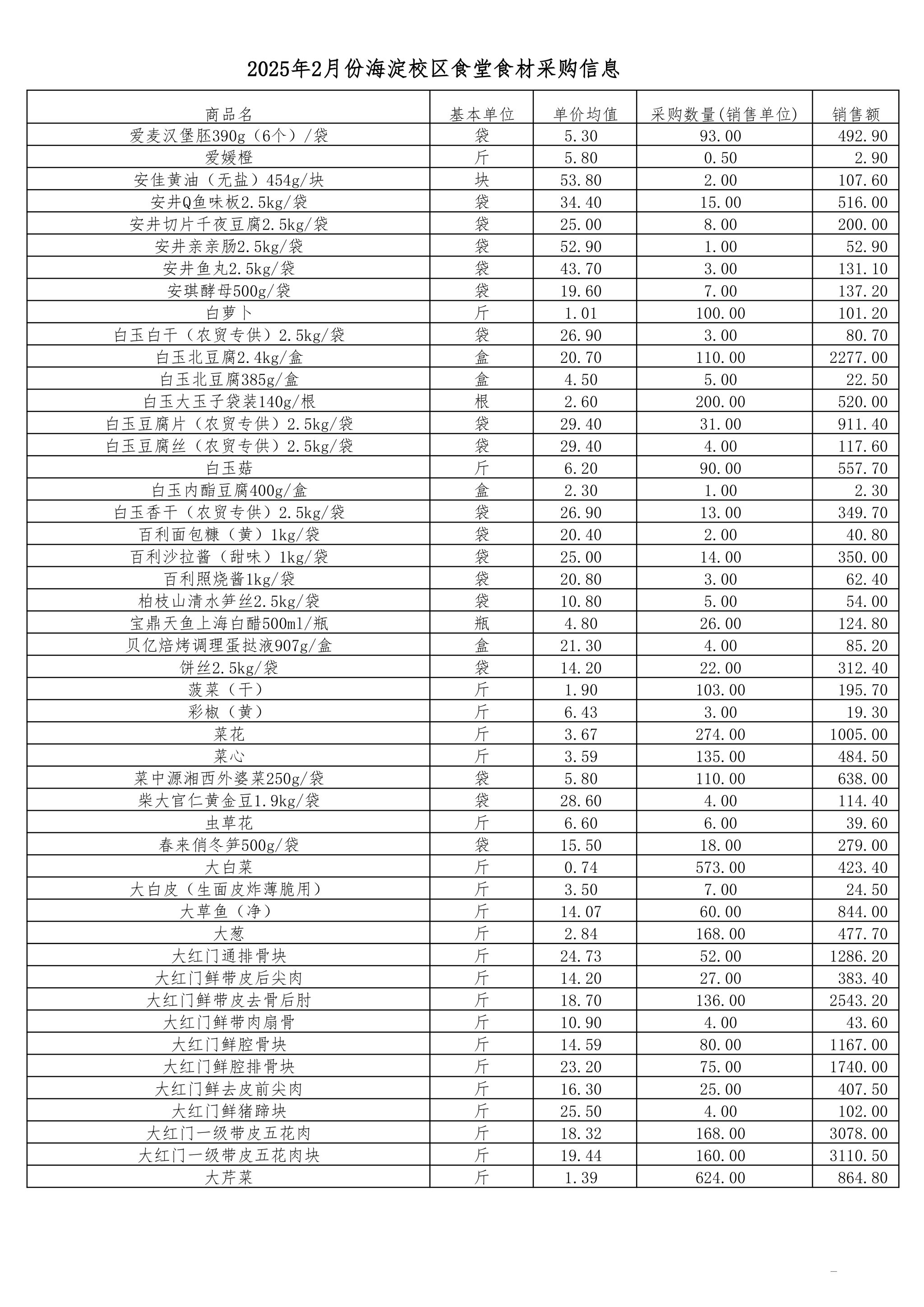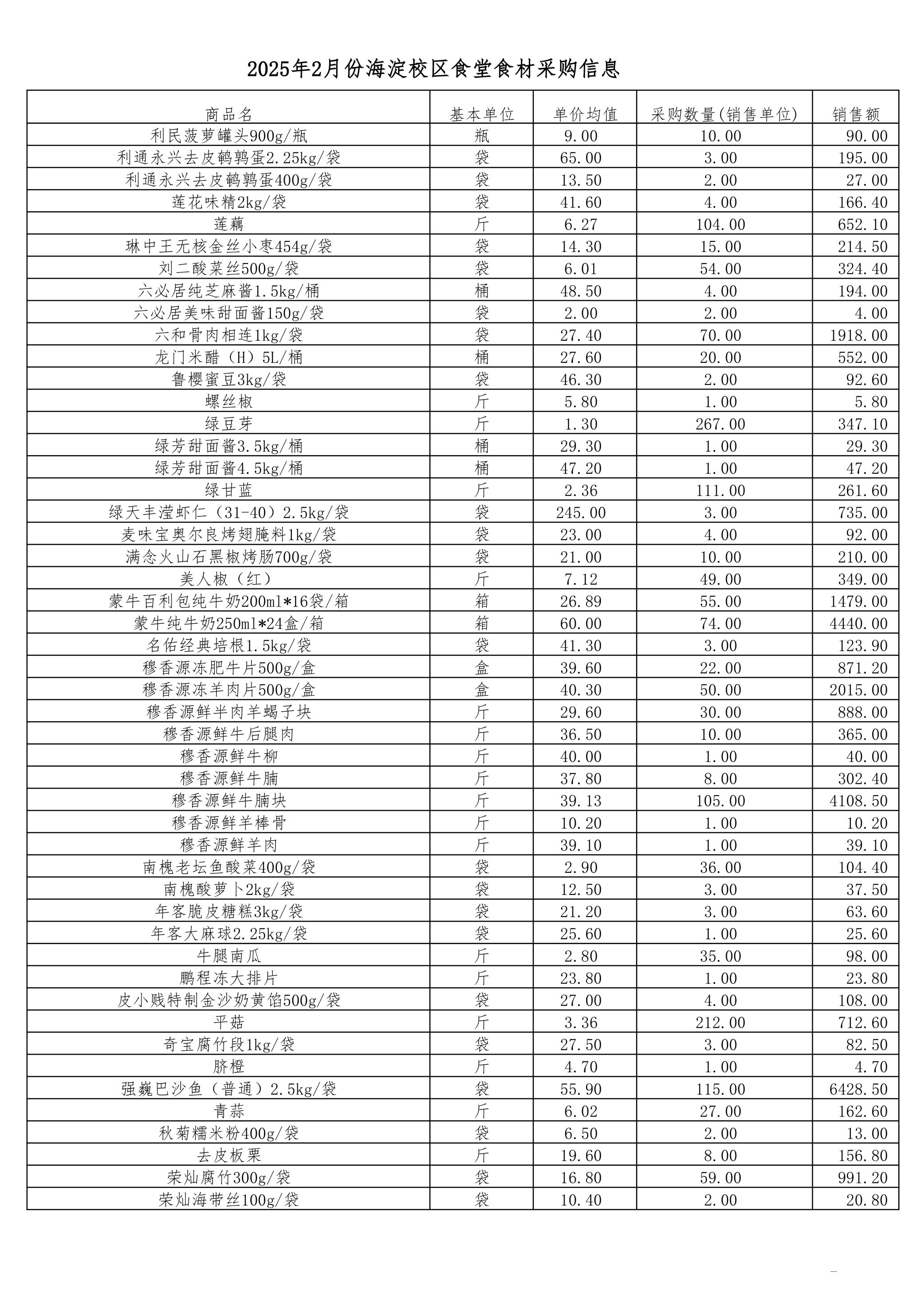 2025年春季学期海淀校区2月大宗食材采购信息公示