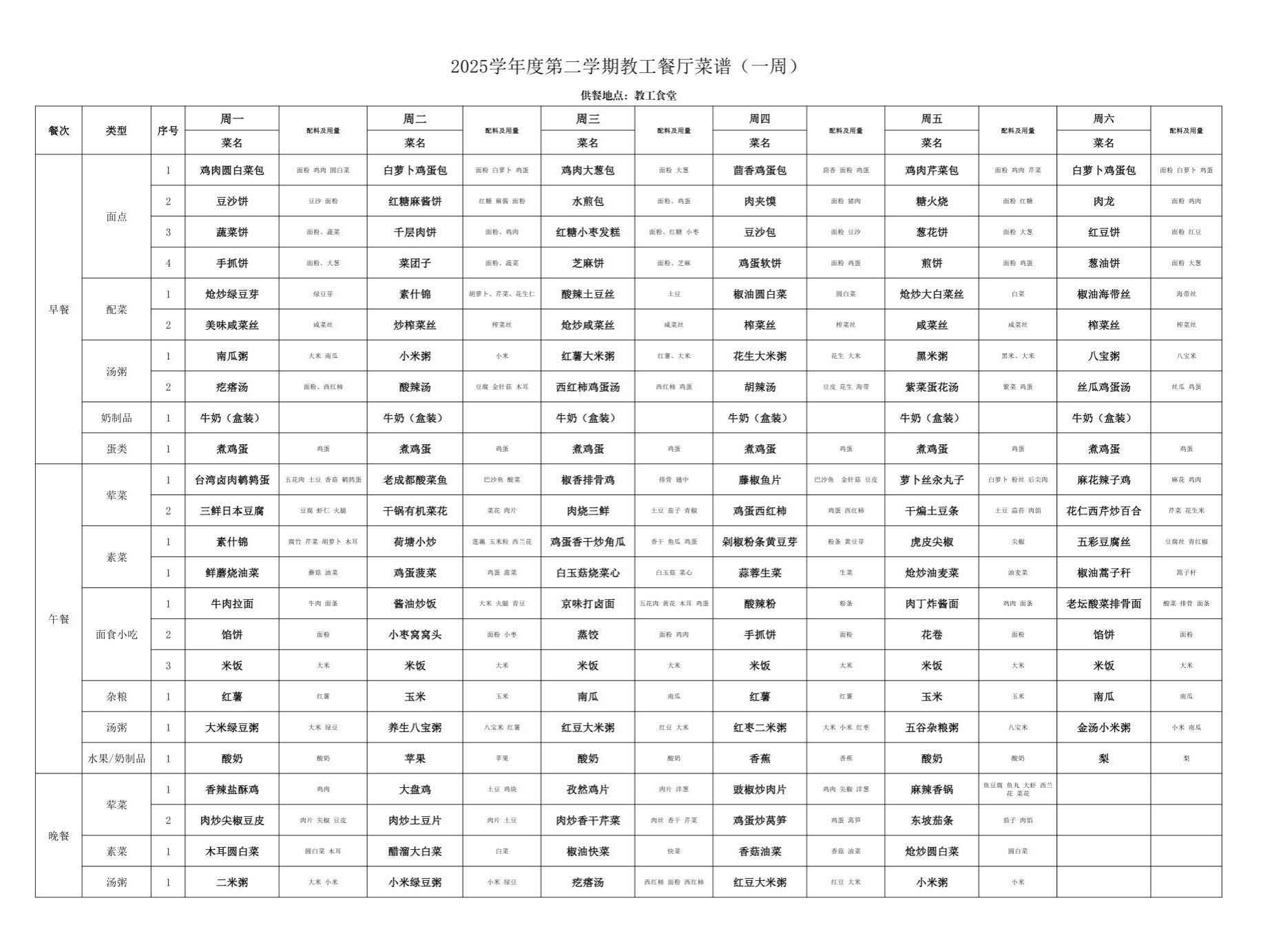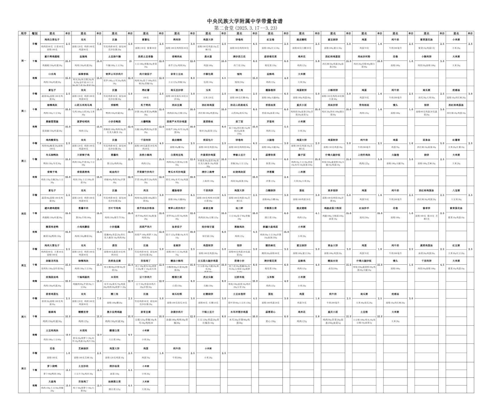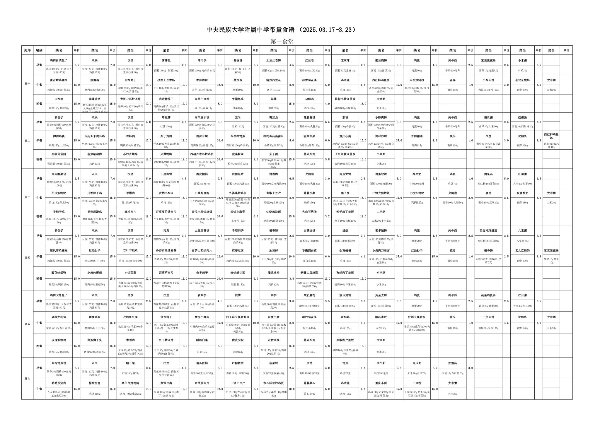 2025年春季学期海淀校区食堂菜谱(2025.03.17-03.23)