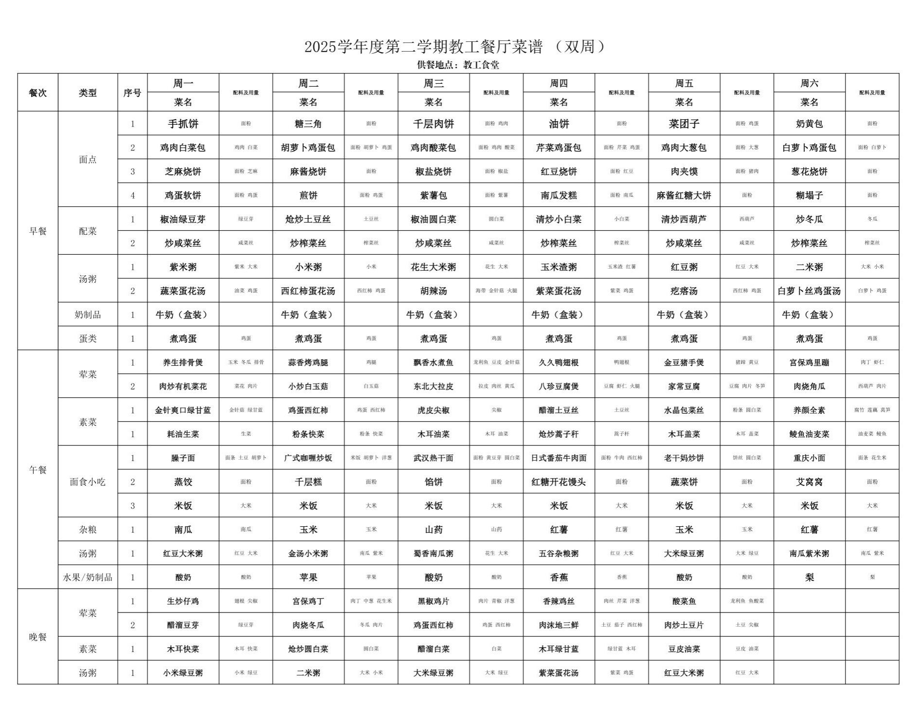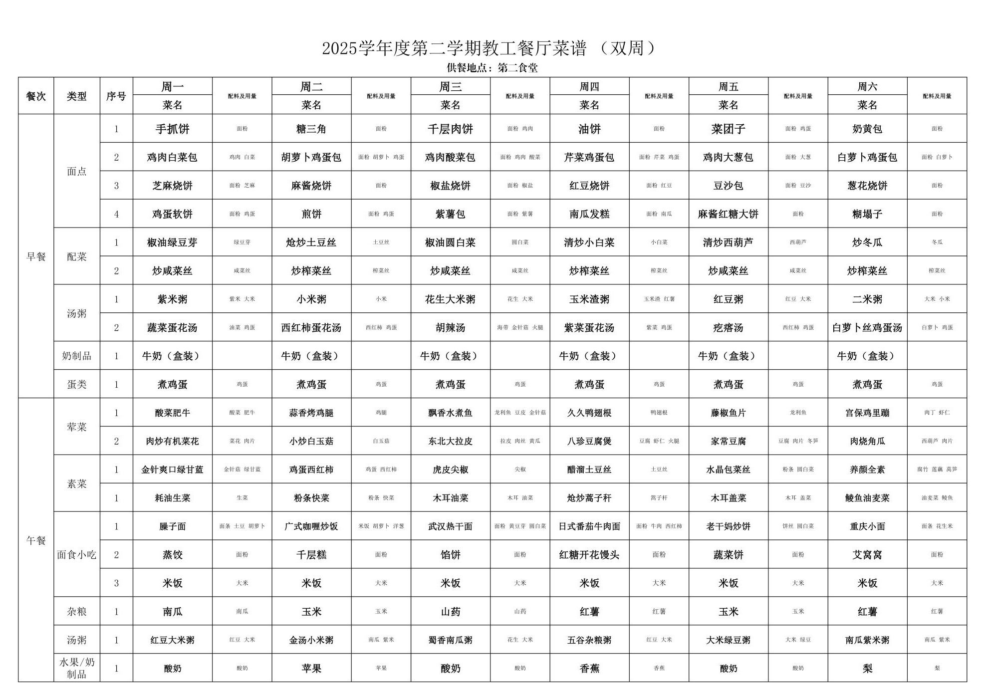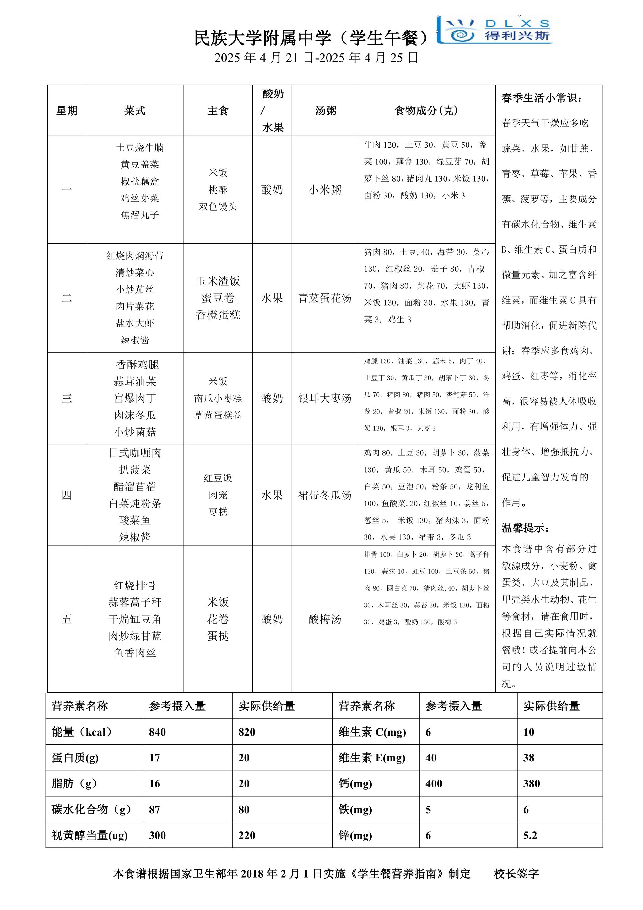 2025年春季学期海淀校区食堂菜谱(2025.04.21-04.27)