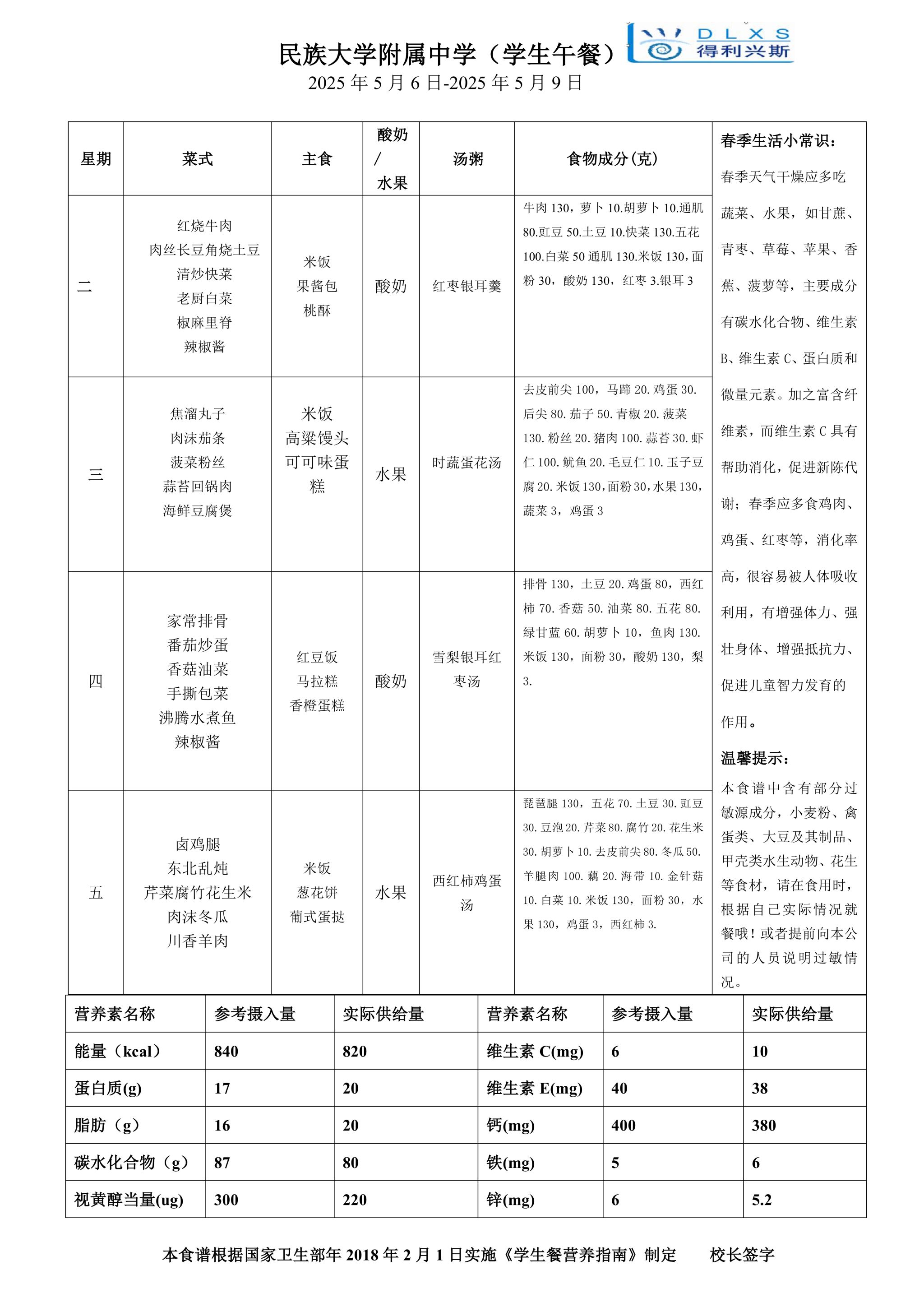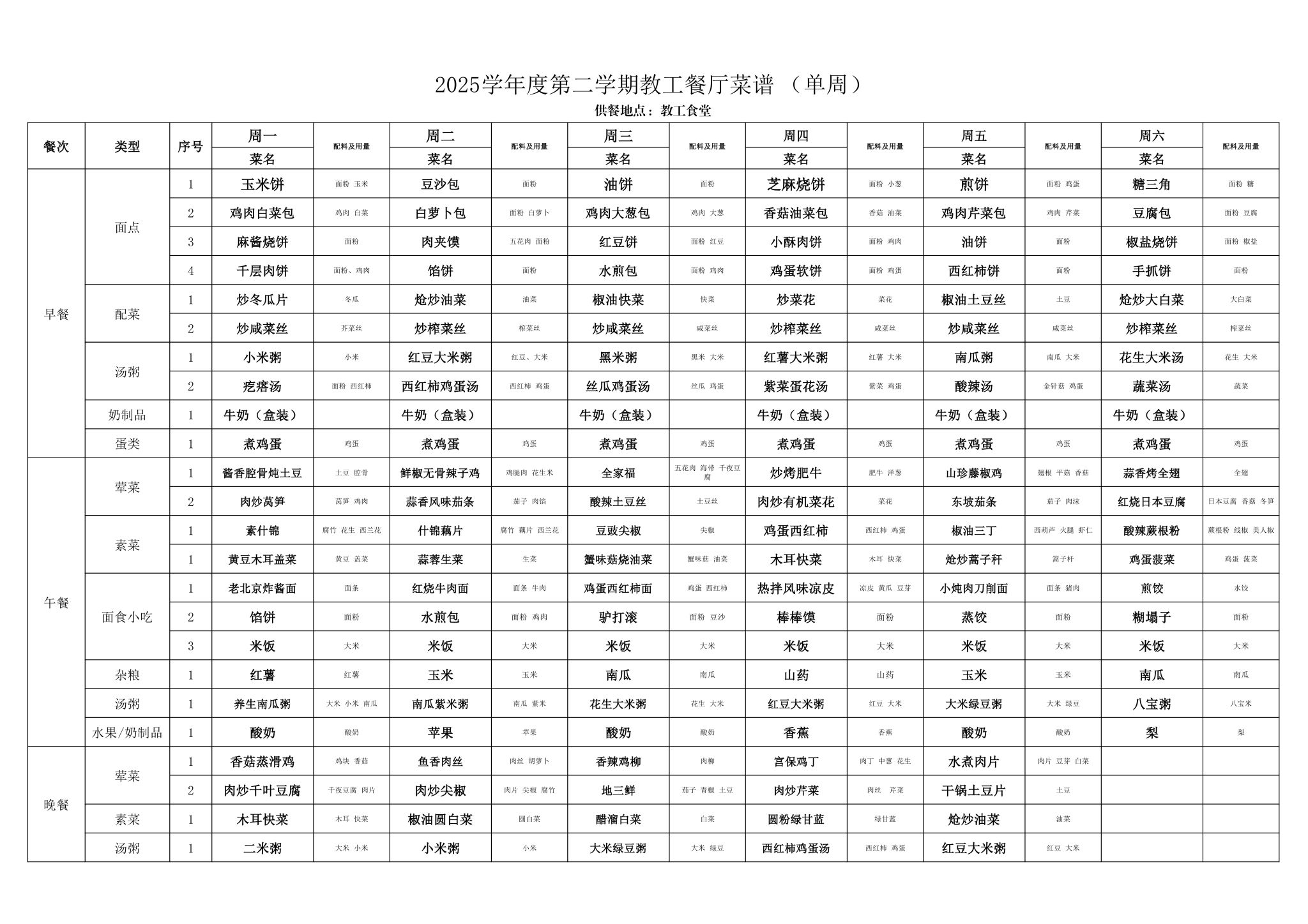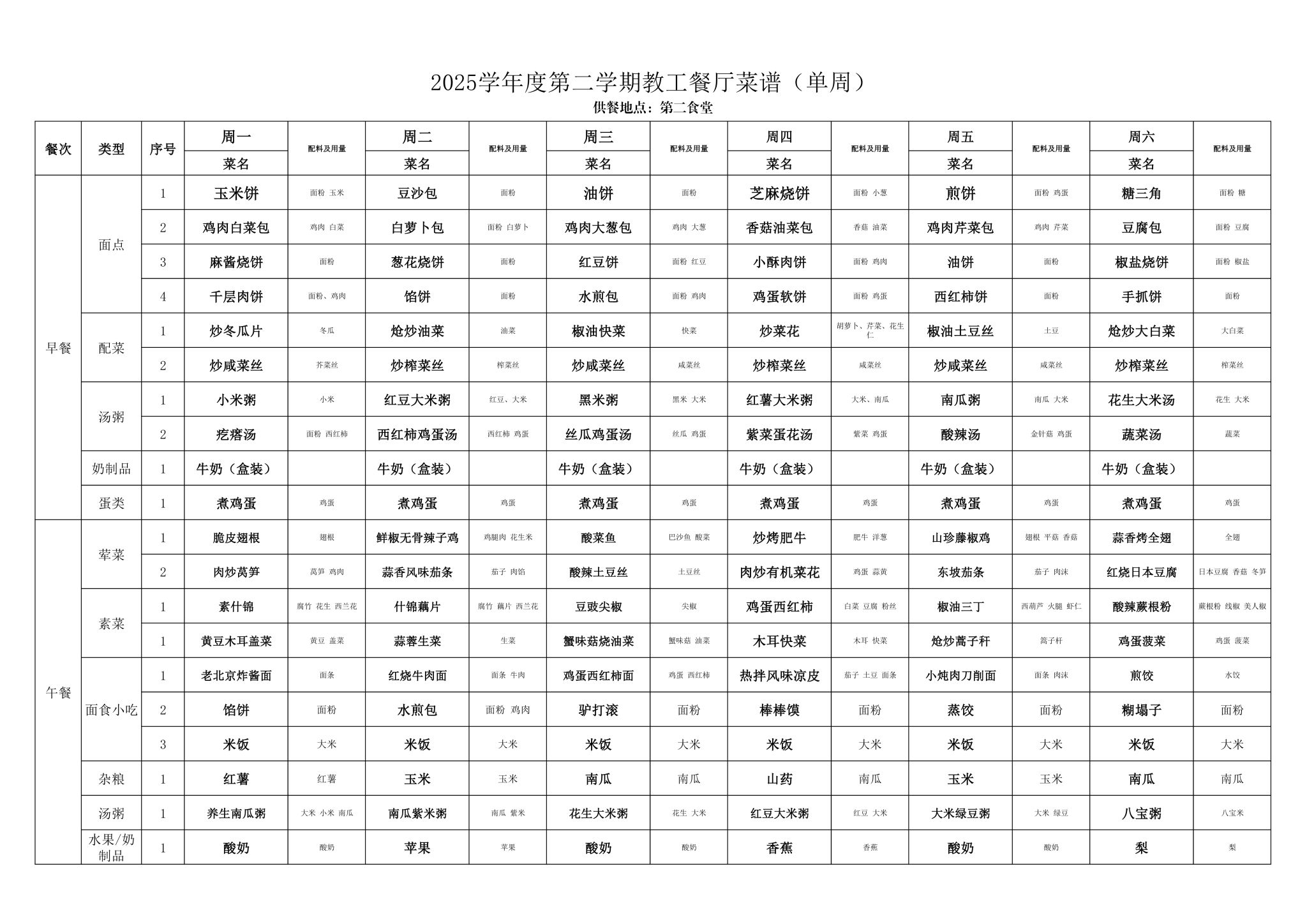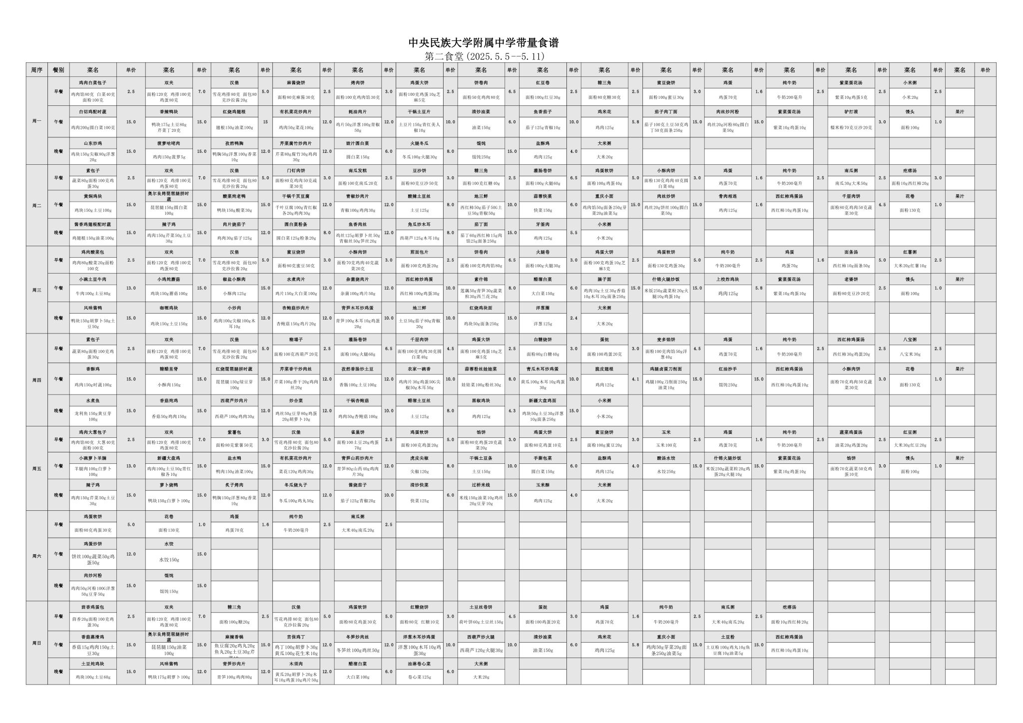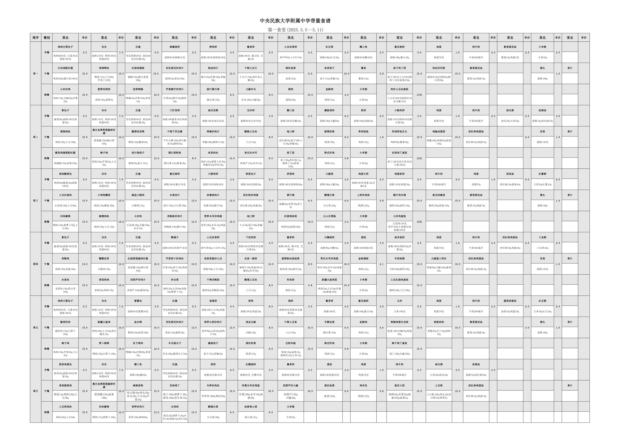 2025年春季学期海淀校区食堂菜谱(2025.5.05-5.11)