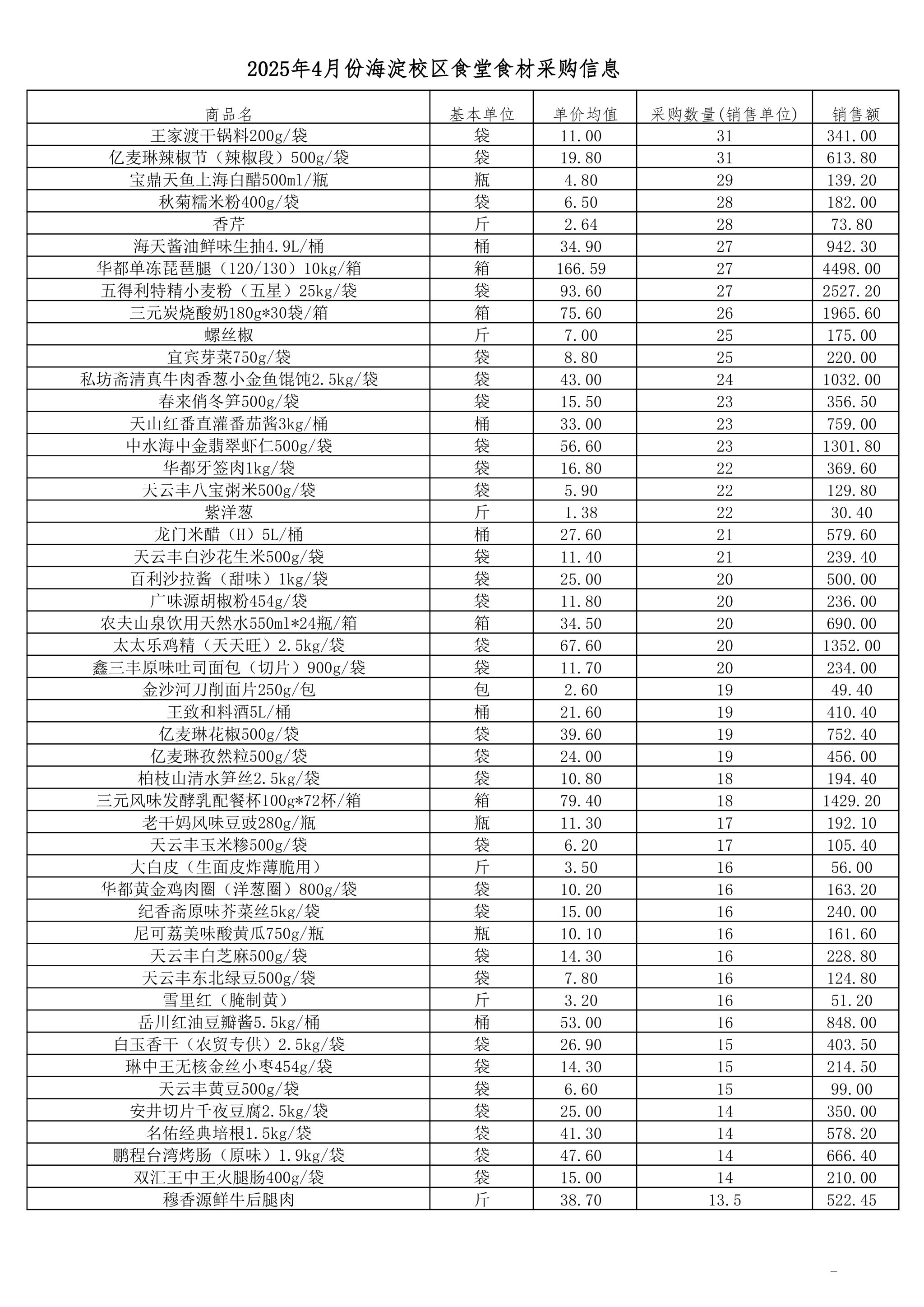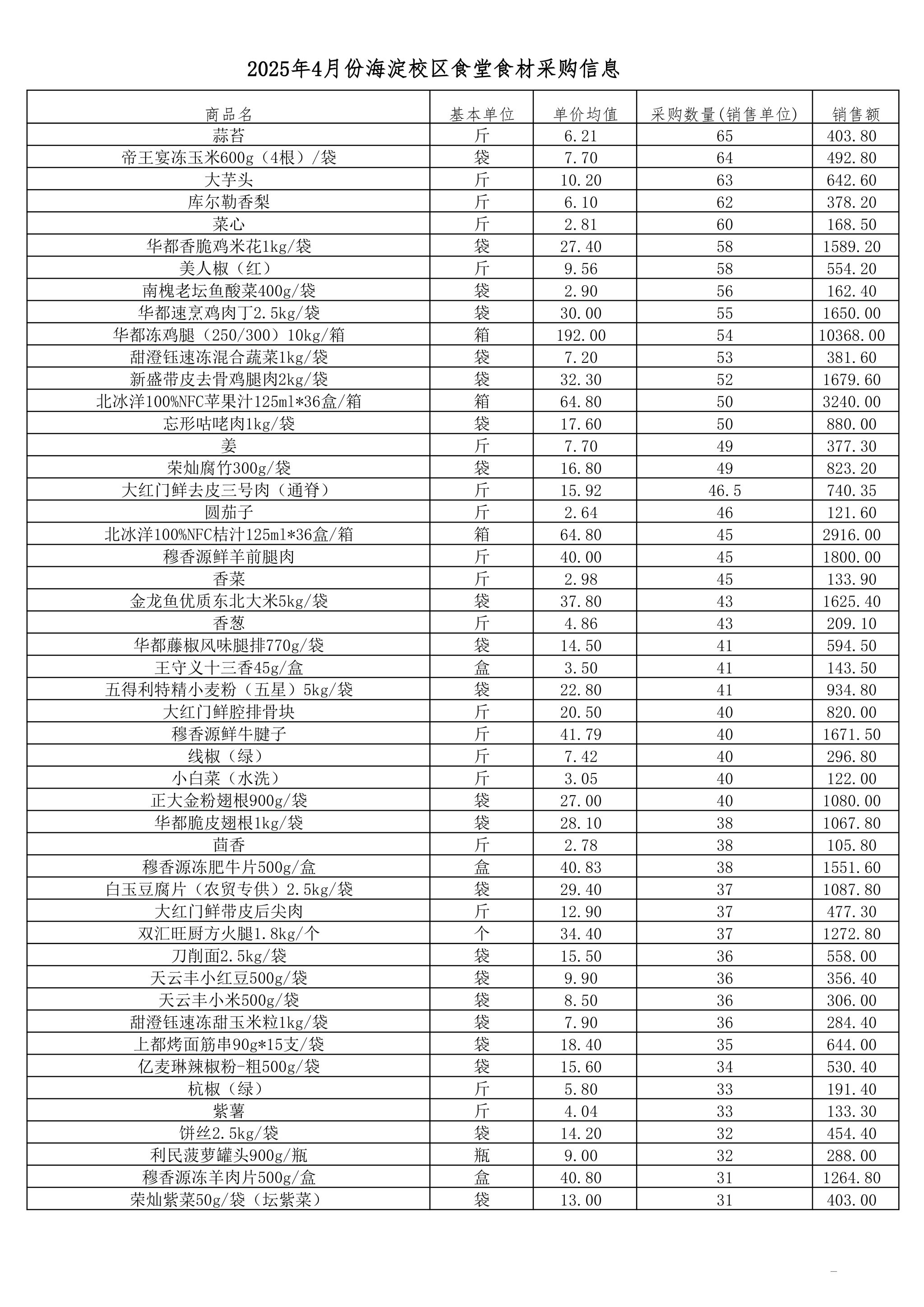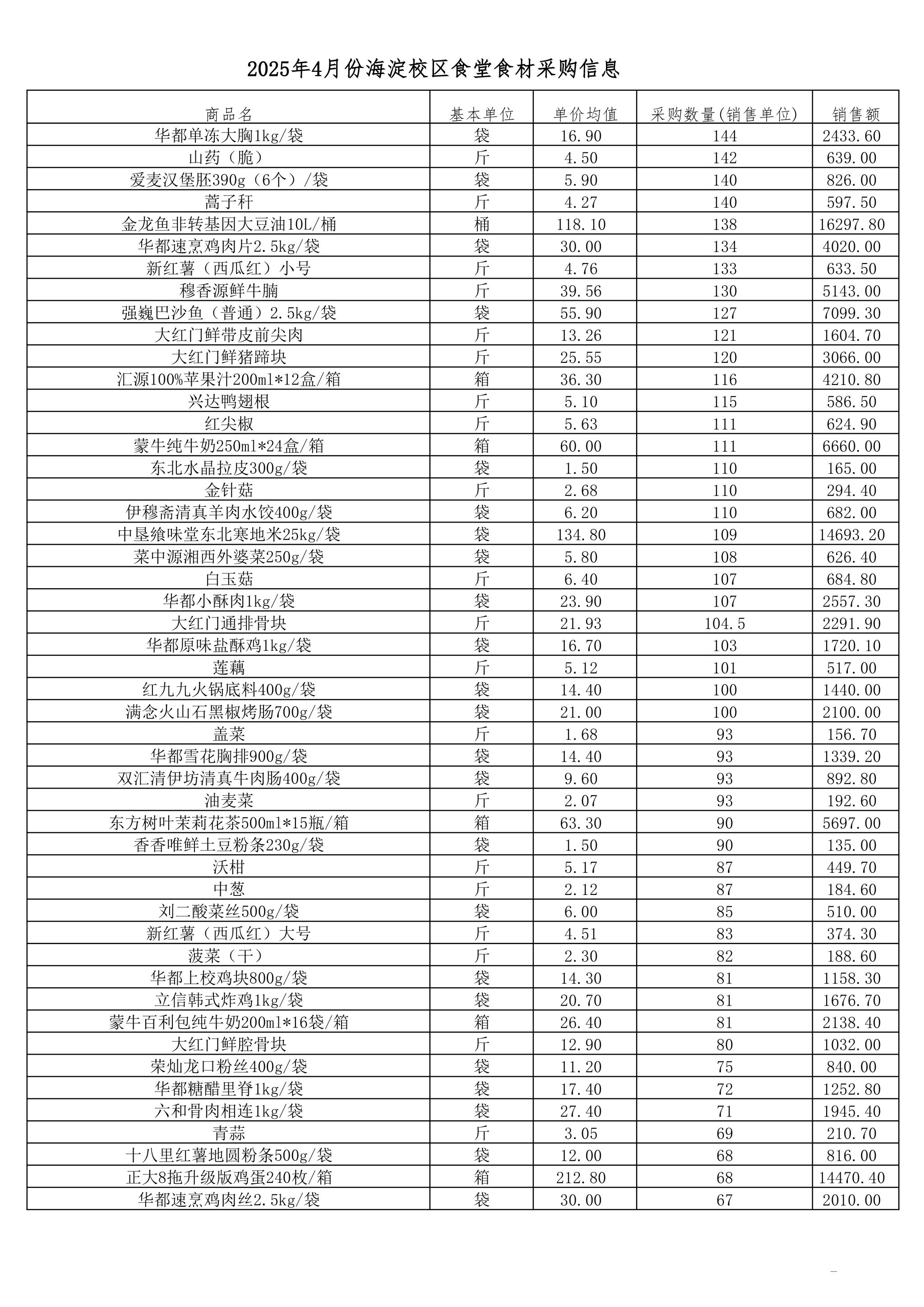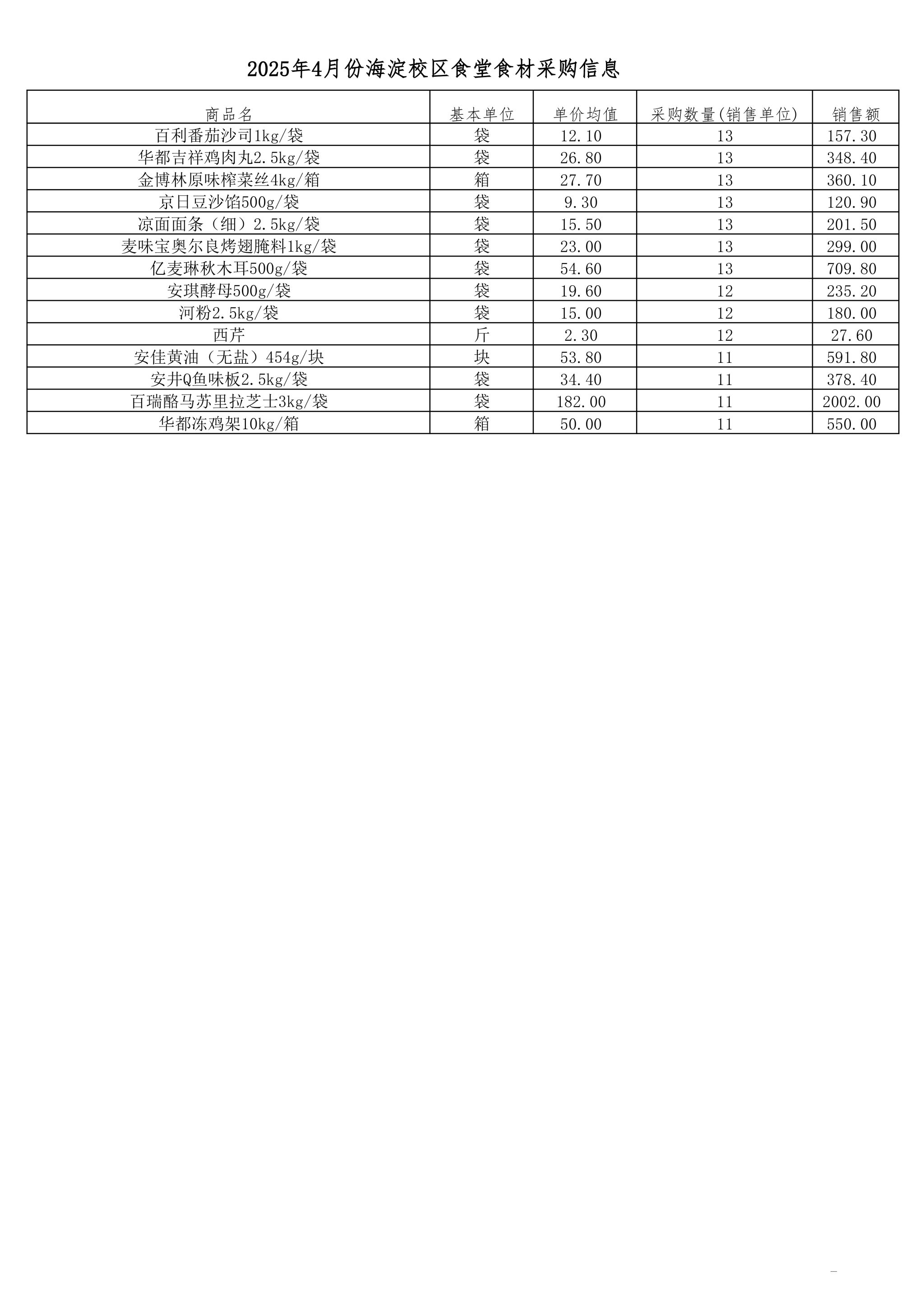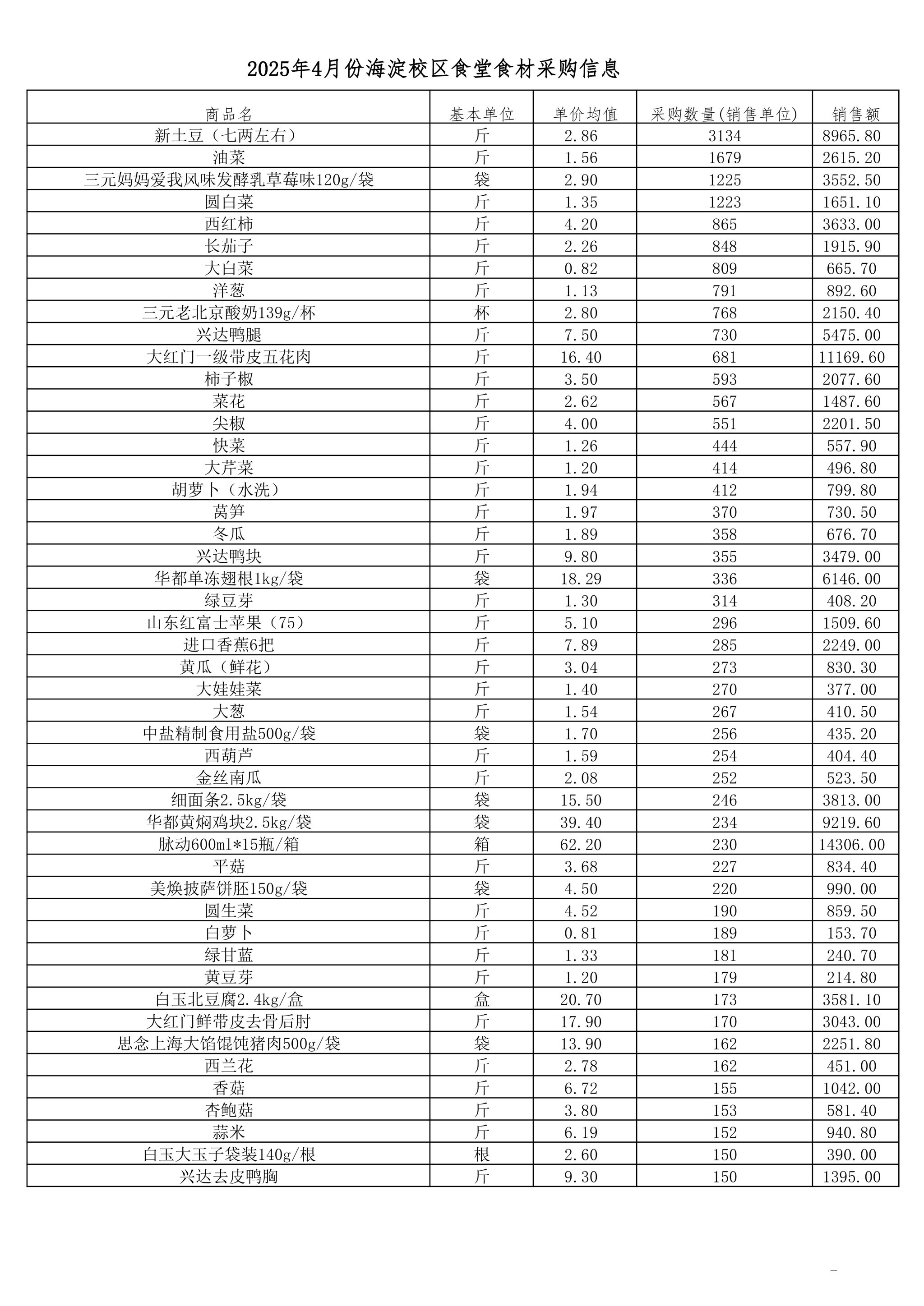 2025年春季学期海淀校区4月大宗食材采购信息公示