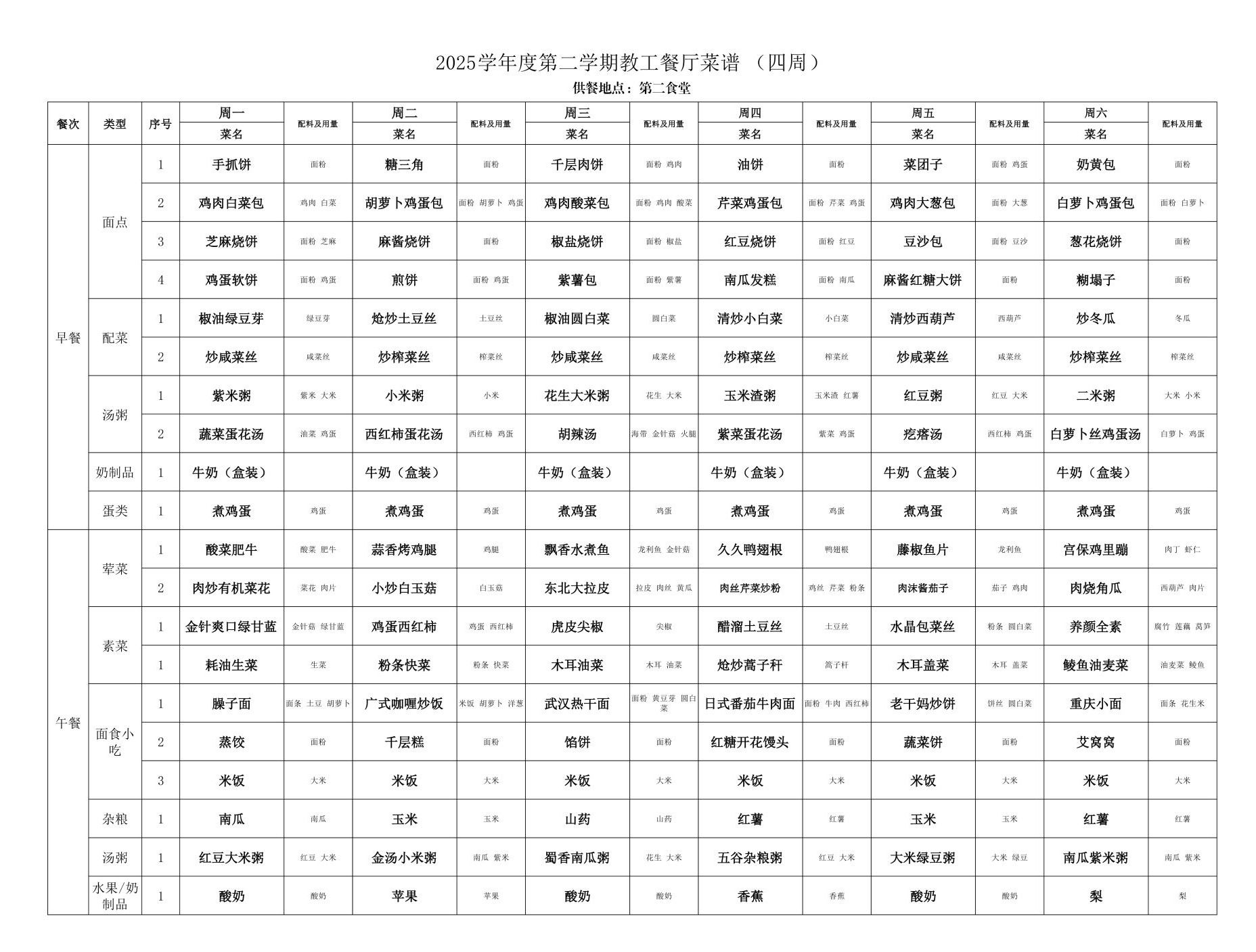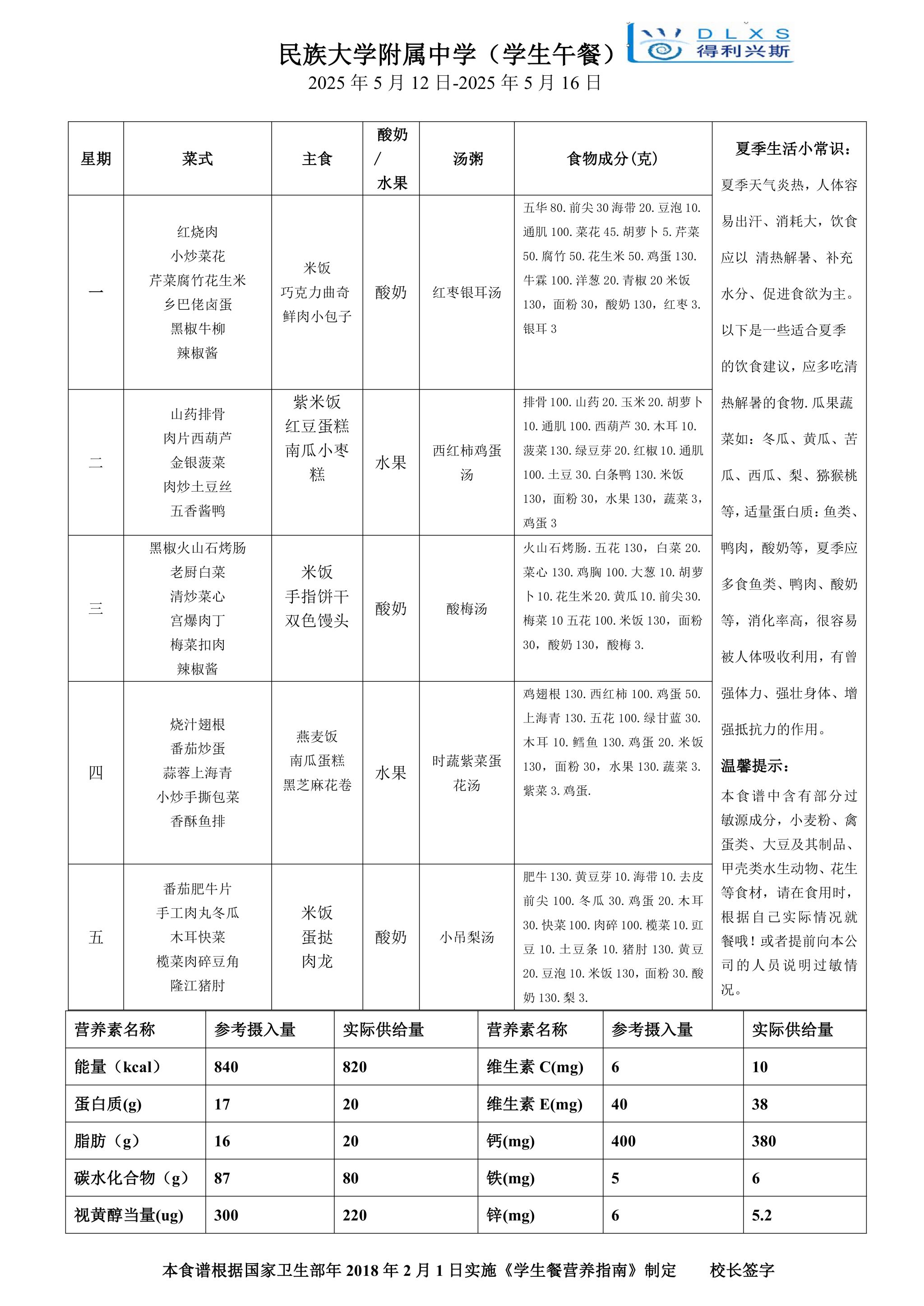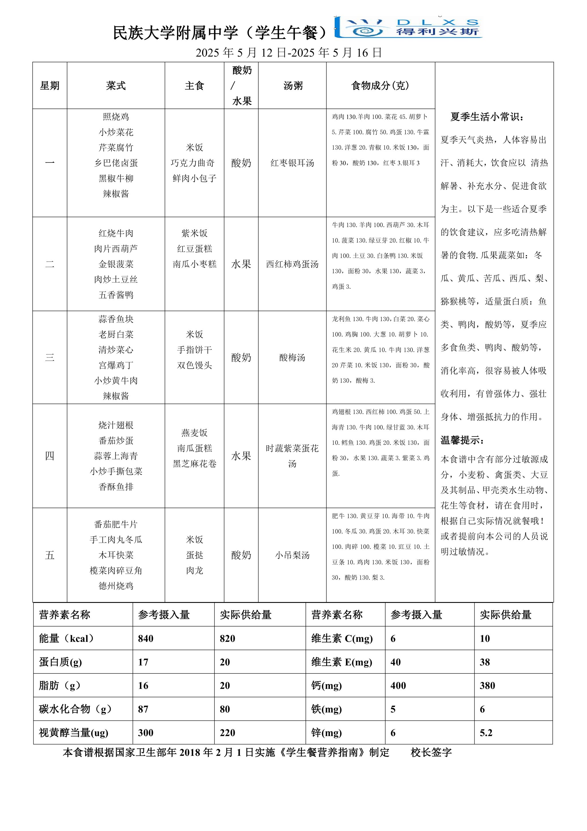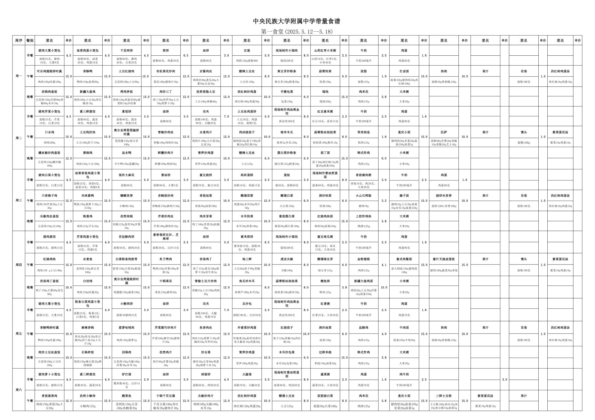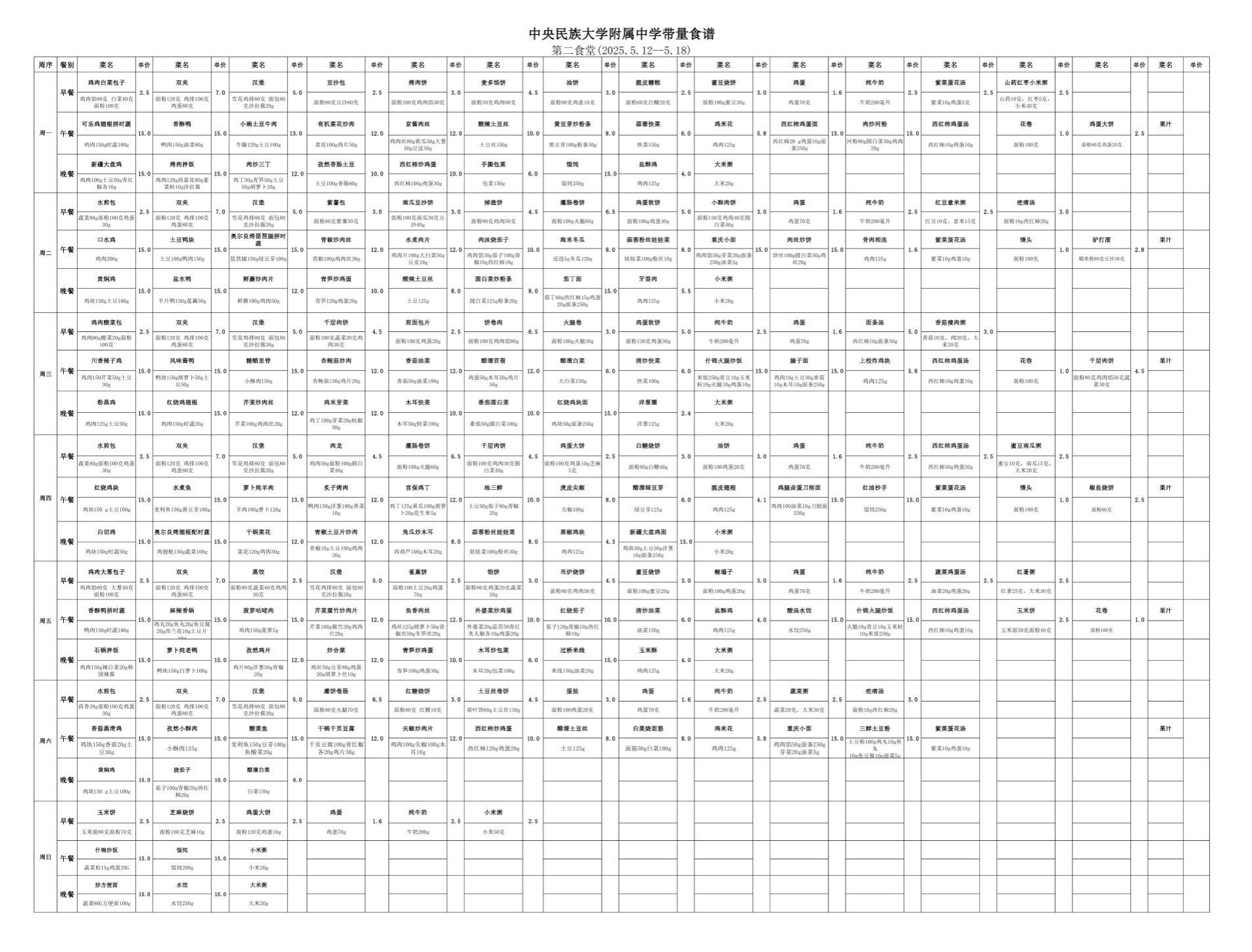 2025年春季学期海淀校区食堂菜谱(2025.05.12-05.18)