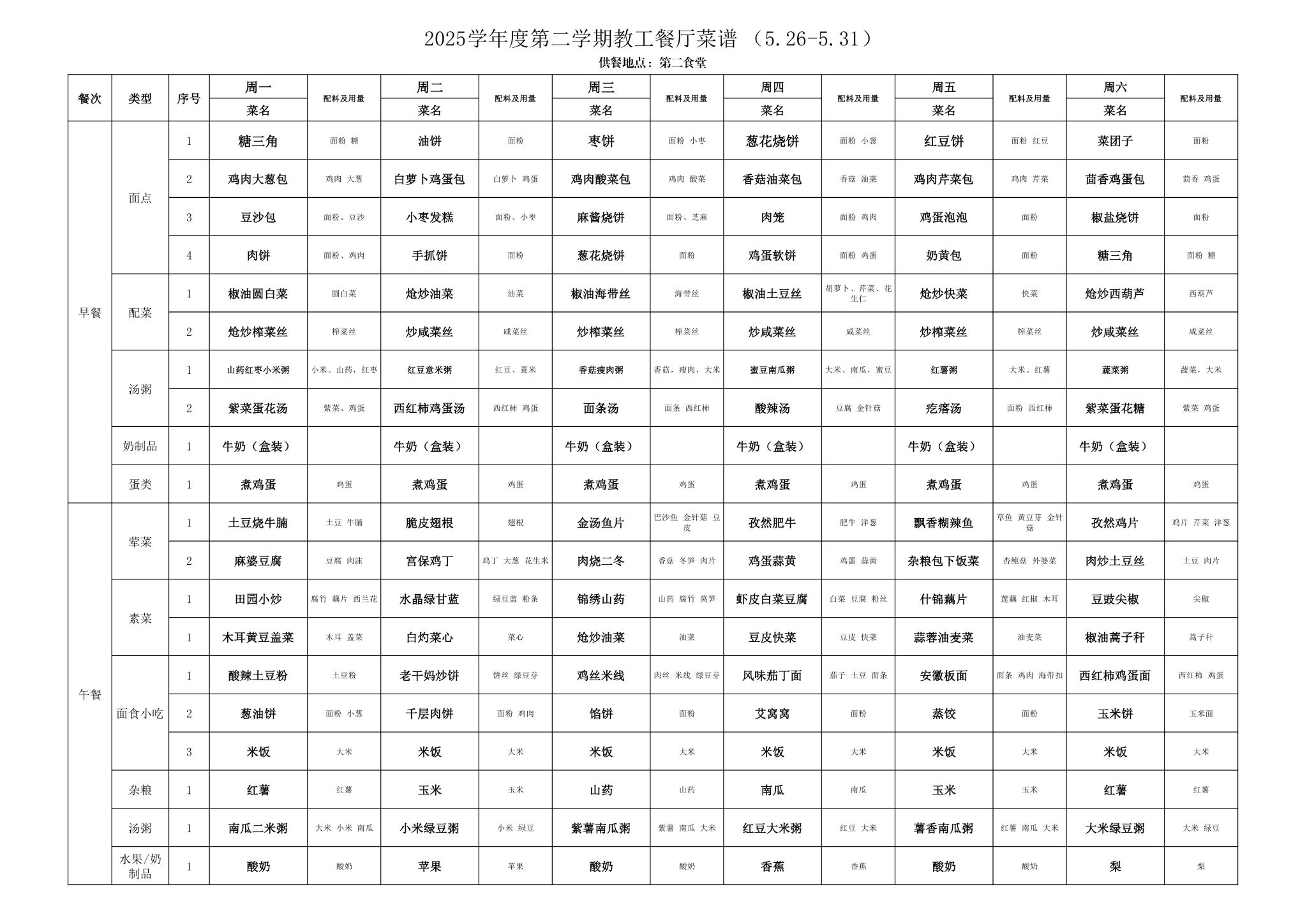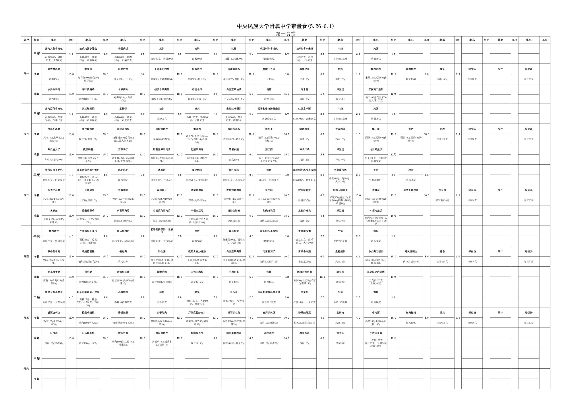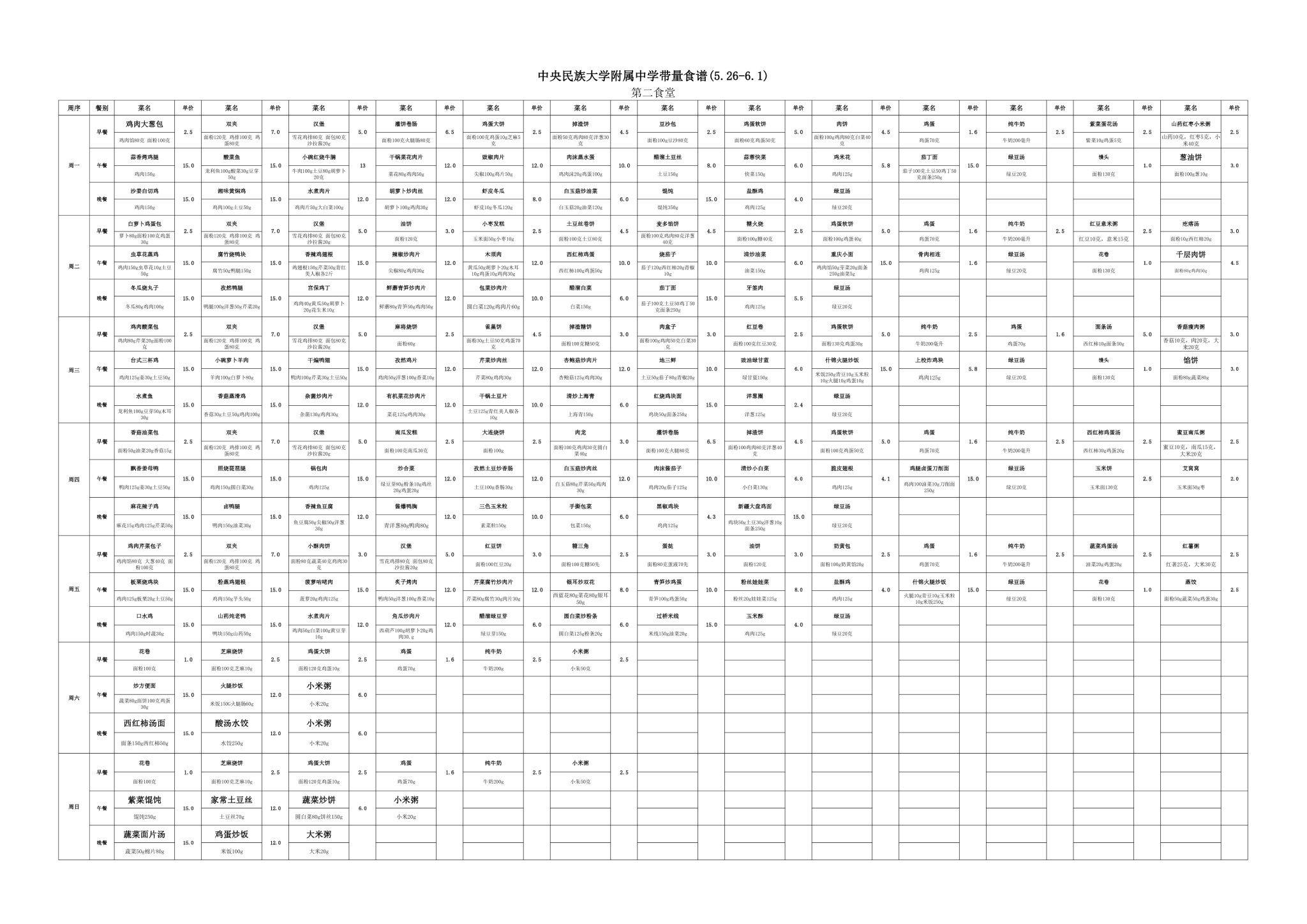 2025年春季学期海淀校区食堂菜谱(2025.05.26-06.01)