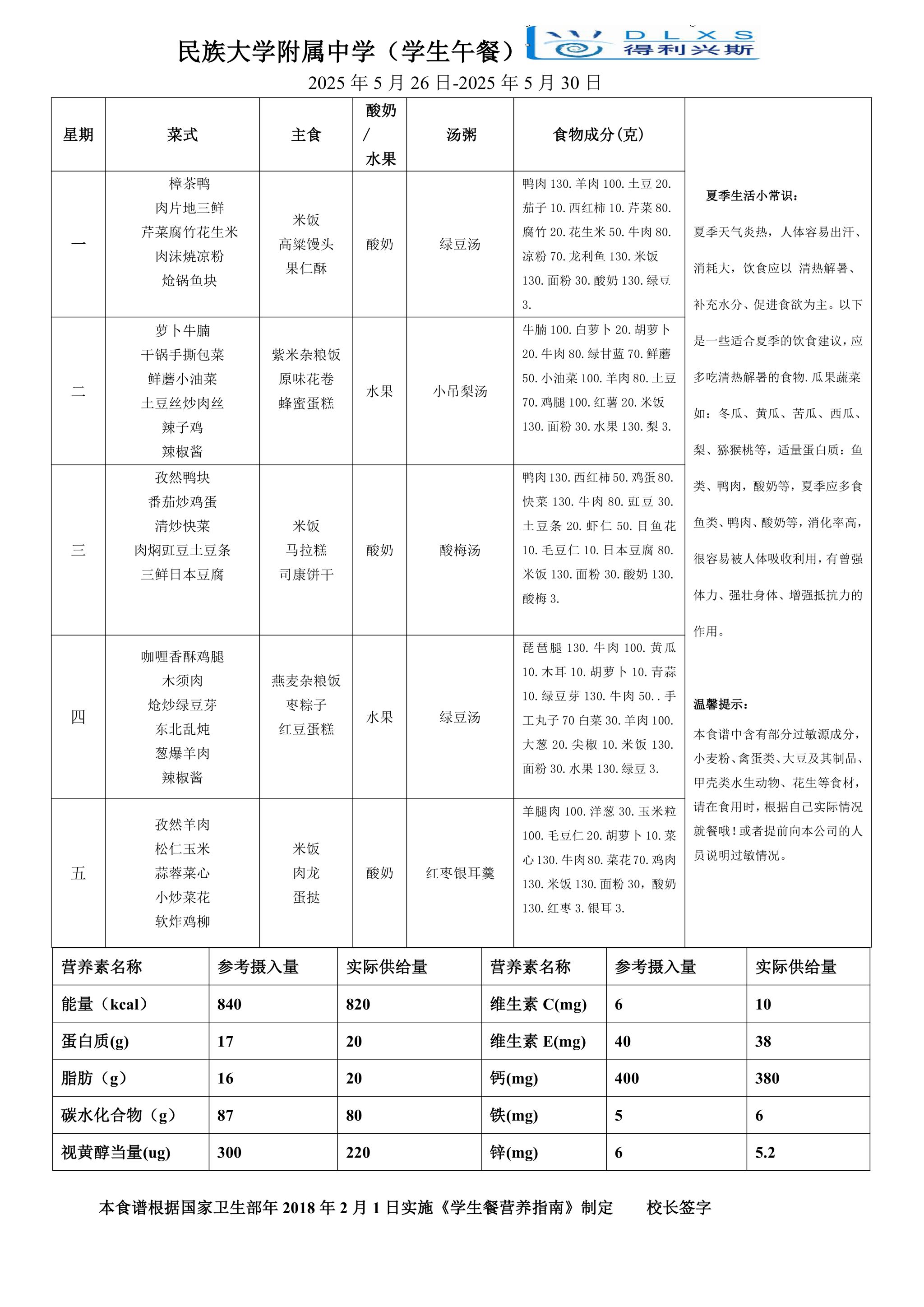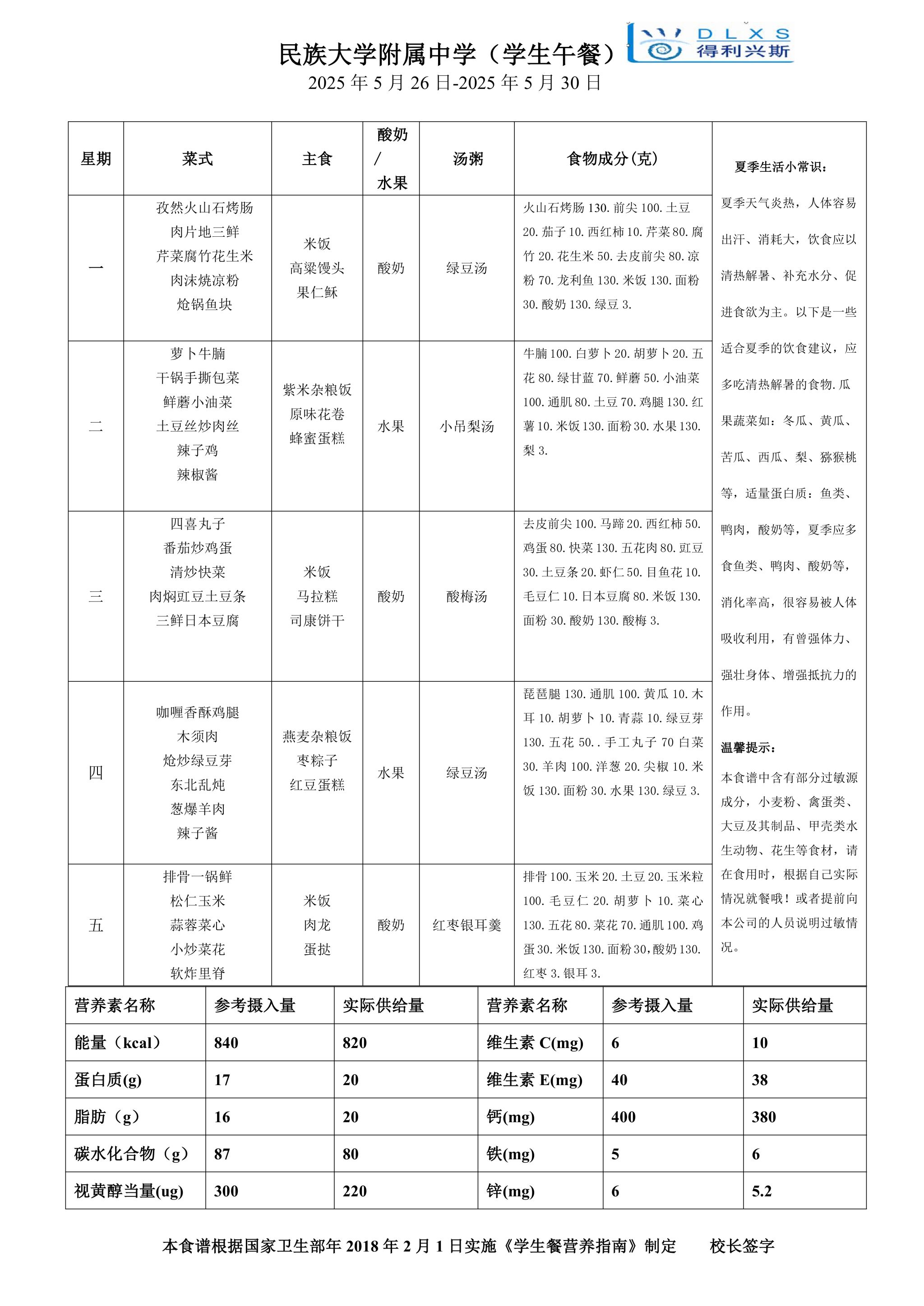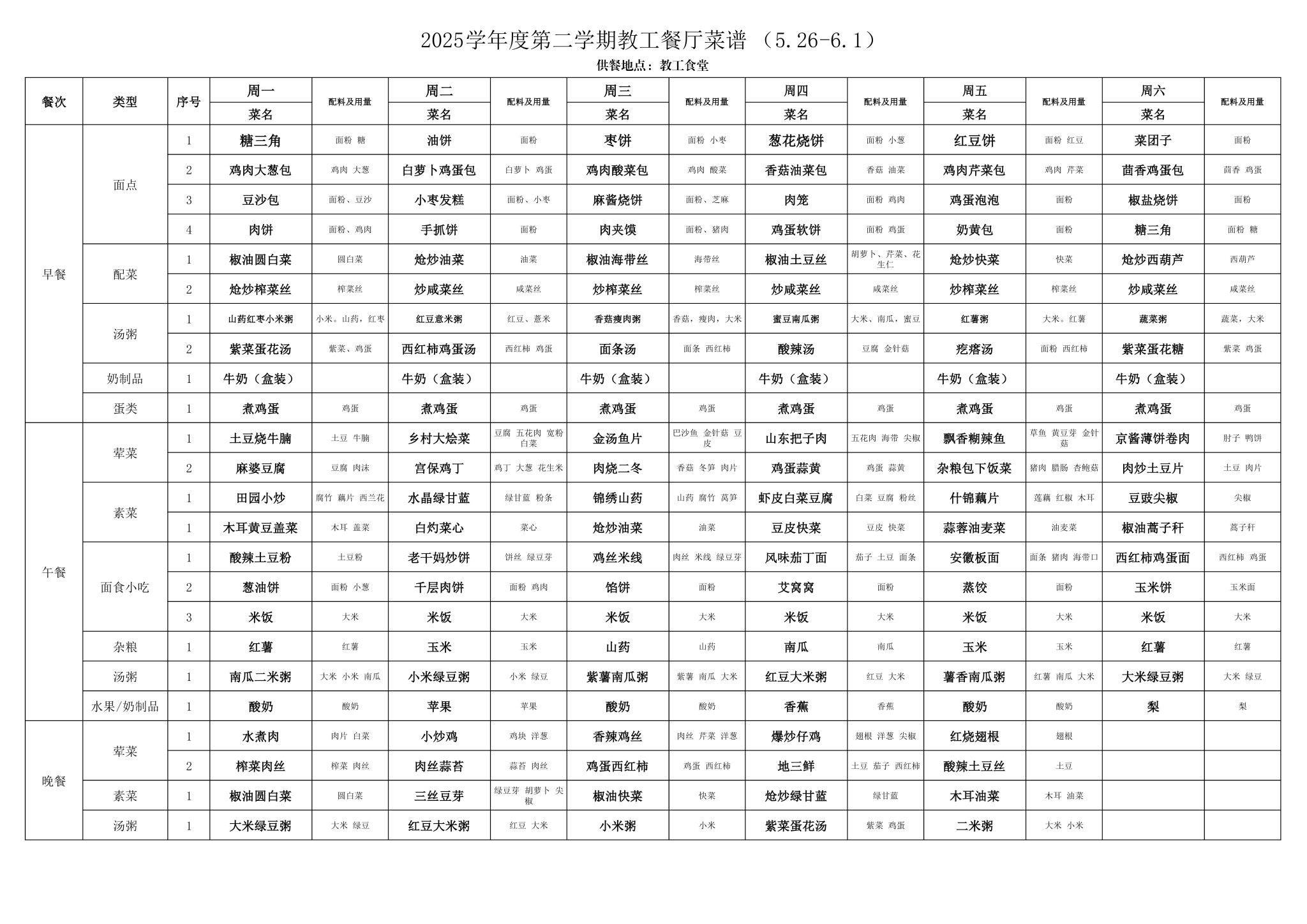 2025年春季学期海淀校区食堂菜谱(2025.05.26-06.01)
