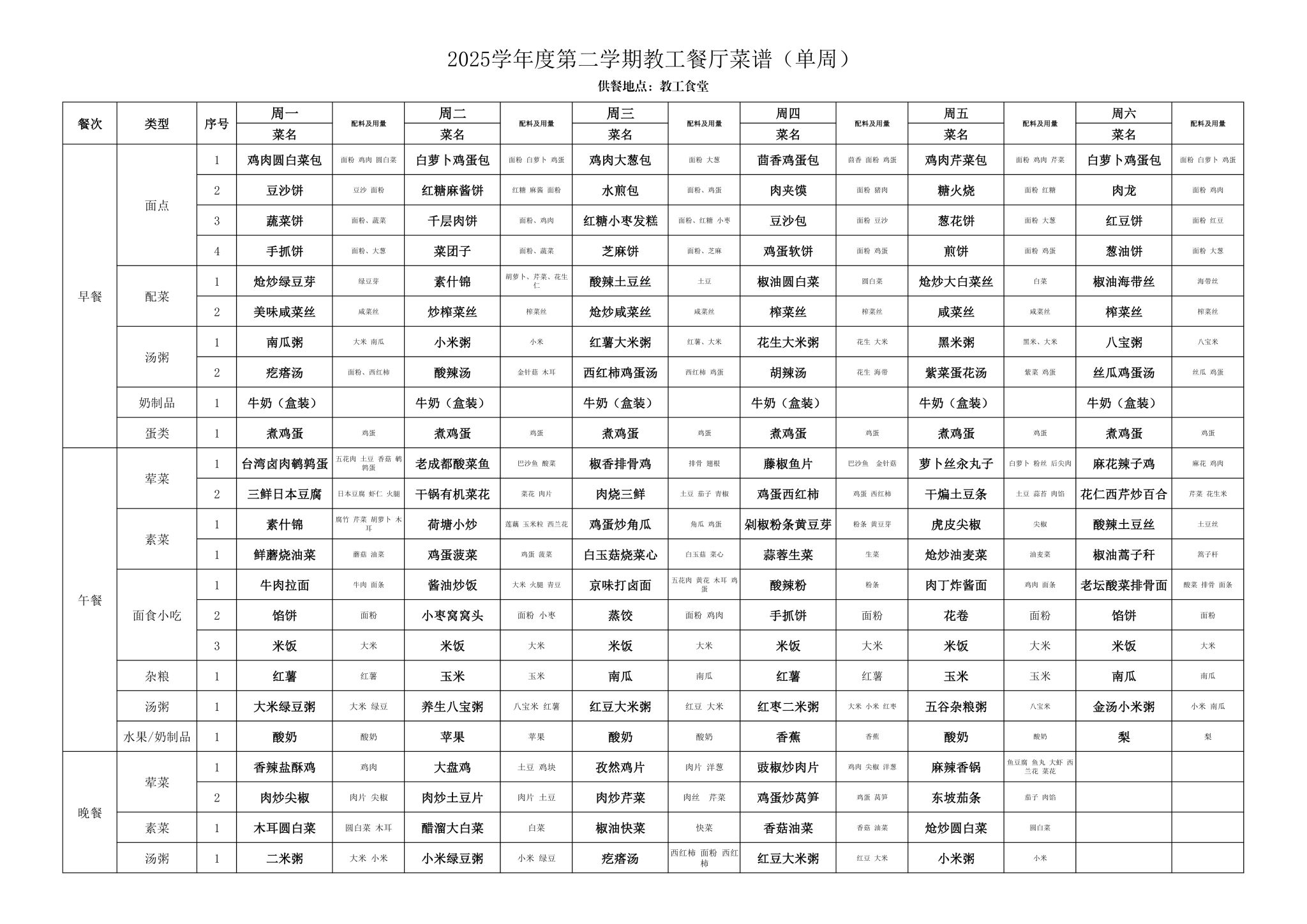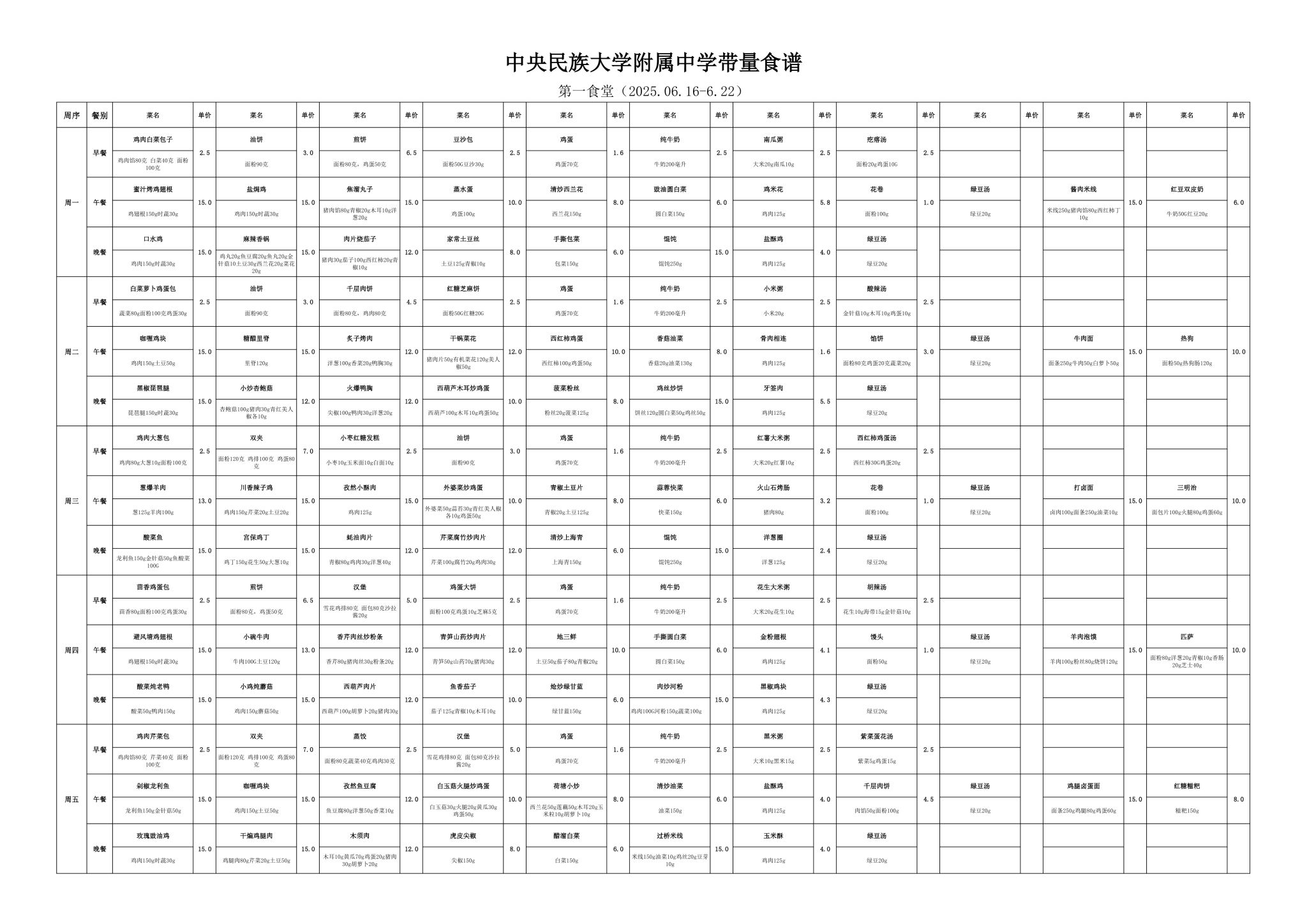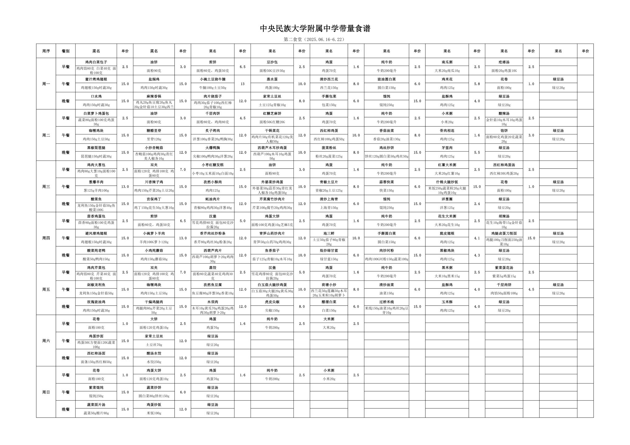 2025年春季学期海淀校区食堂菜谱(2025.6.16-6.22)