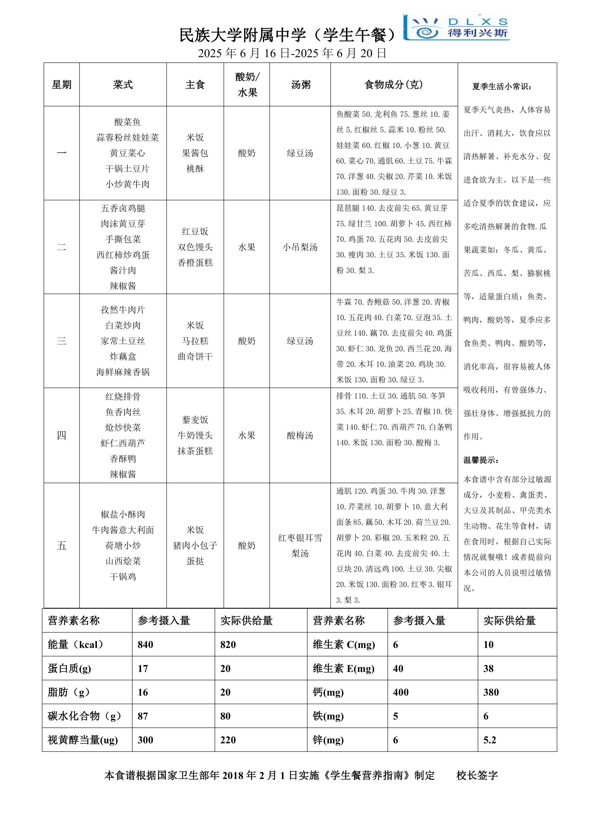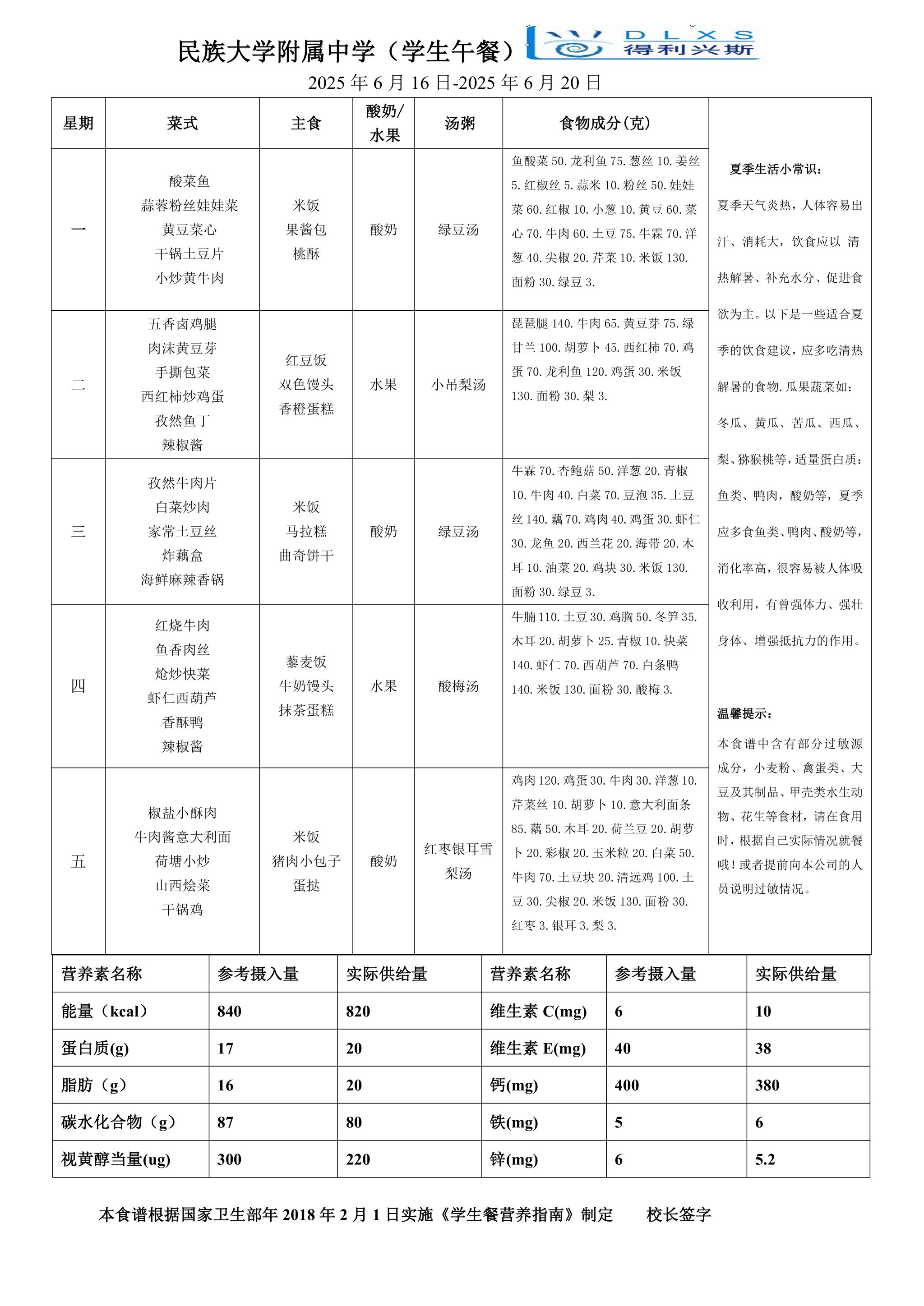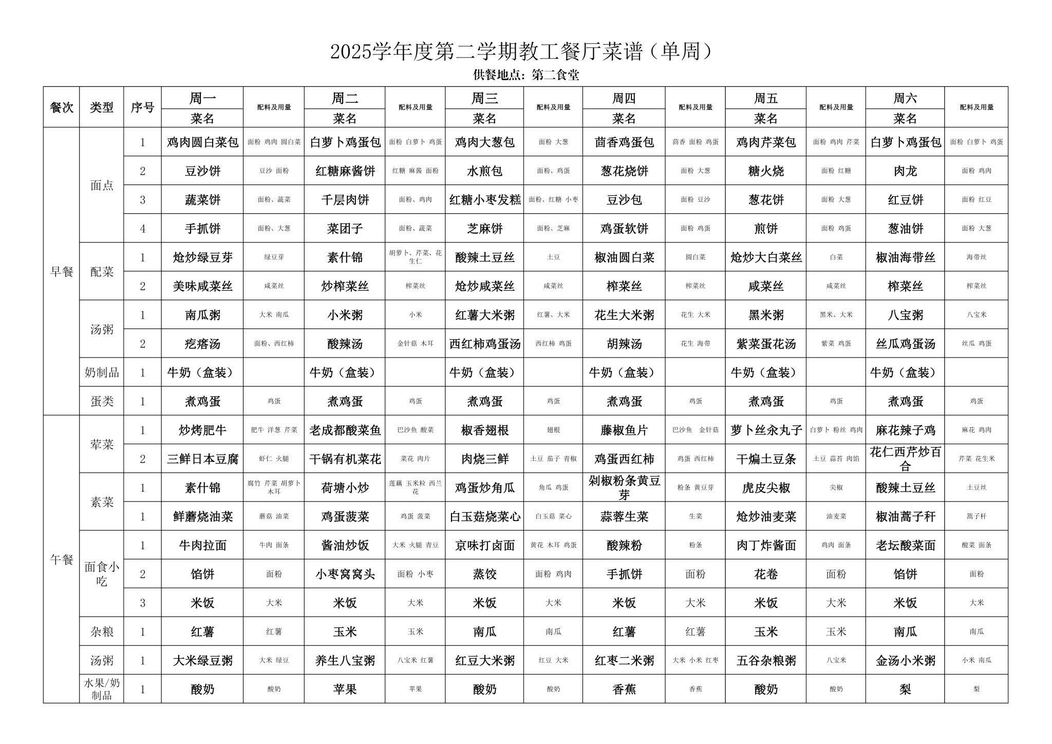 2025年春季学期海淀校区食堂菜谱(2025.6.16-6.22)