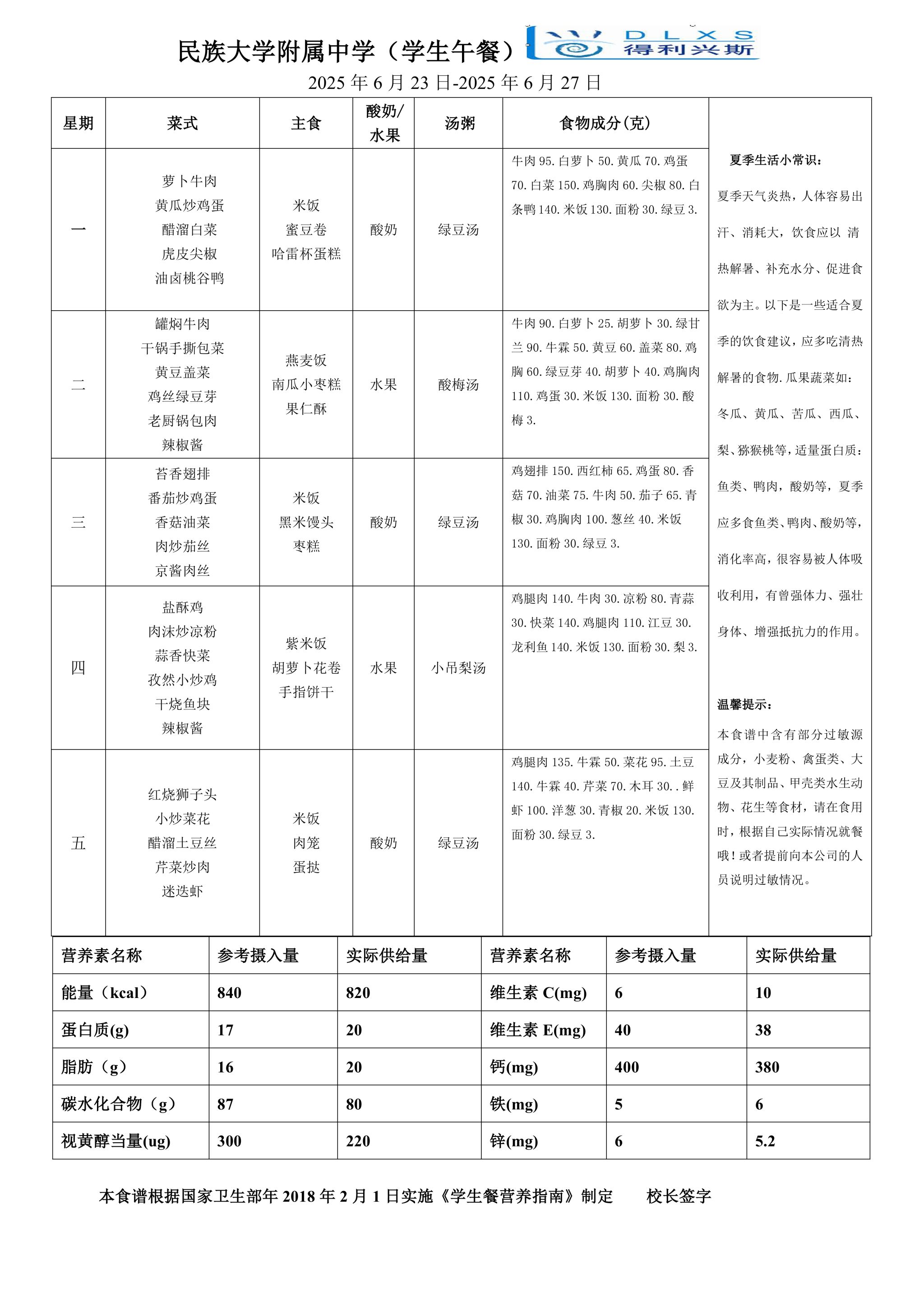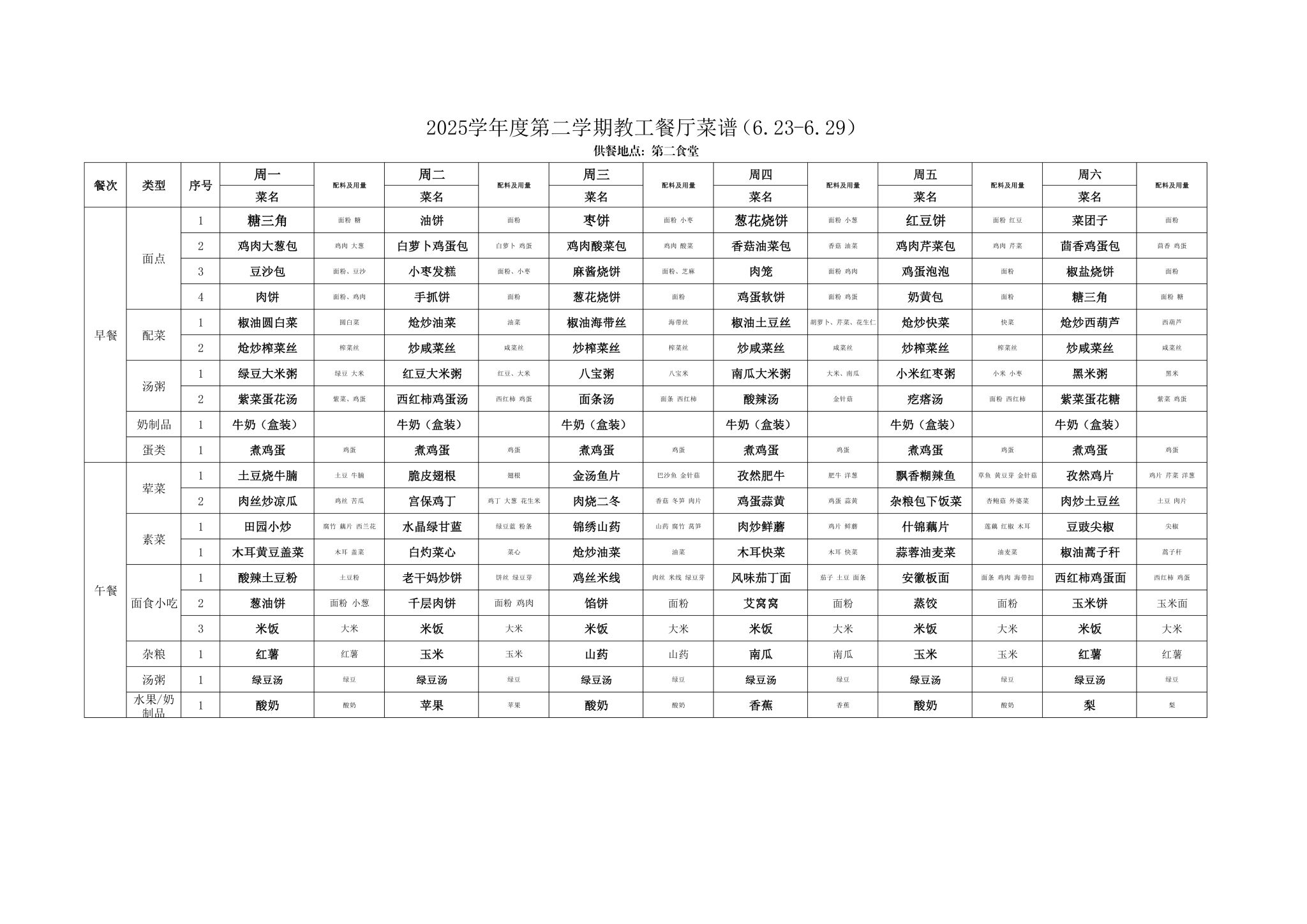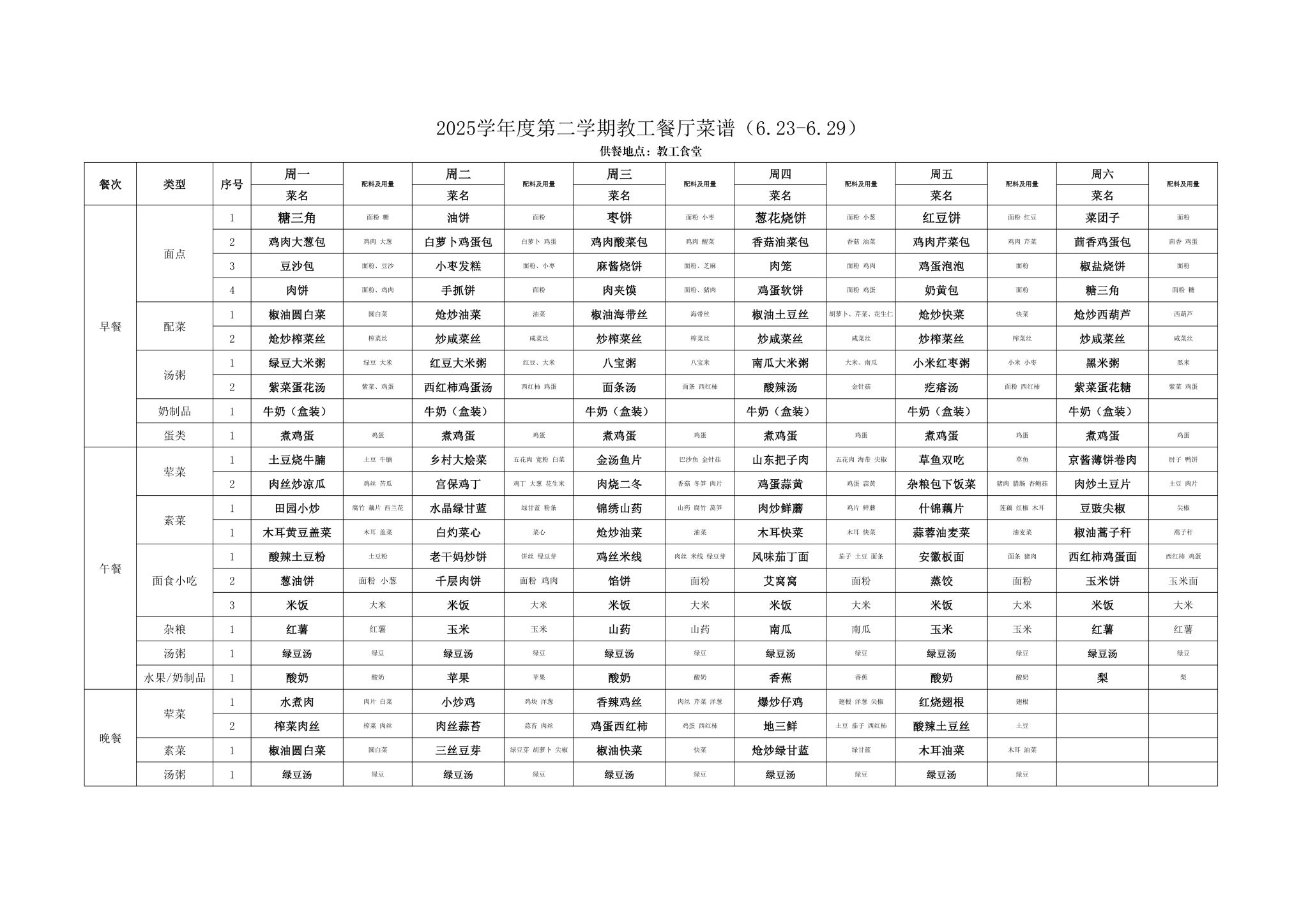 2025年春季学期海淀校区食堂菜谱(2025.06.23-06.29)
