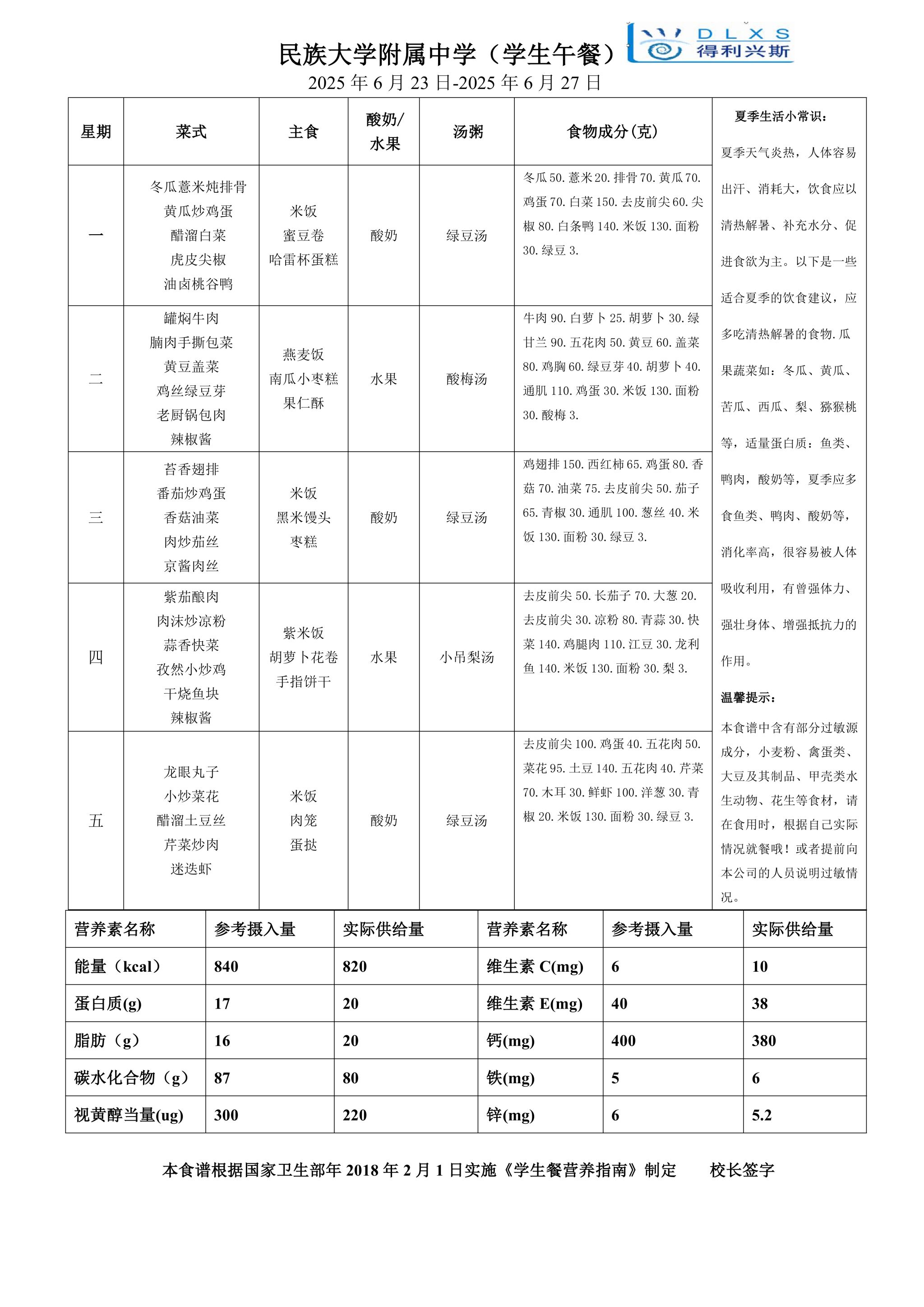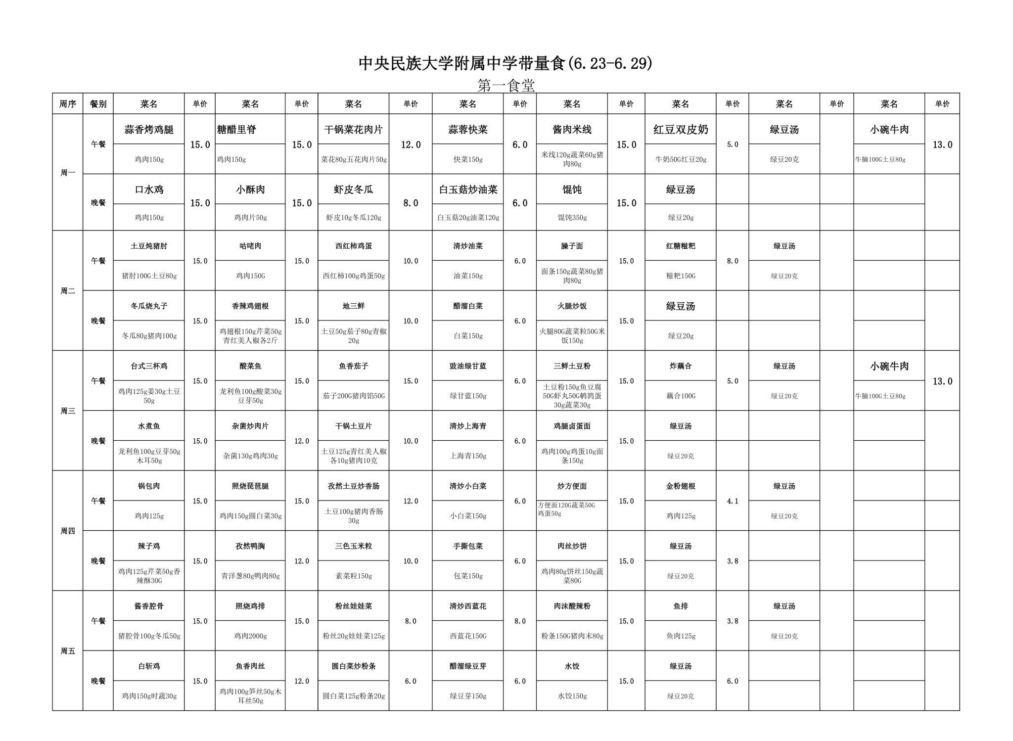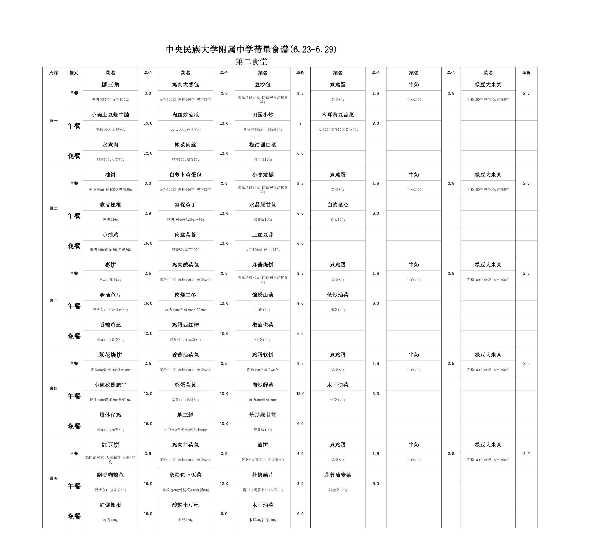 2025年春季学期海淀校区食堂菜谱(2025.06.23-06.29)