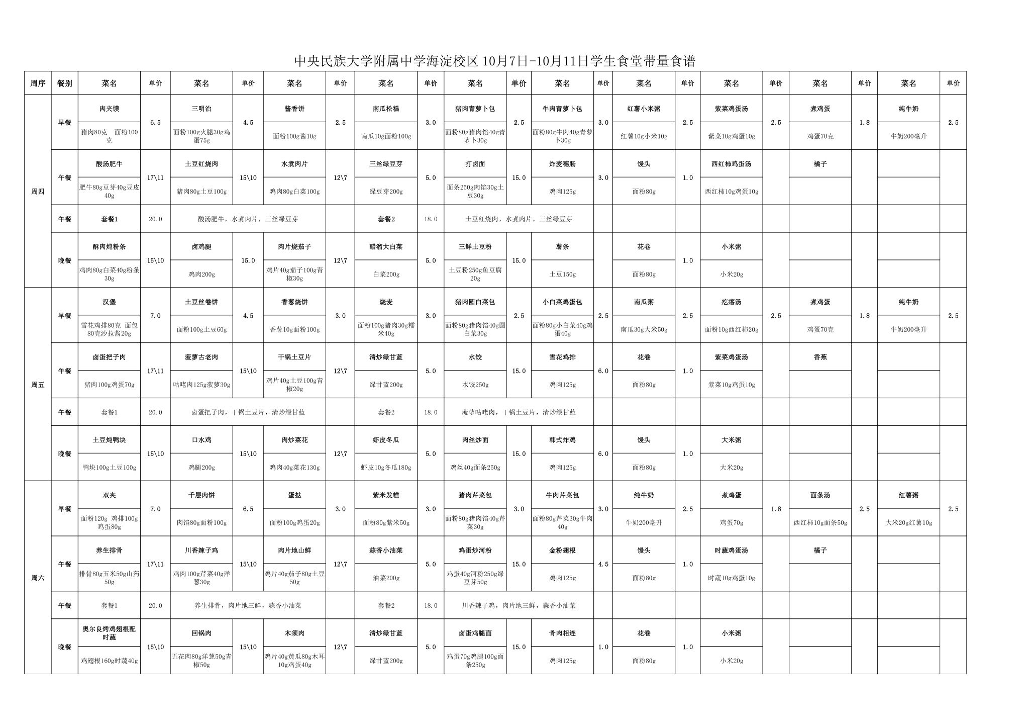 2025年秋季学期民大附中海淀校区学生食堂菜谱公示(2025.10.9-2025.10.11)