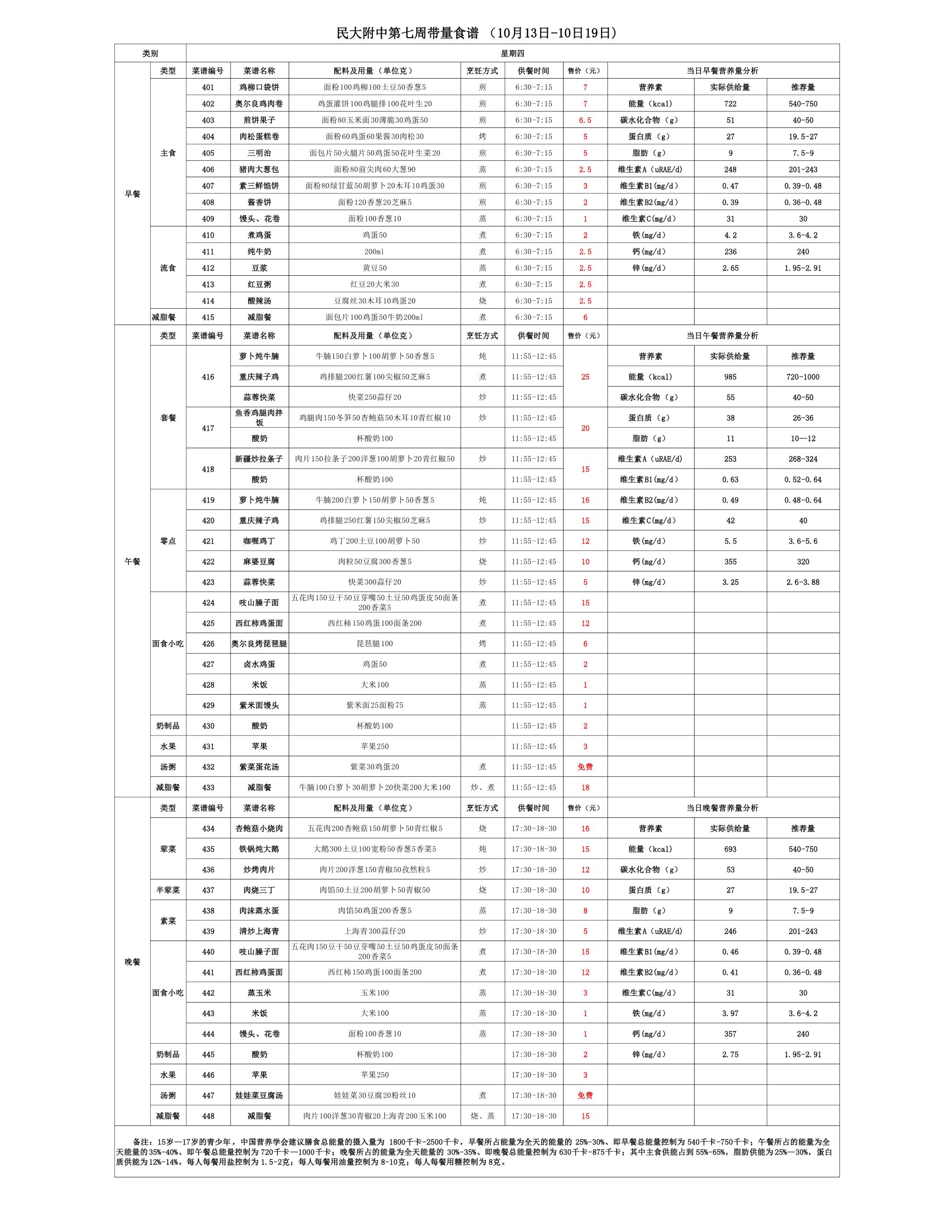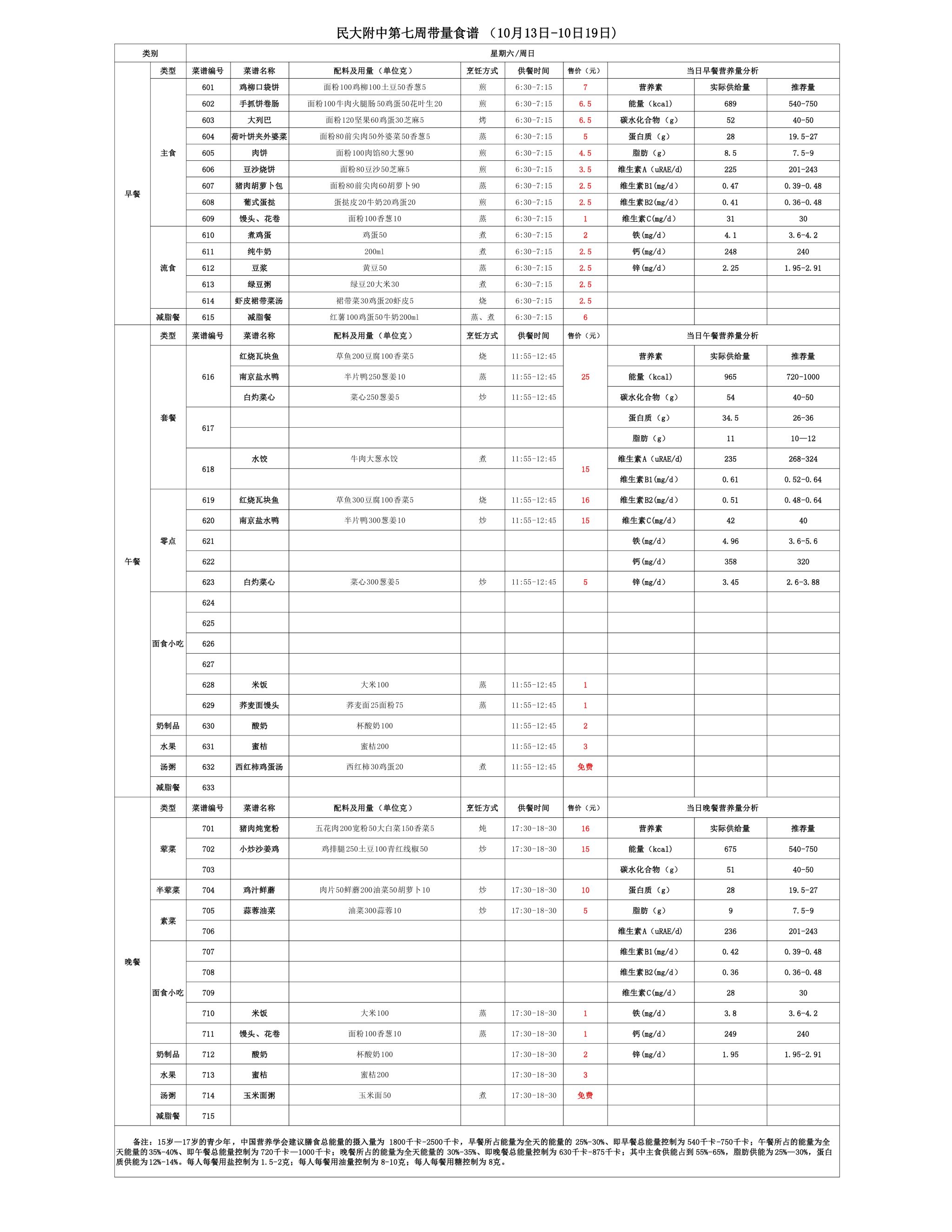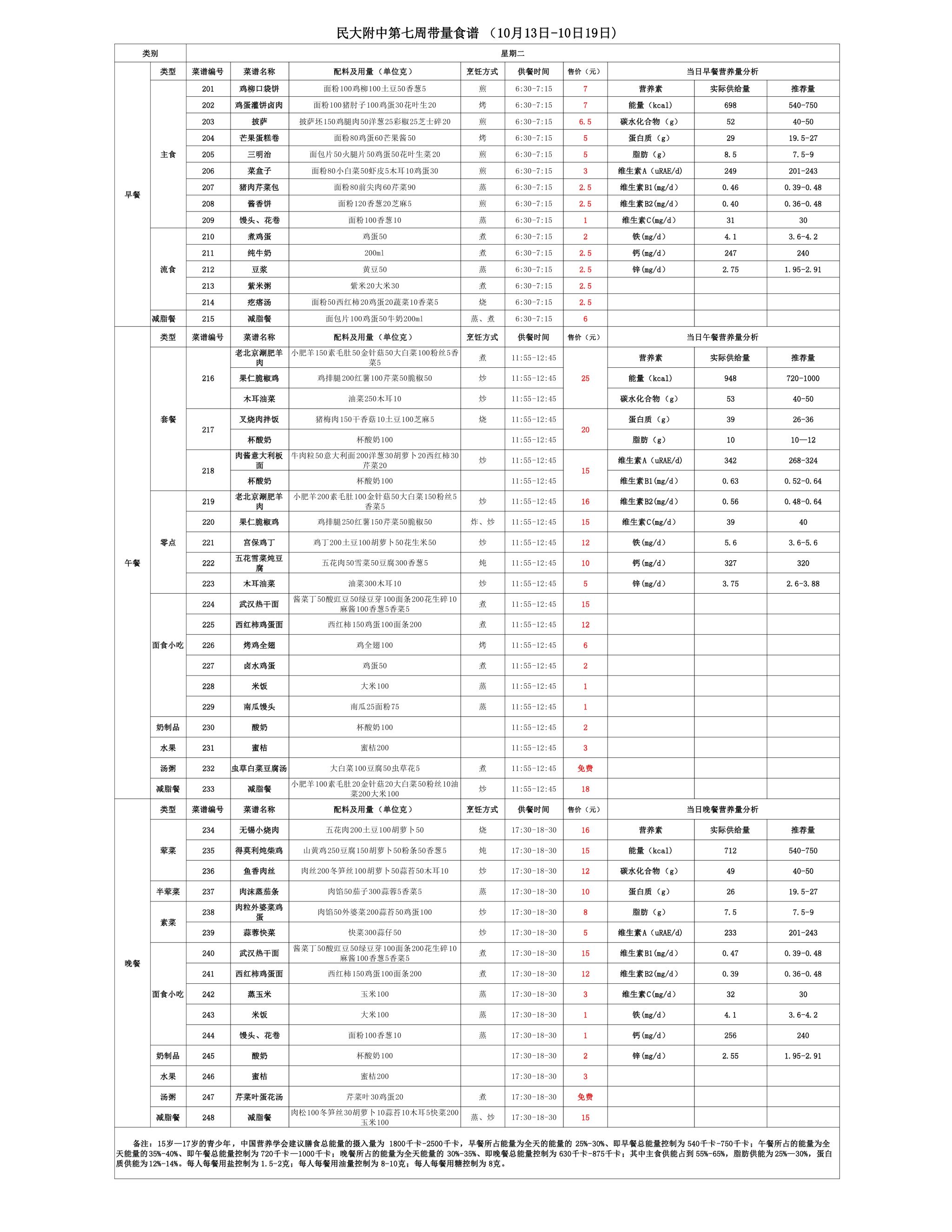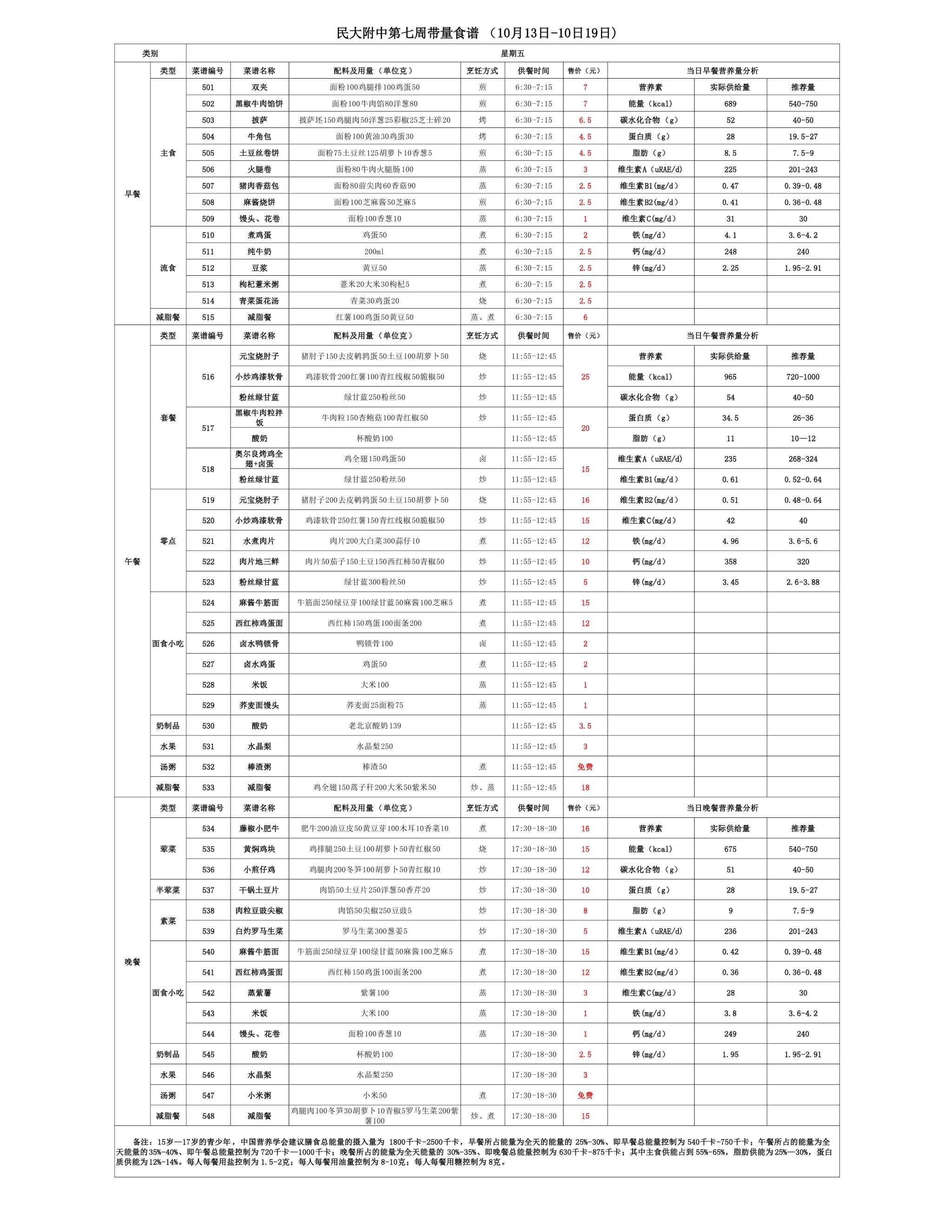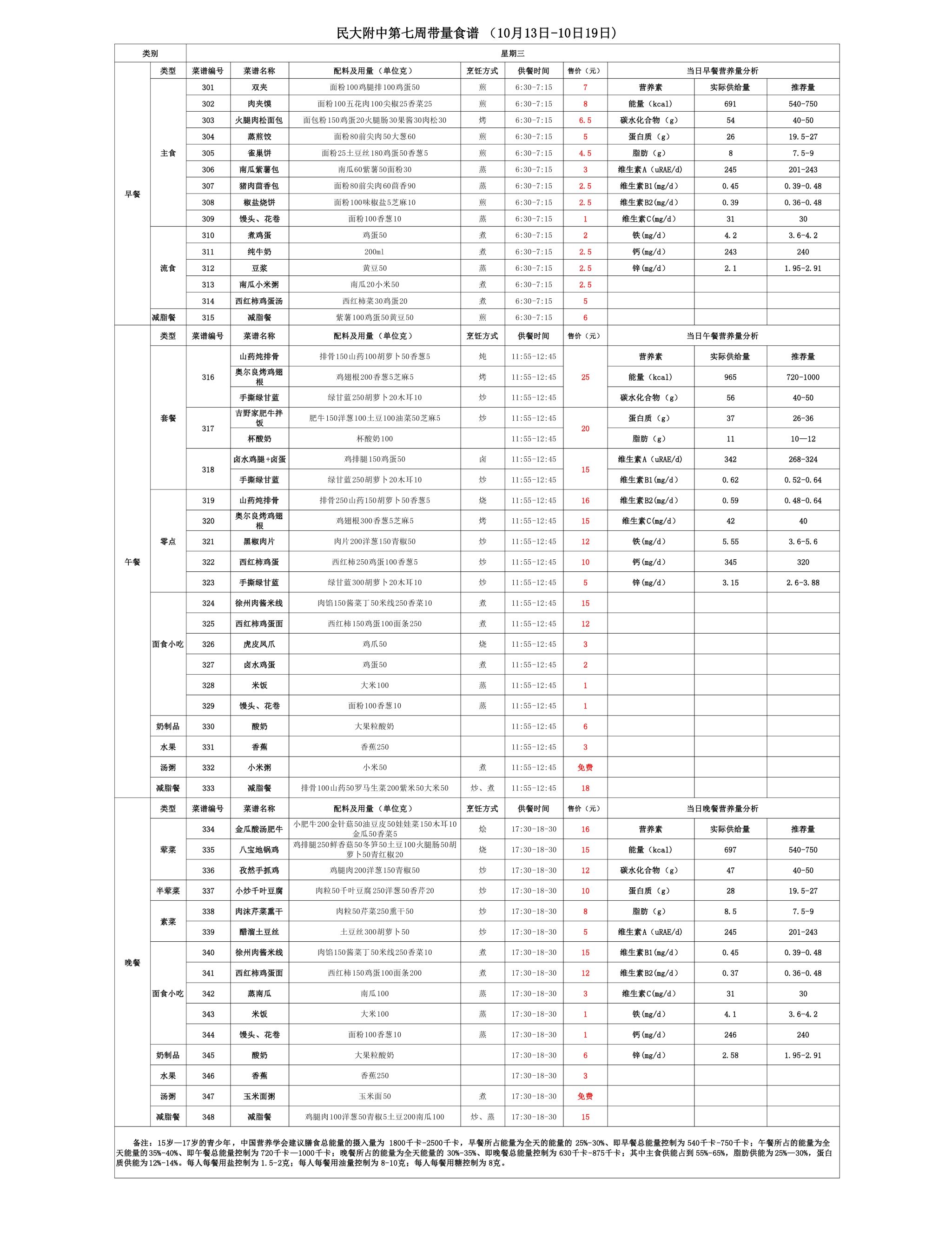 2025年秋季学期朝阳校区食堂菜谱(2025.10.13-10.19)