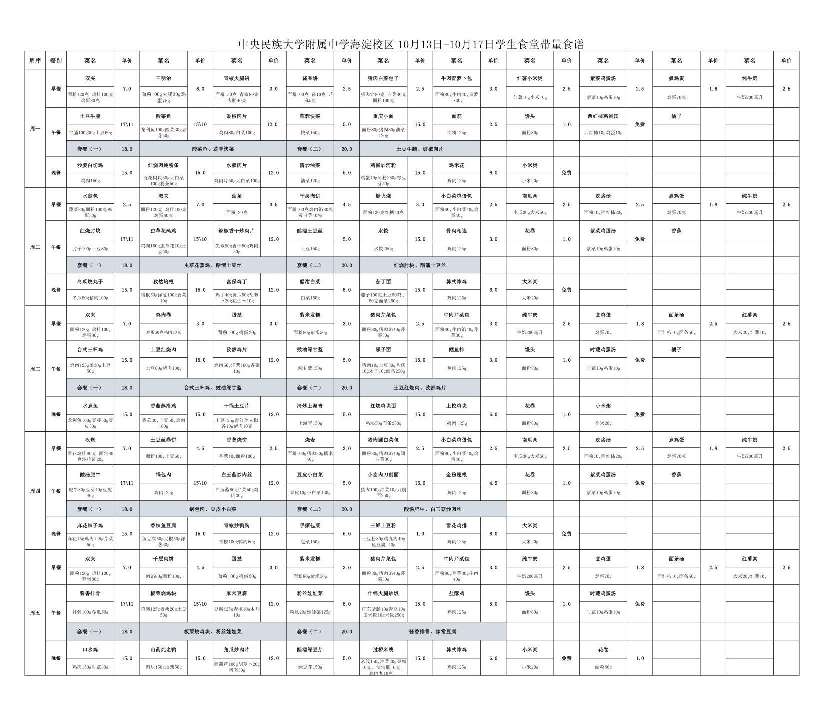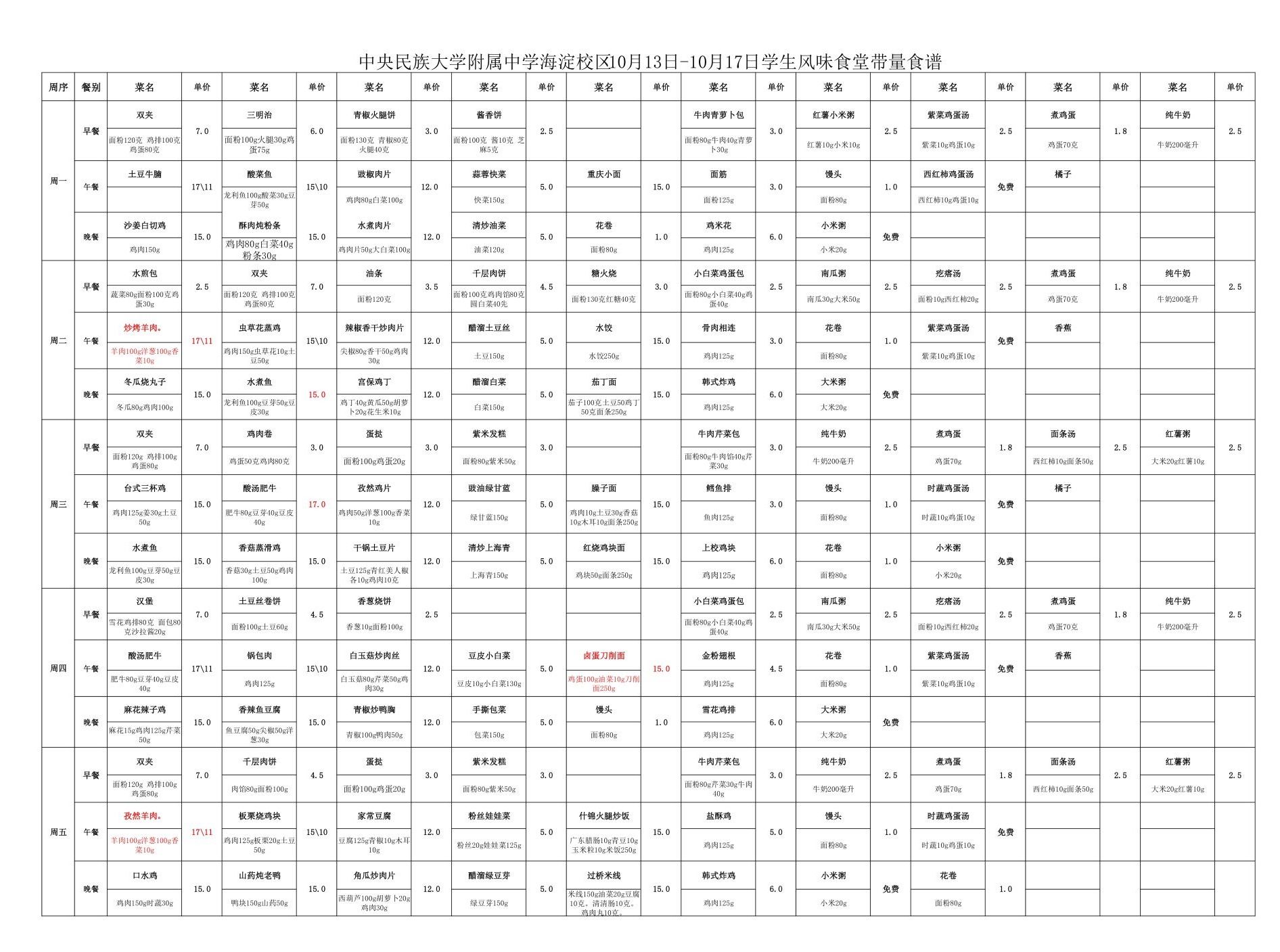 2025年秋季学期民大附中海淀校区学生食堂菜谱公示(2025.10.13-2025.10.17)