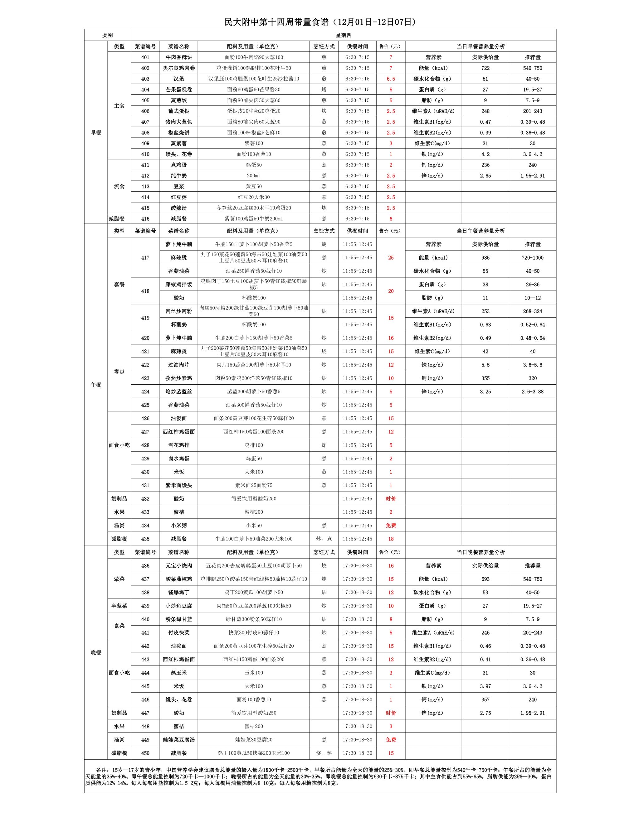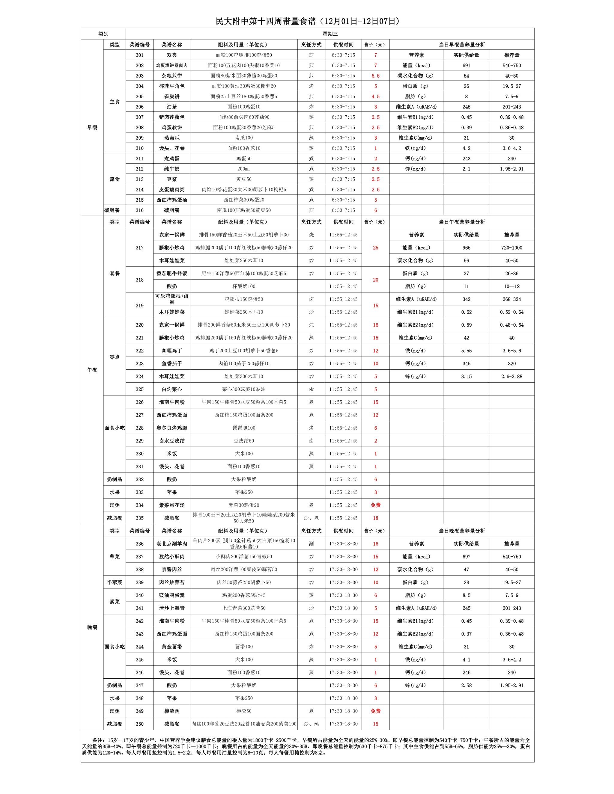 2025年秋季学期朝阳校区食堂菜谱(2025.12.01-12.07)
