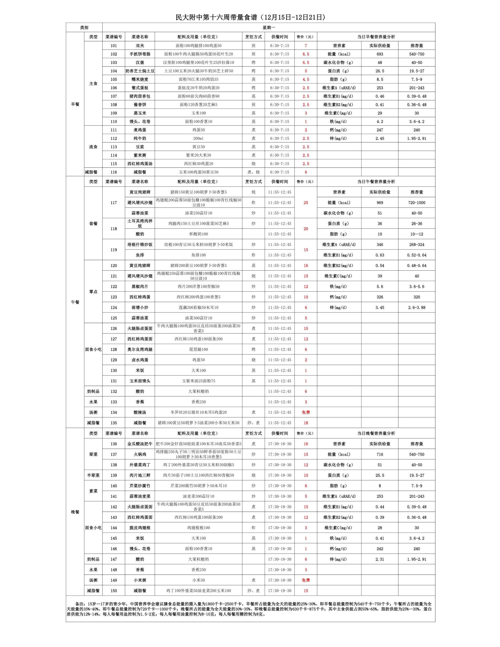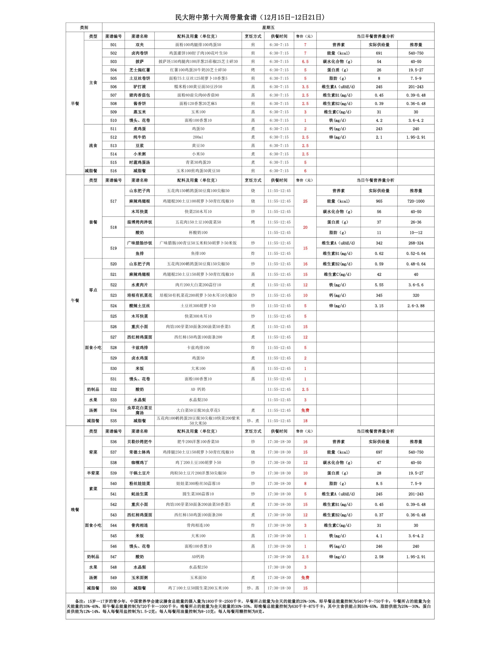 2025年秋季学期民大附中朝阳校区学生食堂菜谱公示(2025.12.15-2025.12.21)