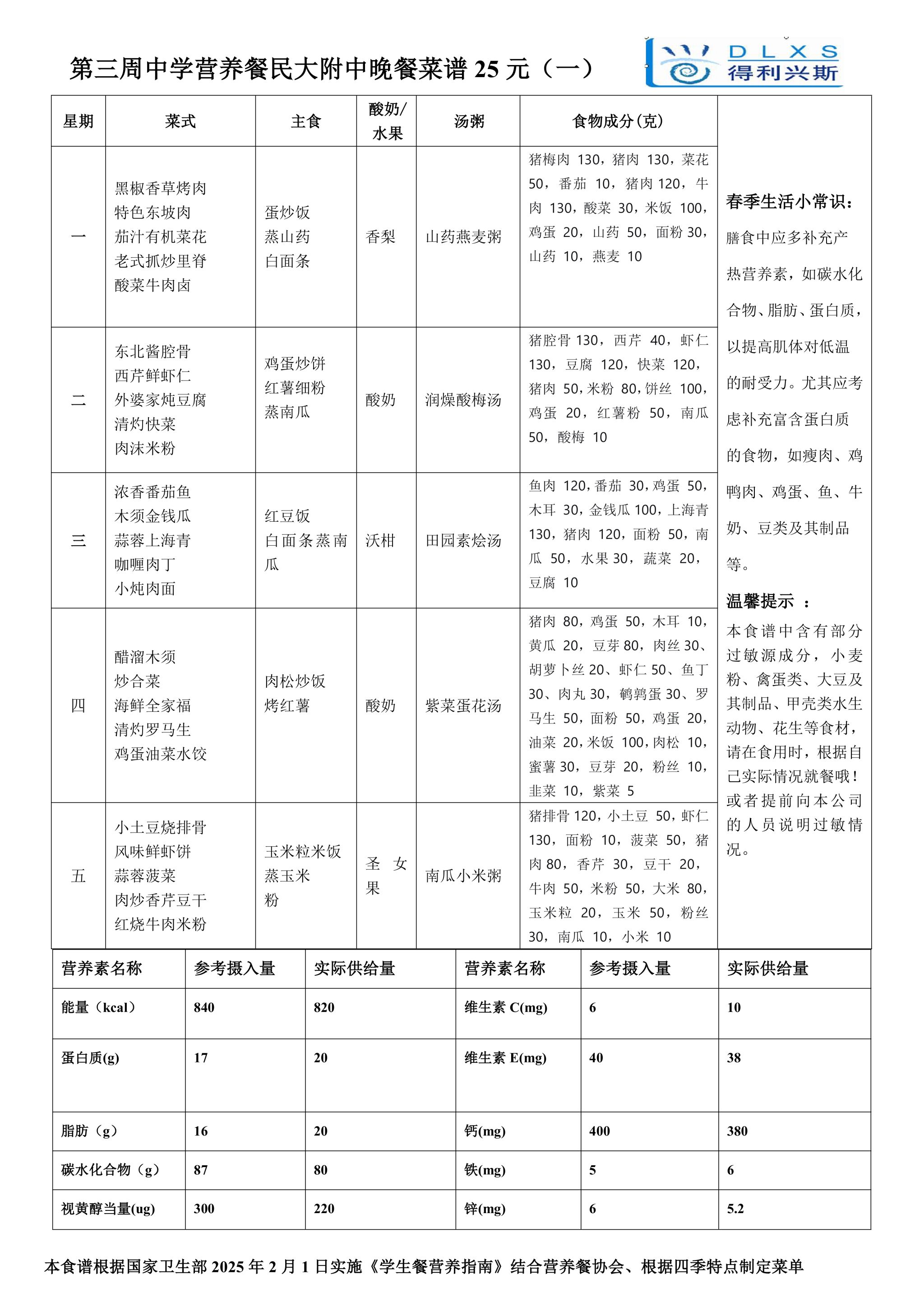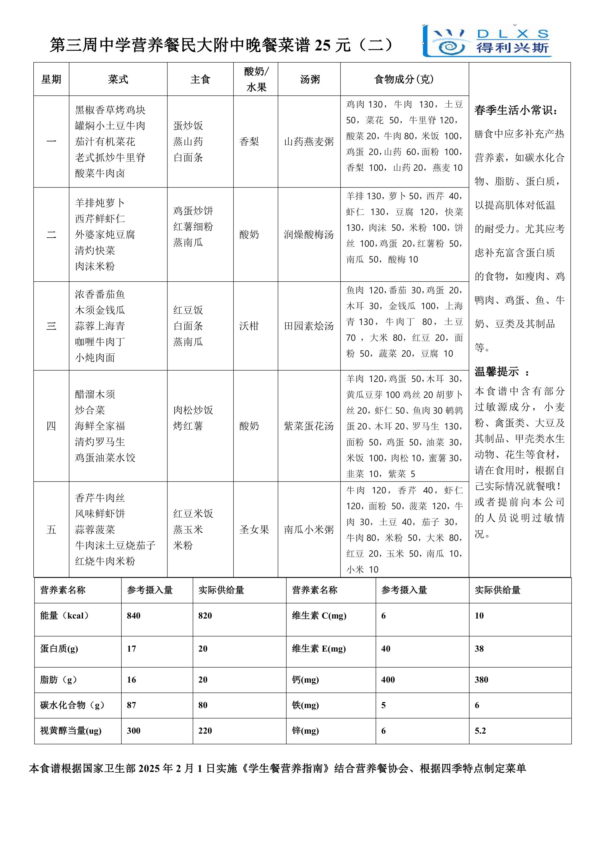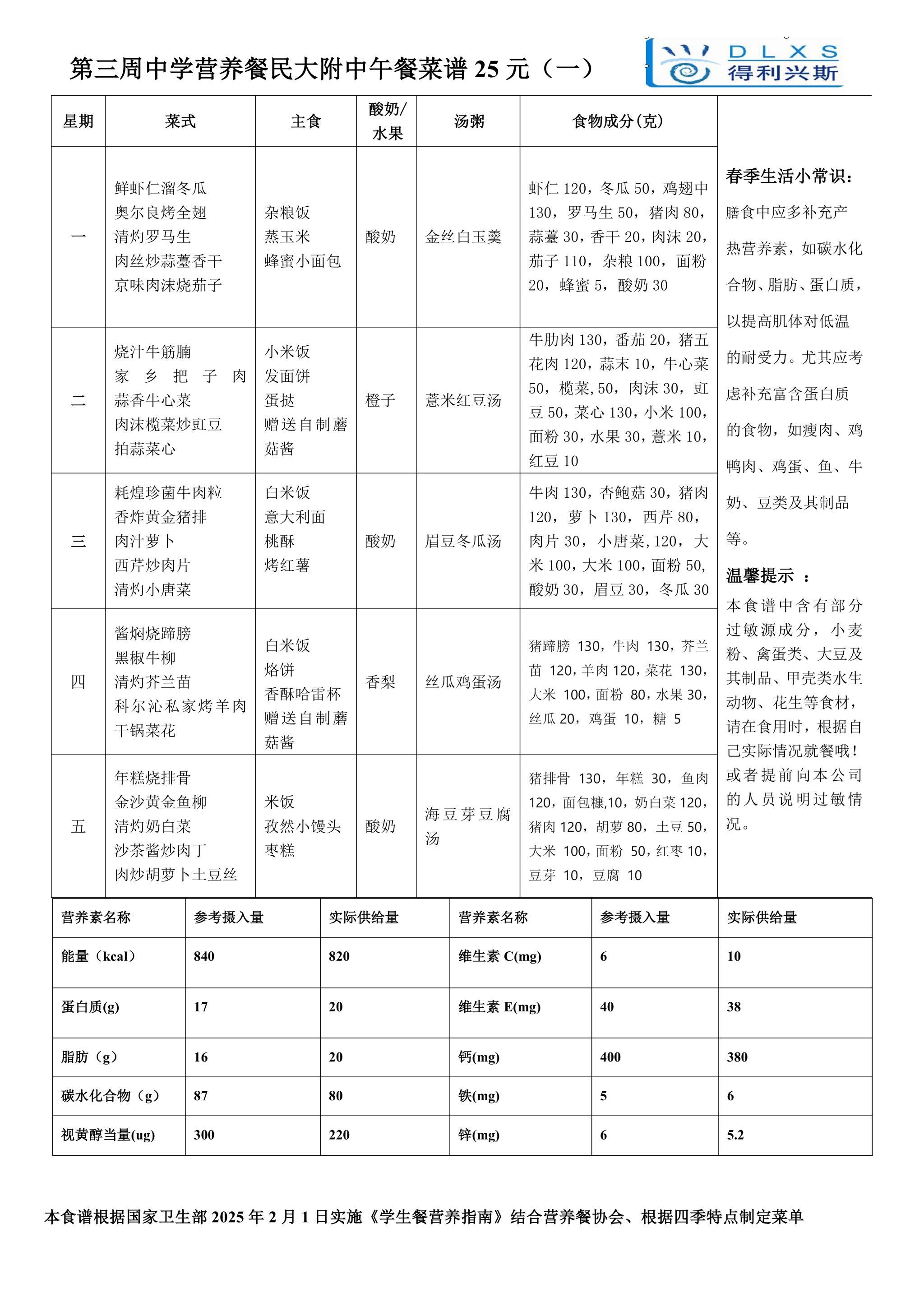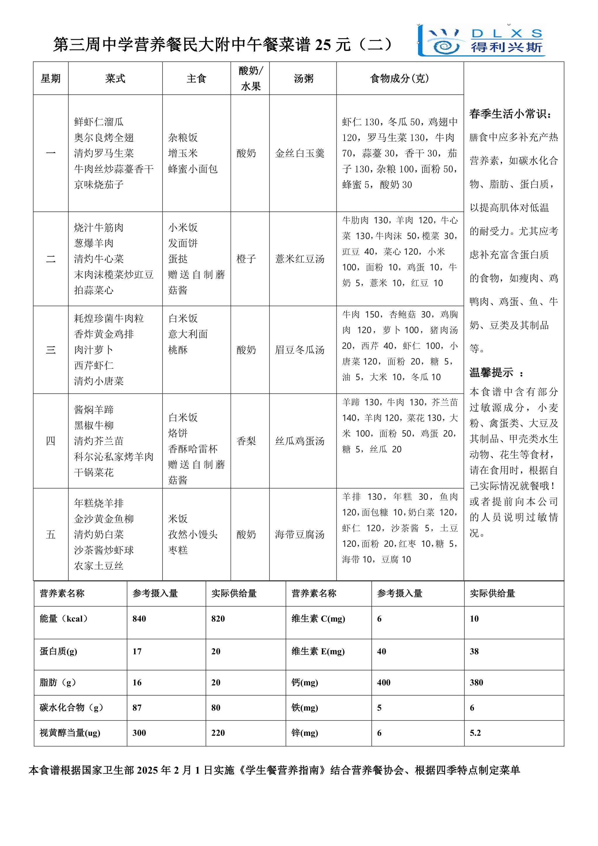 william威廉中文官网附属中学配送营养餐食谱第三周(2026年3月16日至2026年3月20日)