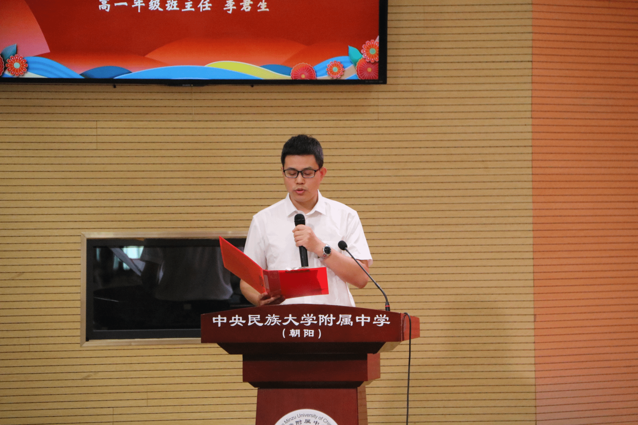 朝阳校区执行校长魏立功发表了鼓舞人心的致辞。他回顾了百年民附的光荣历史,重温了党和国家对民附学子的深切关怀。他勉励全体新同学,树立坚定的理想信念,永远听党话、跟党走,在民大附中,刻苦学习,精进学业,锻炼才能,学好本领,各美其美,美美与共,实现德智体美劳全面发展,成为在社会主义现代化建设中可堪大用、能担重任的栋梁之才,矢志奉献国家和人民。