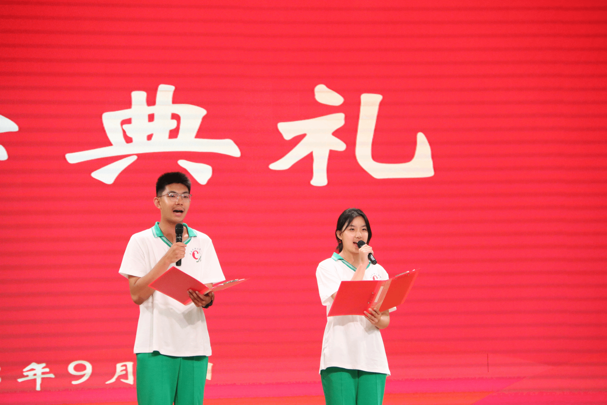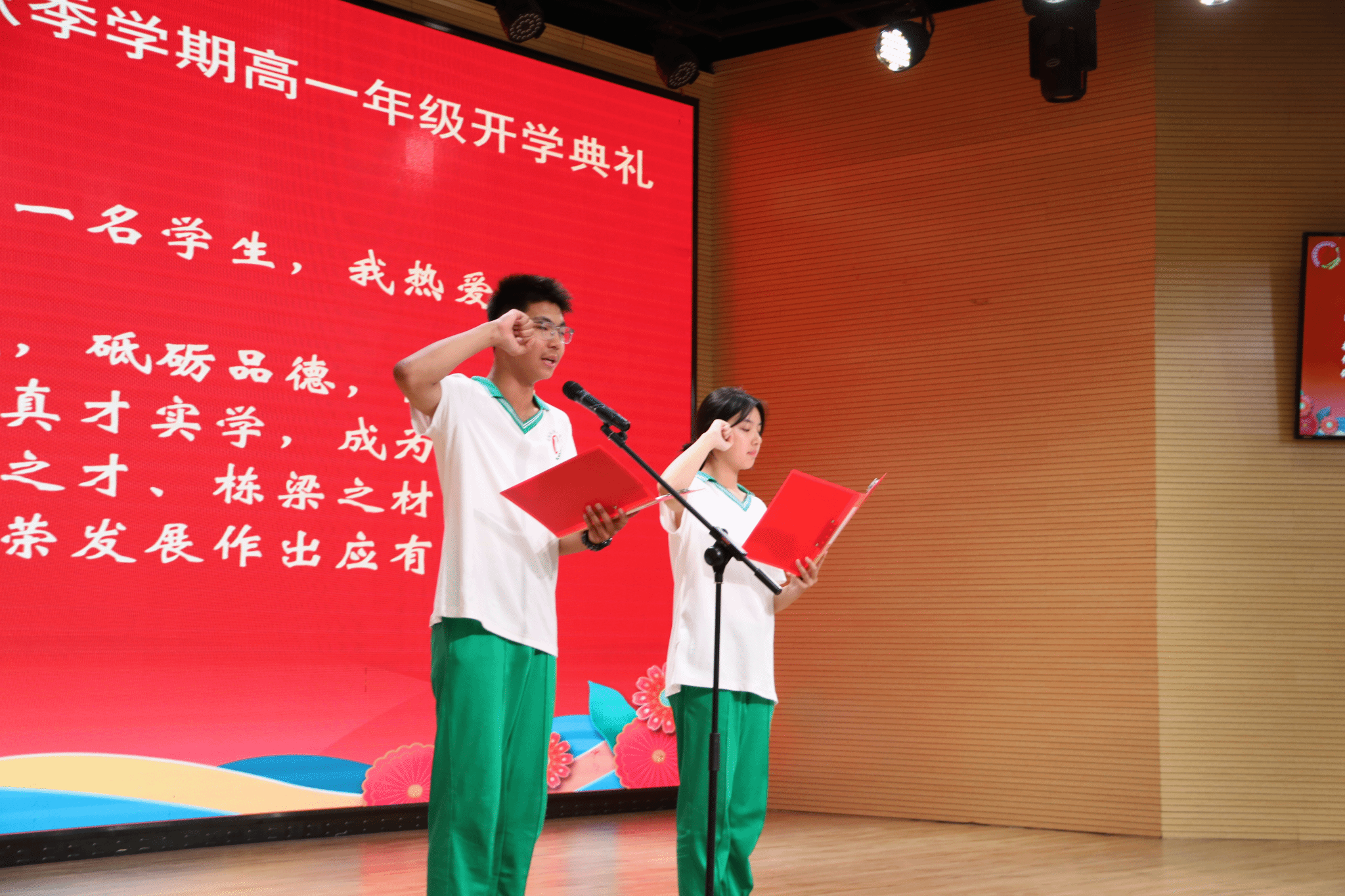 高一年级新同学张皓程、王牧子夏主持开学典礼。
