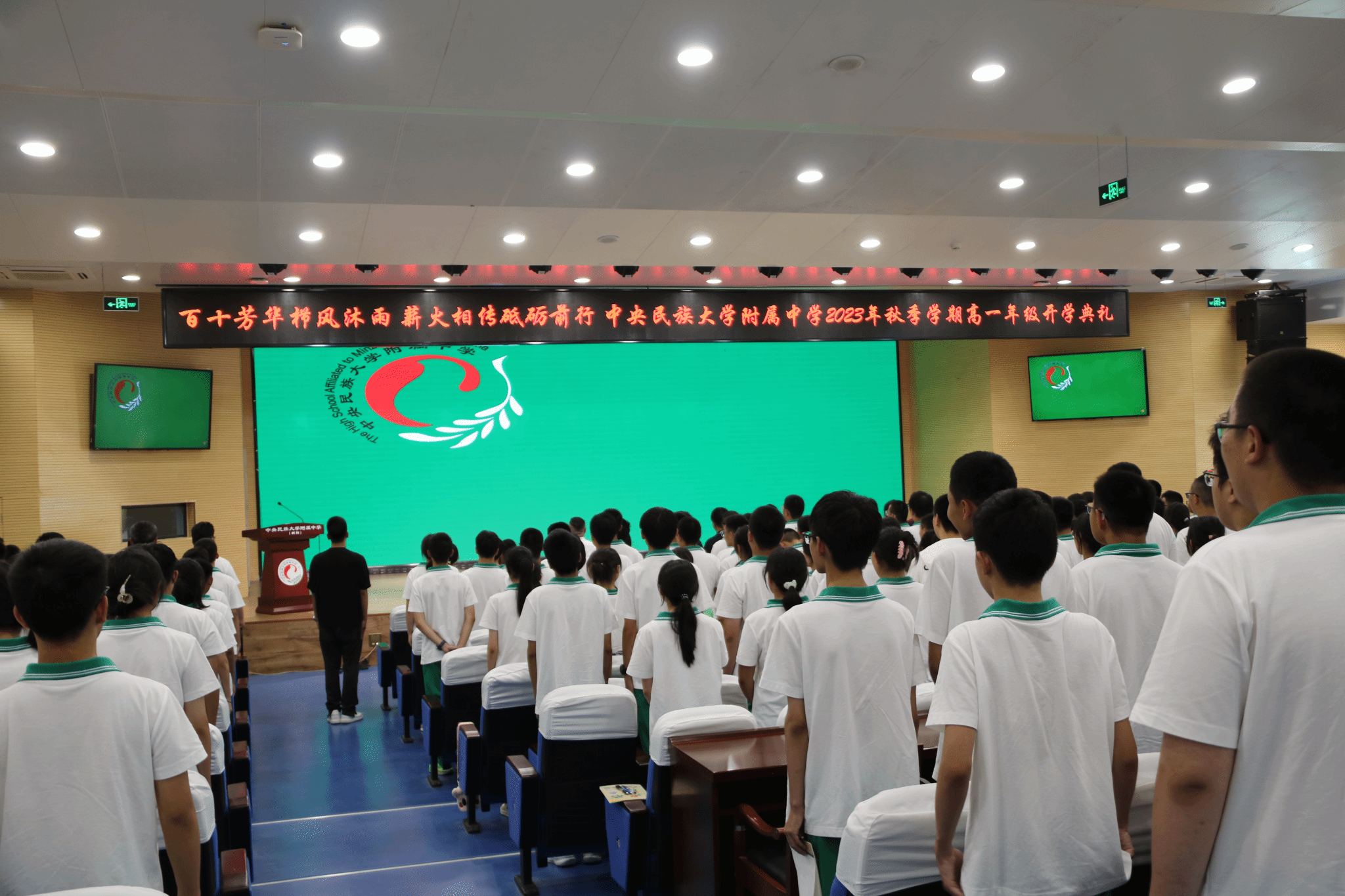 下午4点,开学典礼在庄严肃穆的国歌和青春洋溢的校歌声中开始。
