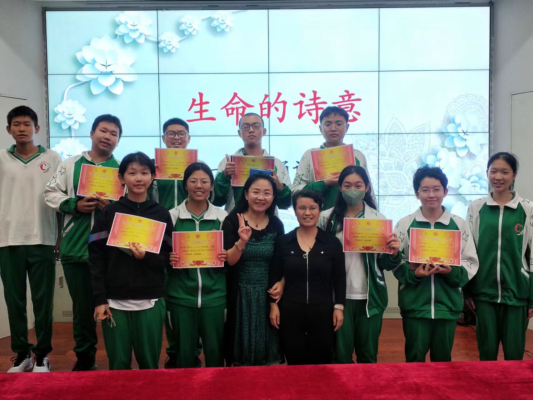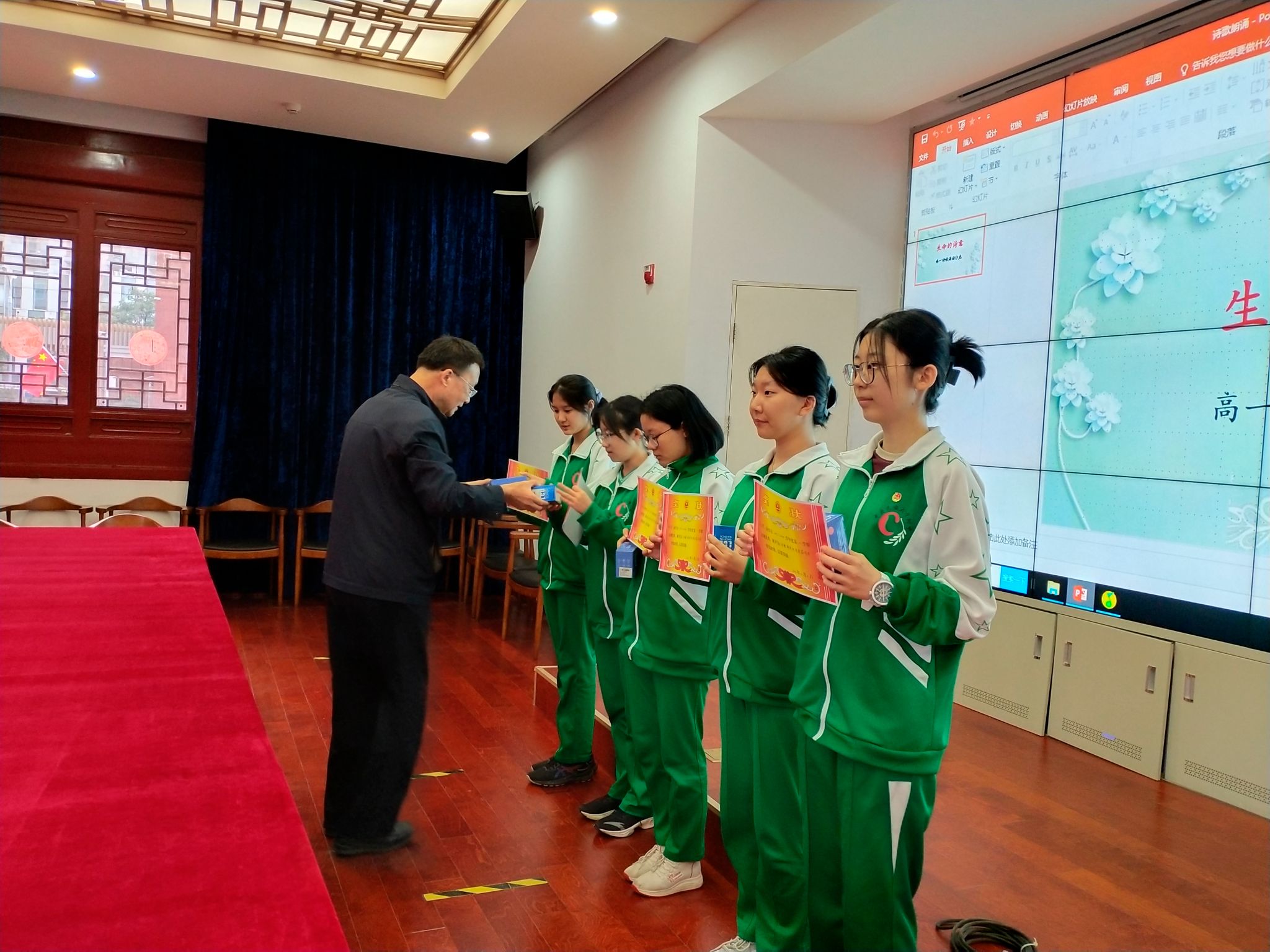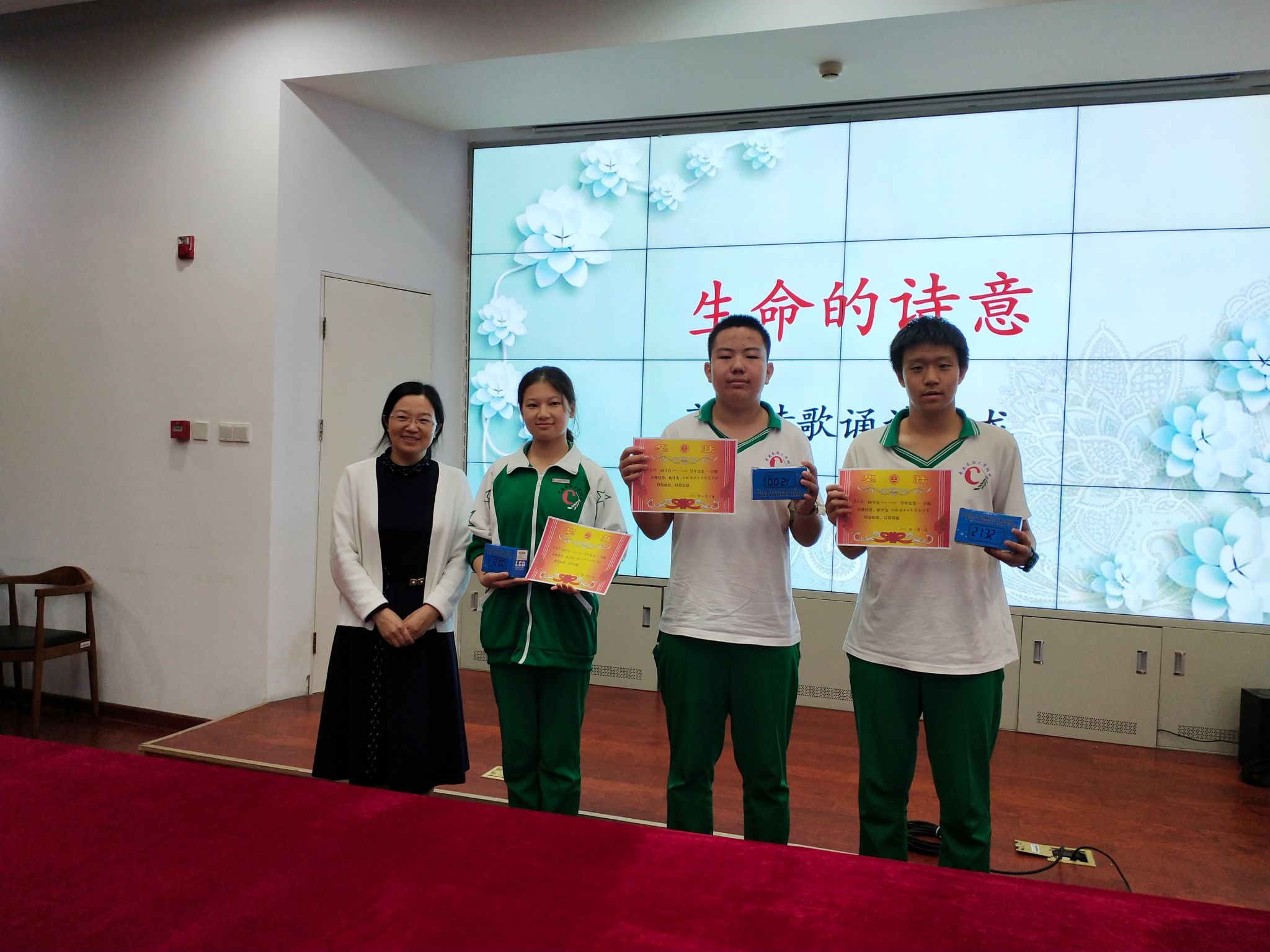 全年级十二个班的学生踊跃报名,最后选拔出36名同学在辟雍南厅进行诵读表演。语文组老师们通力合作,对学生进行朗诵指导和评价,并准备了奖状和小奖品。