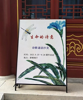 秋光绚烂,诗意生辉。在北京美好的秋日中,朝阳校区高一语文组开展了“生命的诗意——诗歌诵读沙龙”活动。活动从2023年9月25日一直持续到10月11日,目的是激发学生学习语文的兴趣、促进诗歌教学内容的落实、丰富学生的课余生活。
