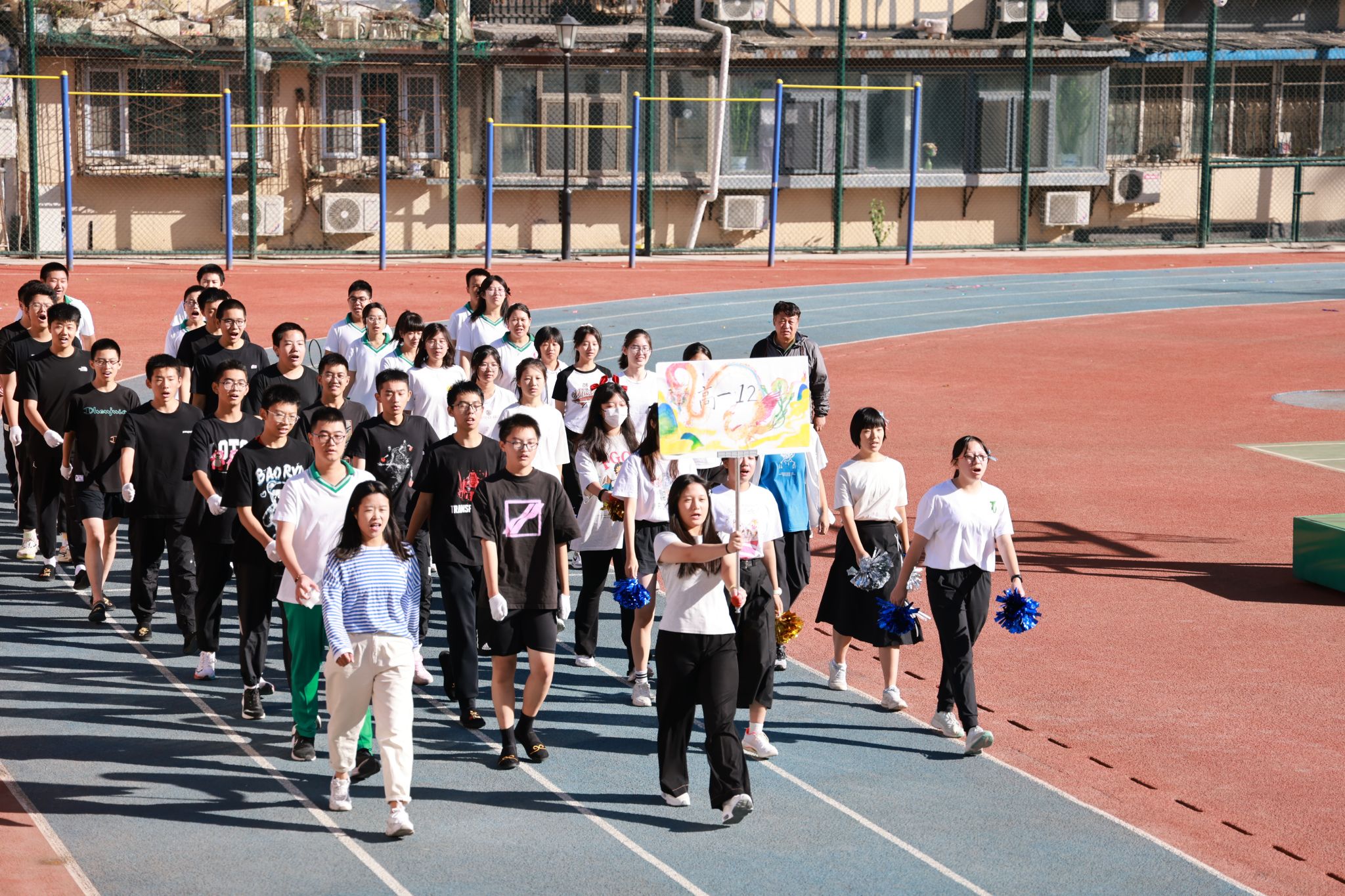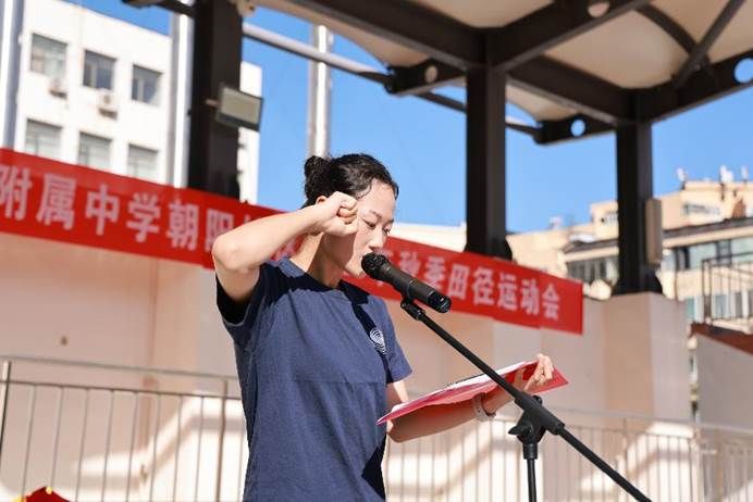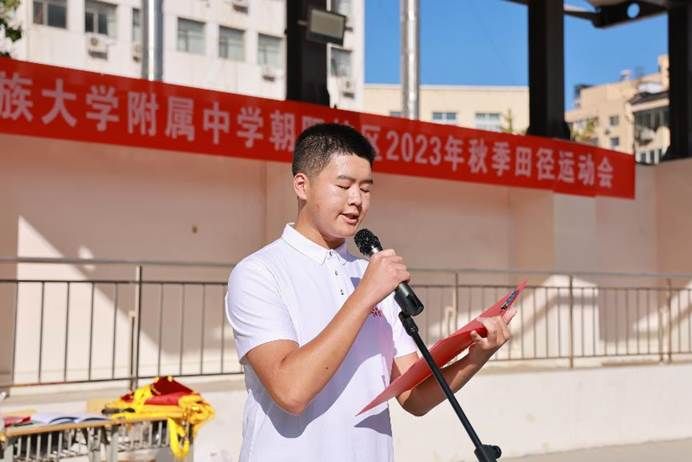 精彩的表演以及庄严的升旗仪式后,朝阳校区执行校长魏立功致开幕词。他赞美了同学们在开幕式表演中的青春活力,并在110周年校庆到来之际,向大家介绍了附中在收到习近平总书记回信后的十年所承担的教育使命和作为,以及在民附的教育下,走出的有着鲜明民附学生品质的优秀学子——“家国情怀、人文见长、才能卓越、社会担当”。面对着即将开始的校运会,他希望运动员遵守规则,裁判员公正裁判,观众文明观赛,共同创造一届成功的田径运动会,并让奥运精神激励我们各项工作不断攀登。