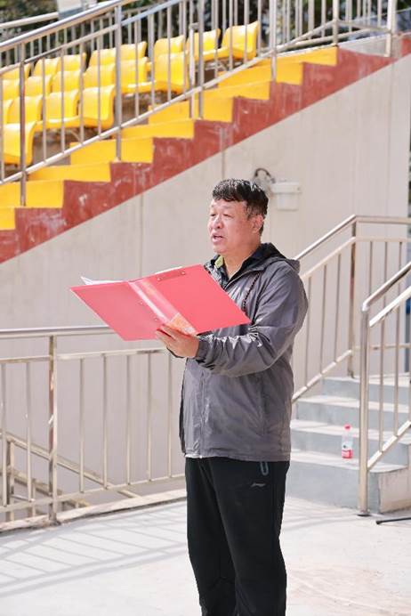 魏立功副校长致辞结束后,裁判员代表邢星老师和运动员代表王言彬同学分别宣誓,庄严承诺遵守竞赛规则、公正裁判与竞技,为比赛的公平和友好竞争打下坚实基础。