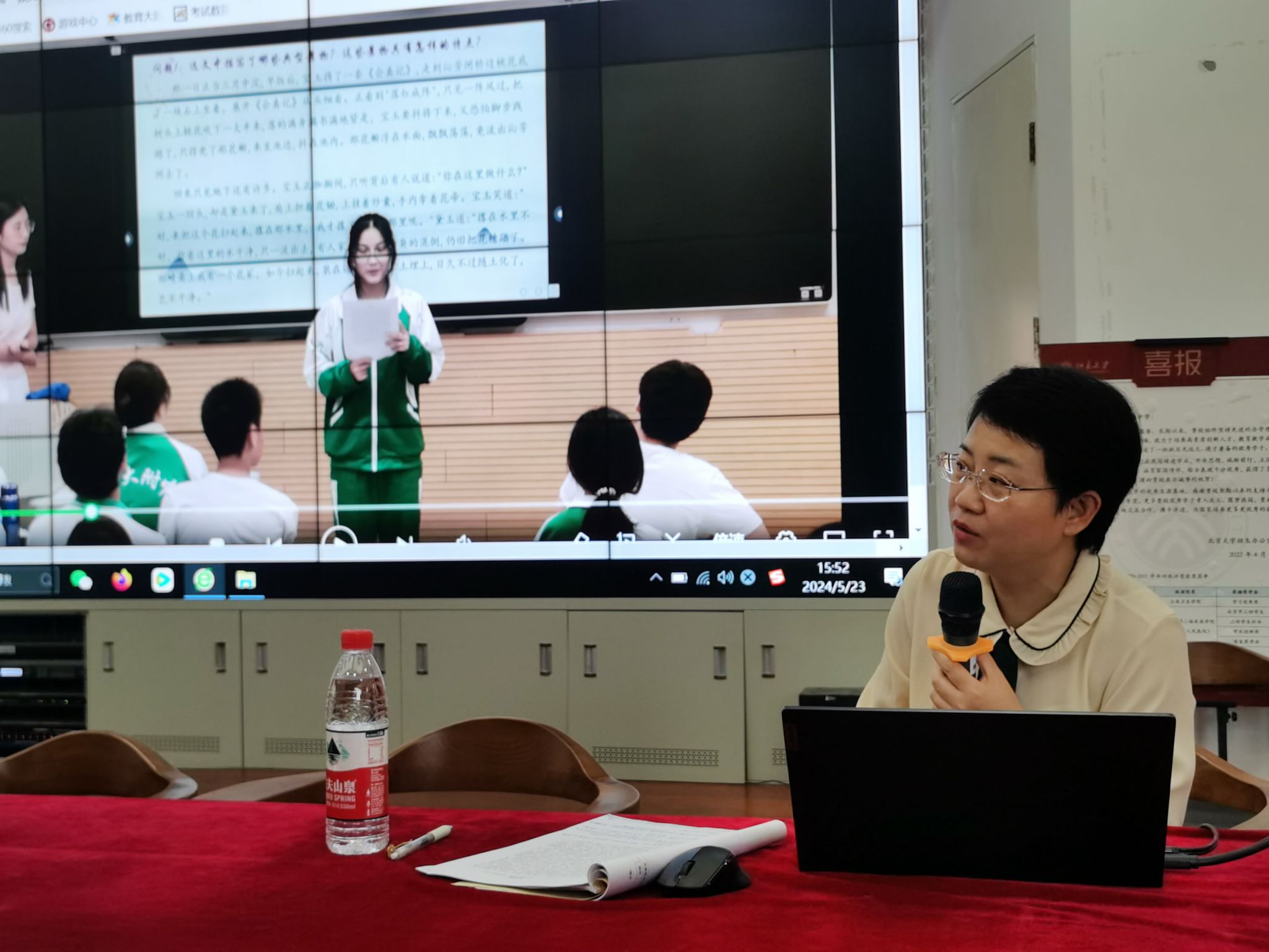 语文组陈朝晖老师的汇报课题为“‘妙合无垠,意与境浑’——《红楼梦》的意境美”,她从“审美”的角度切入,通过小组讨论和发言引导学生赏析《红楼梦》的意境美,增强了学生的自主阅读和鉴赏能力。