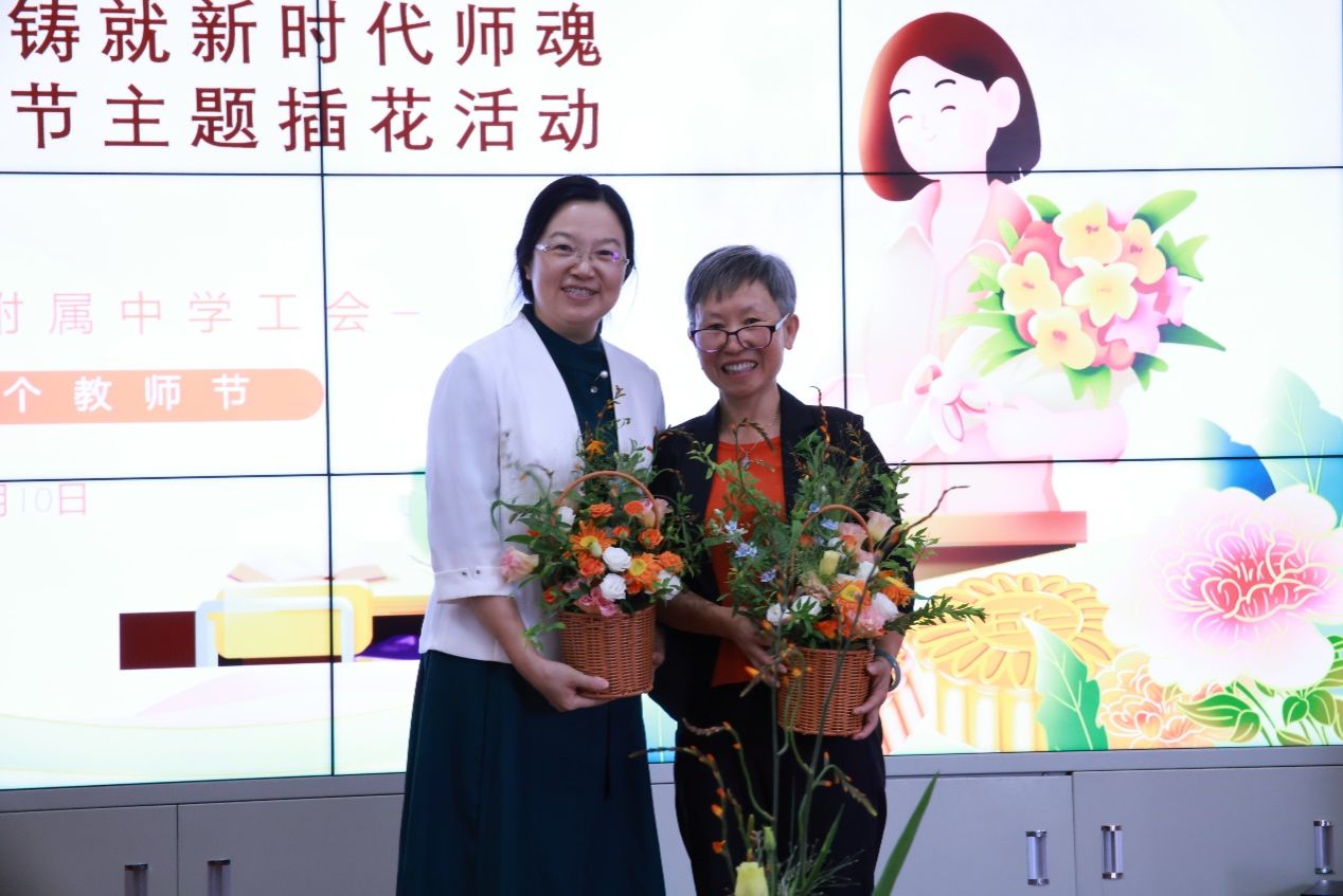 9月10日,学校邀请花艺师为老师们带来传统文化及花艺制作讲座,在花艺师的指导下,老师们精心构思、悉心修剪,一束束花枝变成了一件件清雅别致的花艺作品,展现着老师们独特的品味与修养。大家手捧鲜花,在芬芳中感悟传统文化和教师节日的双重美好。