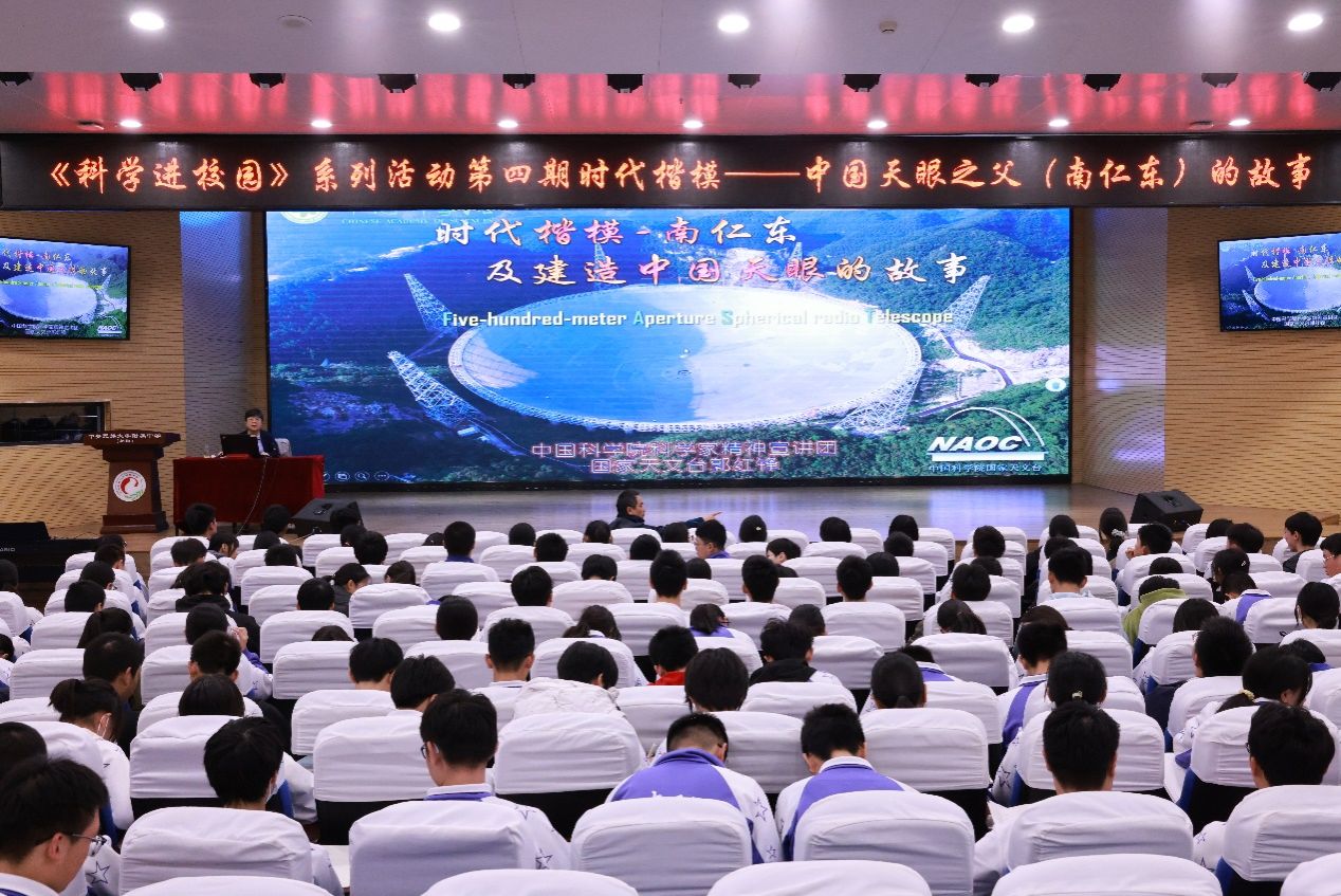 讲座中,令同学们感慨不已的是“中国天眼”从提出设想,到制定计划、方案,再到实施等各个阶段中,中国天眼之父——南仁东带领团队克服重重困难,攻克道道难关,22年一步步走过来,其中的典型事例所表现出来的科学家精神,昭示出时代楷模带给人们的榜样力量,激发青年人投身科学,为国增光的时代热情。