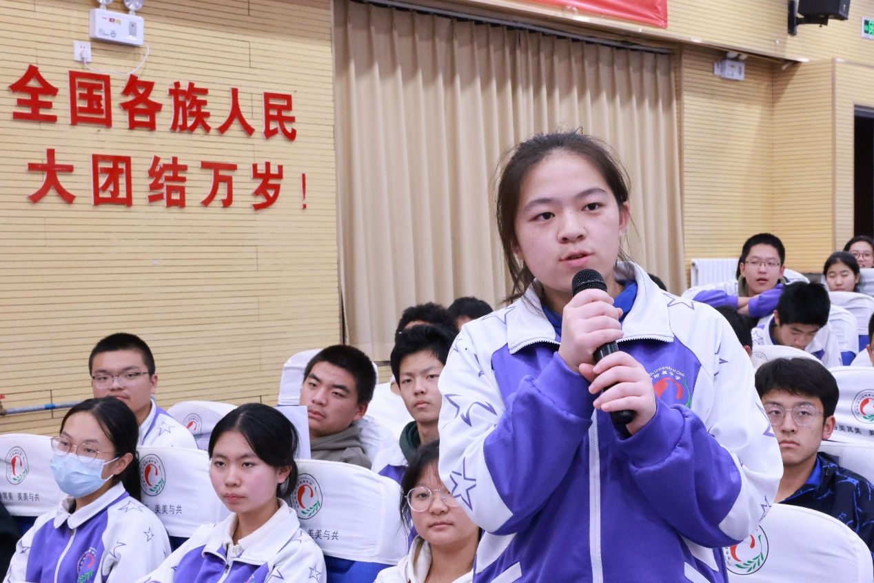 朝阳校区高一年级的同学们参加了此次讲座。中央民大附中朝阳校区教务科科长周雅楠代表学校对郭红锋老师的莅临指导表示了欢迎和感谢。高一年级主任陈建勇主持了本次活动。