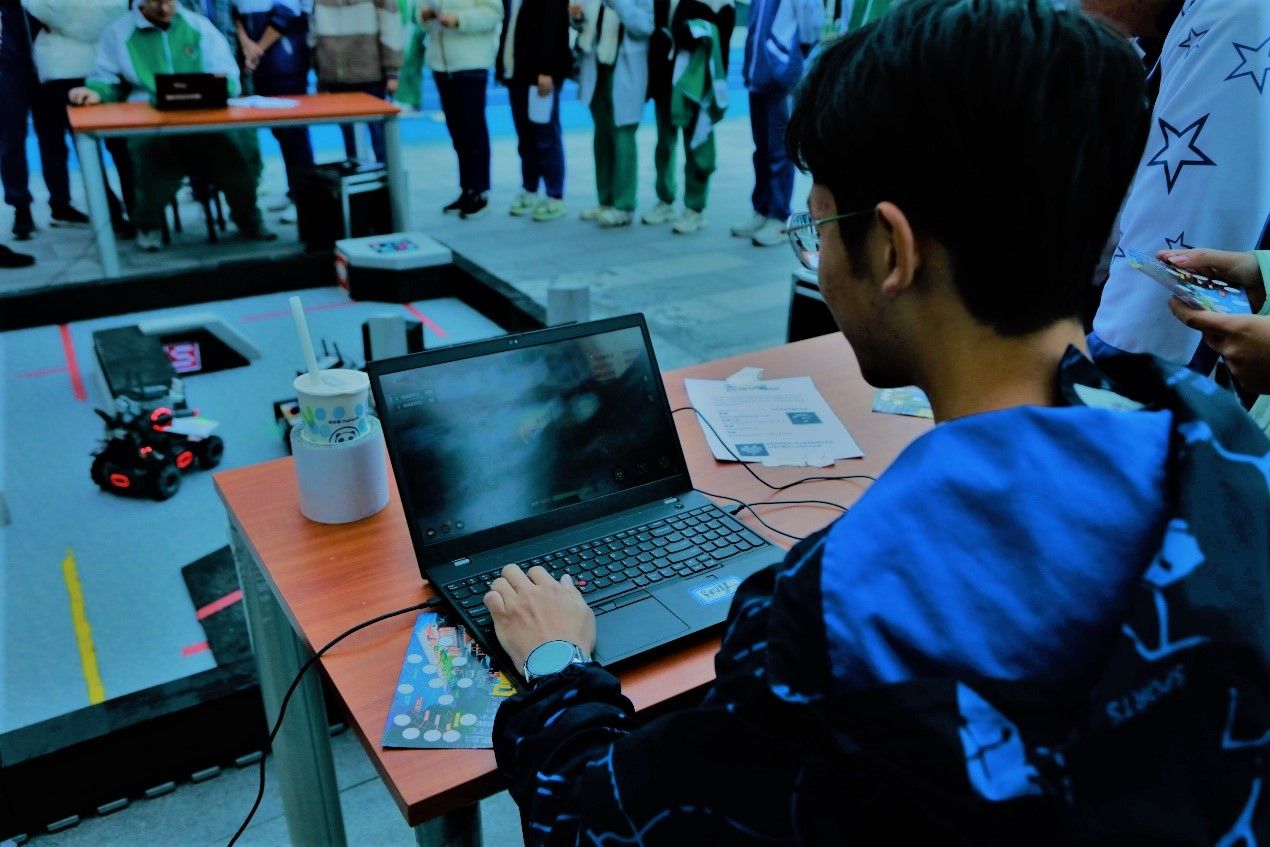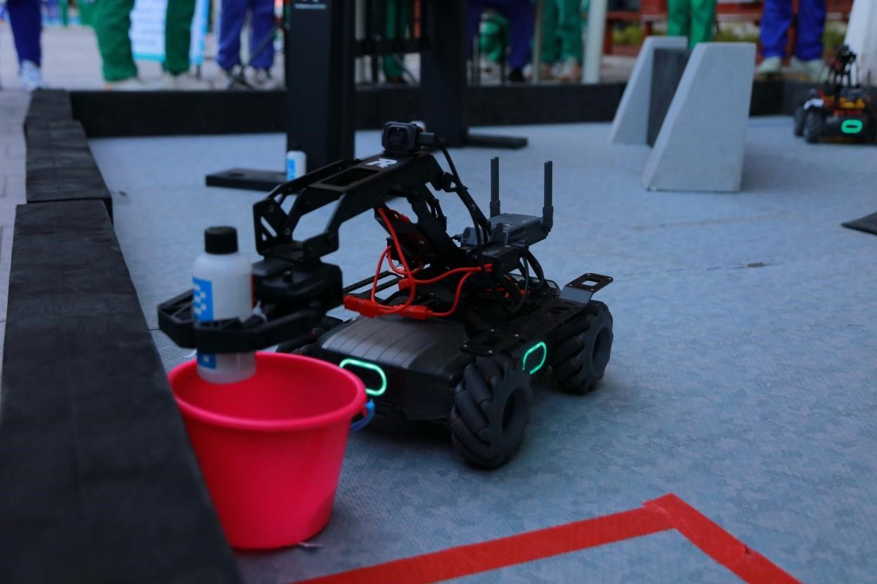 在RMYC工程机器人抓瓶子挑战区,同学们分成小组,操作着由自己设计的机器人,挑战精准抓取不同尺寸的瓶子。机器人的灵活性与精准度成为大家讨论的焦点,而操作过程中技术的不断完善和团队协作的提升,展现了他们对科技创新的理解。