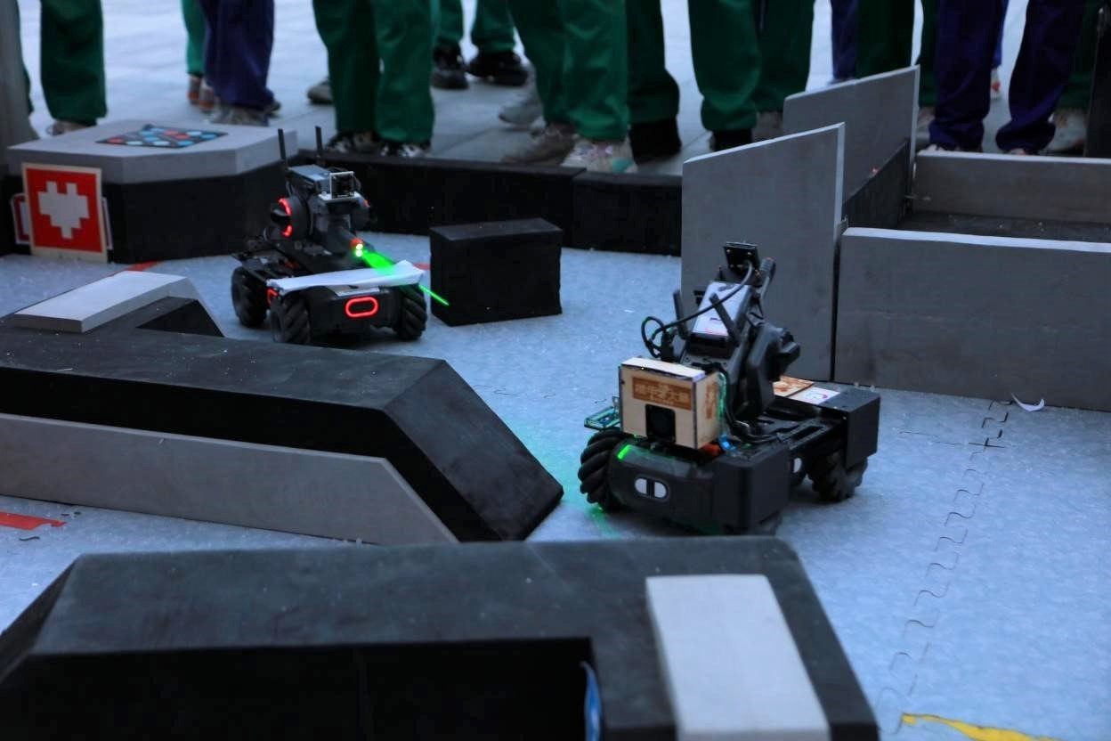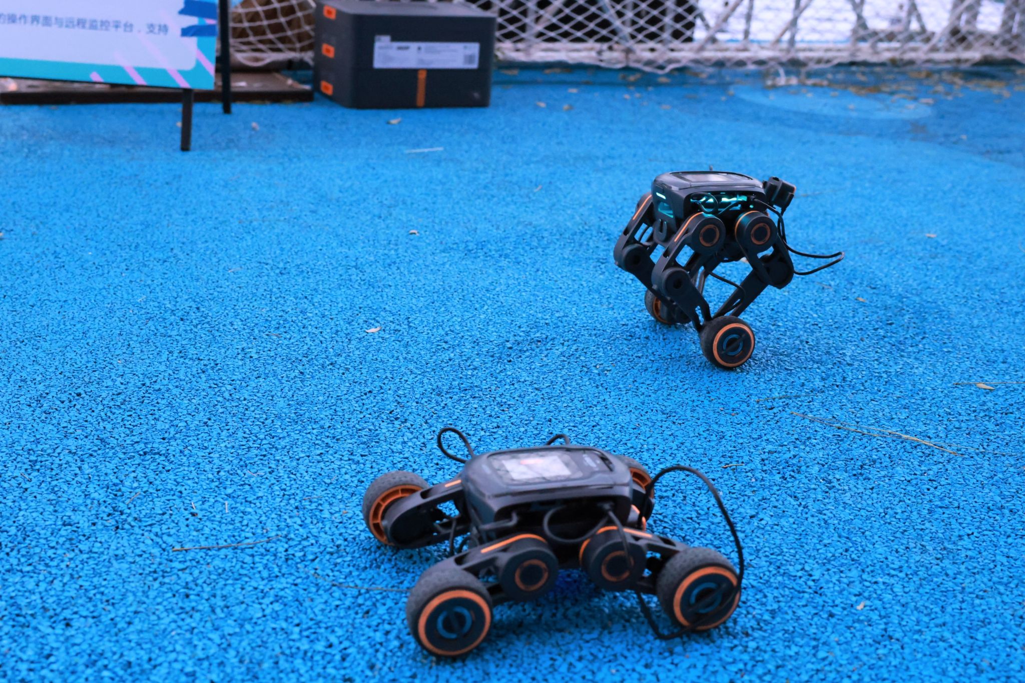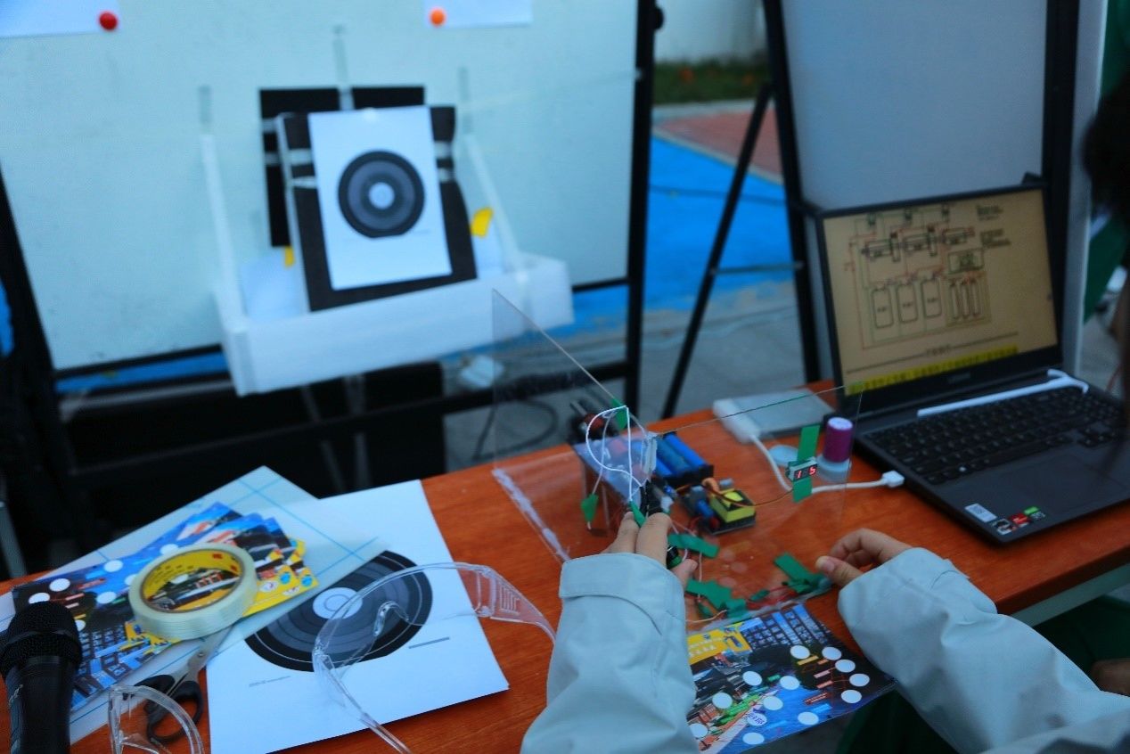 机器人射击对战的互动区域,仿佛将同学们带入了一个未来战场,充满趣味与挑战的机器人战斗让大家在玩乐中体验到工程技术的应用与创新。