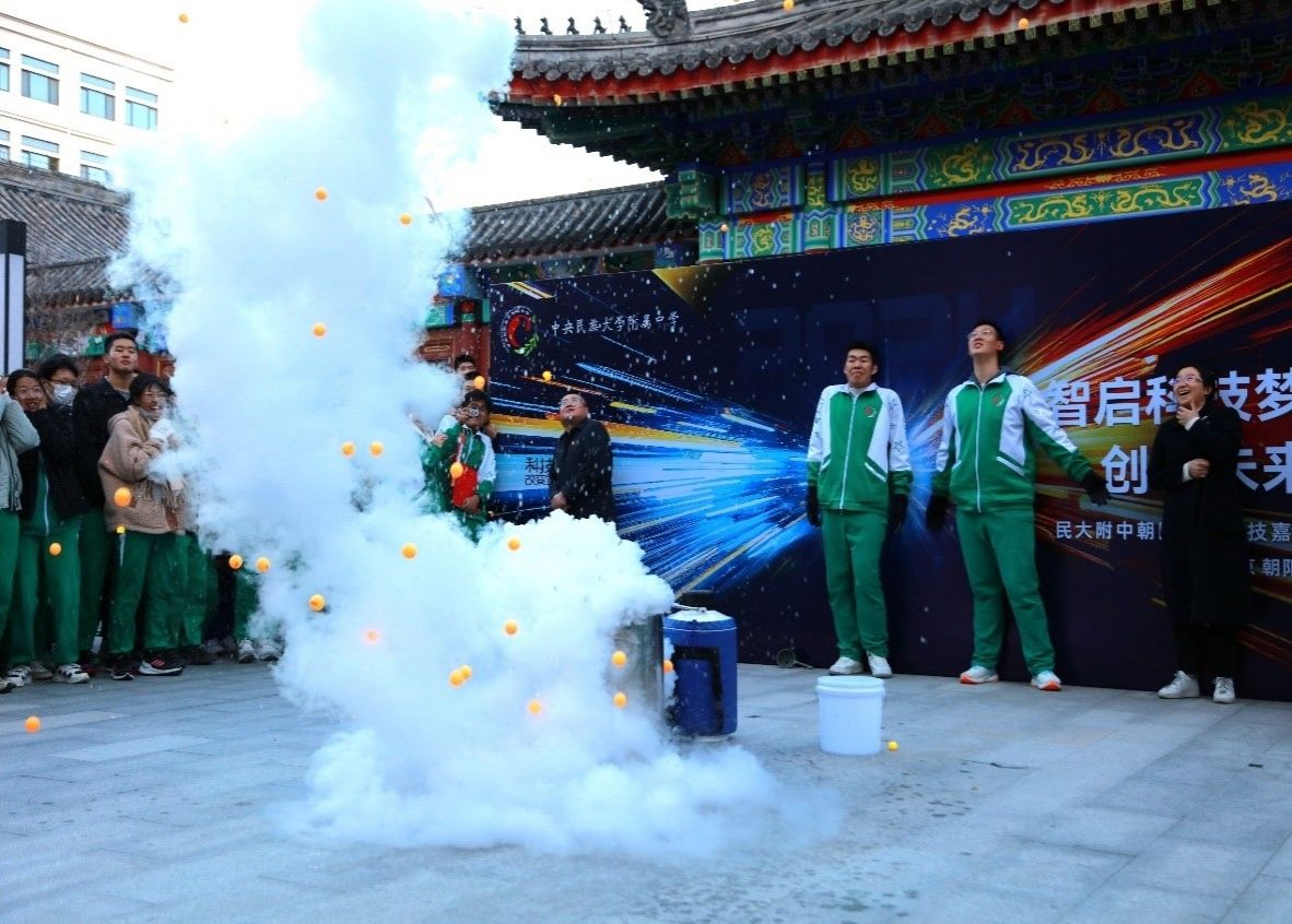 开幕式的高潮是“爆炸乒乓球”的精彩表演,震耳欲聋的声音和腾空而起的烟雾点燃了现场每一个人的热情。此刻,同学们的科技梦想仿佛也在这场视觉与听觉的震撼中被点燃。