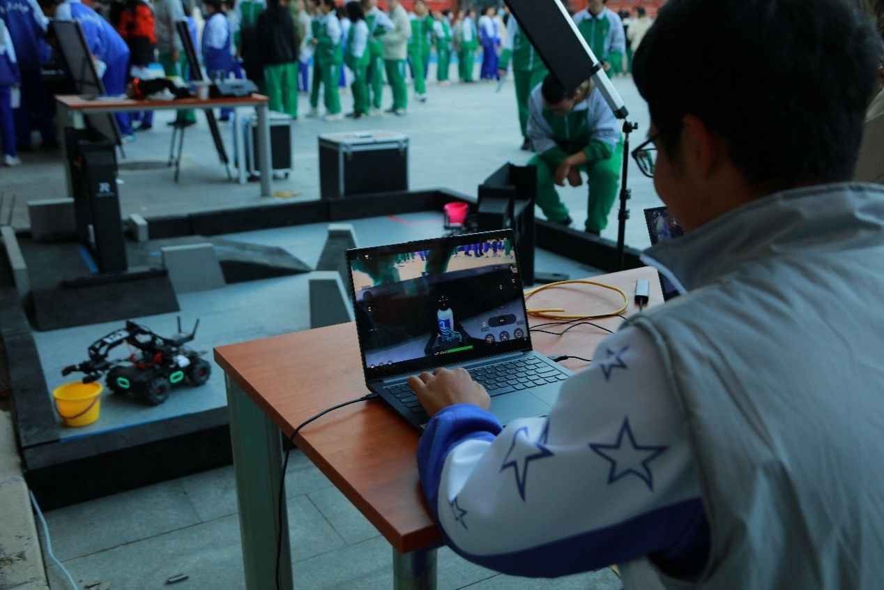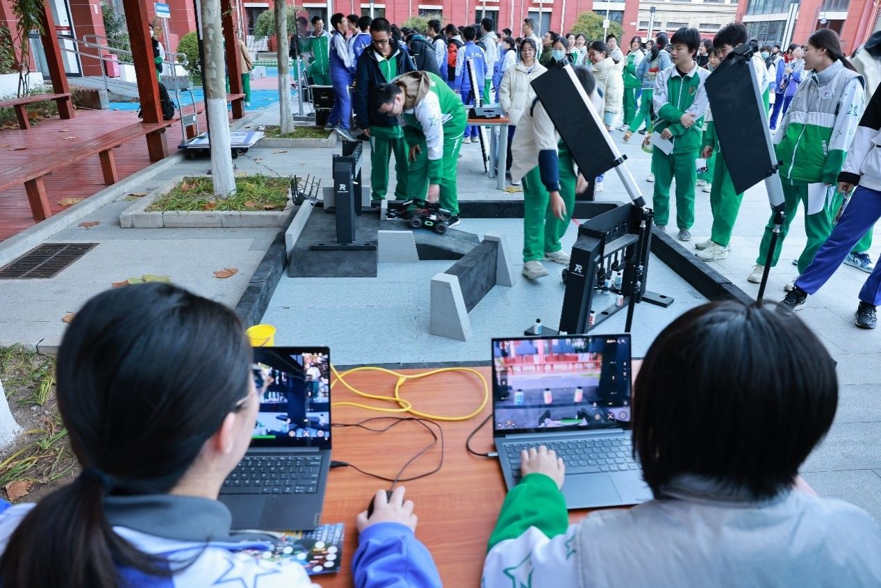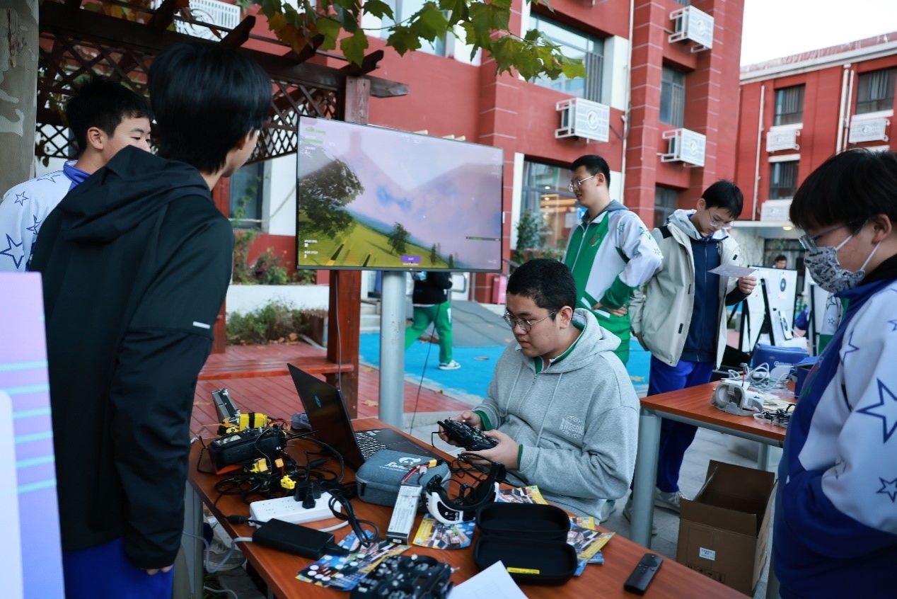 无人机编队表演、穿越机模拟器体验与挑战、RMYC工程机器人抓瓶子挑战、第一视角操作机器人射击对战等多项精彩活动,突破了传统课堂的界限,拓宽了同学们的科学视野,让同学们深入感受了创新科技的震撼与精巧。在实践活动中,同学们的创新精神与团队合作意识得到了提升,为他们日后成为新时代创新型人才播下一颗种子。