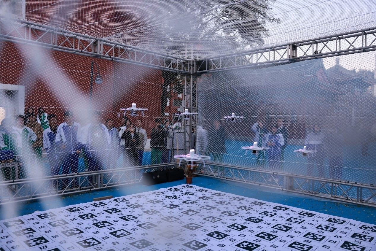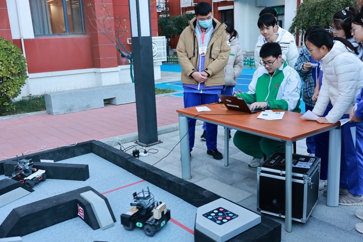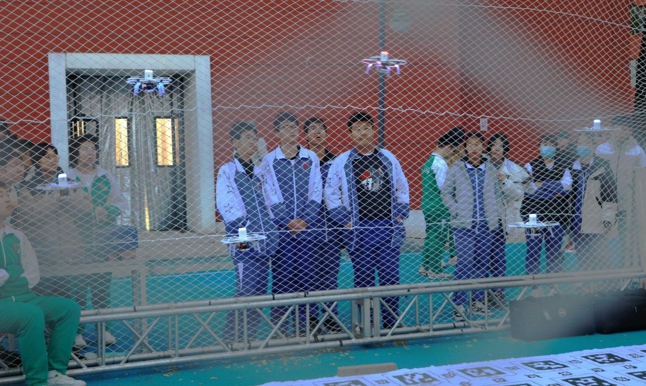 无人机编队表演、穿越机模拟器体验与挑战、RMYC工程机器人抓瓶子挑战、第一视角操作机器人射击对战等多项精彩活动,突破了传统课堂的界限,拓宽了同学们的科学视野,让同学们深入感受了创新科技的震撼与精巧。在实践活动中,同学们的创新精神与团队合作意识得到了提升,为他们日后成为新时代创新型人才播下一颗种子。