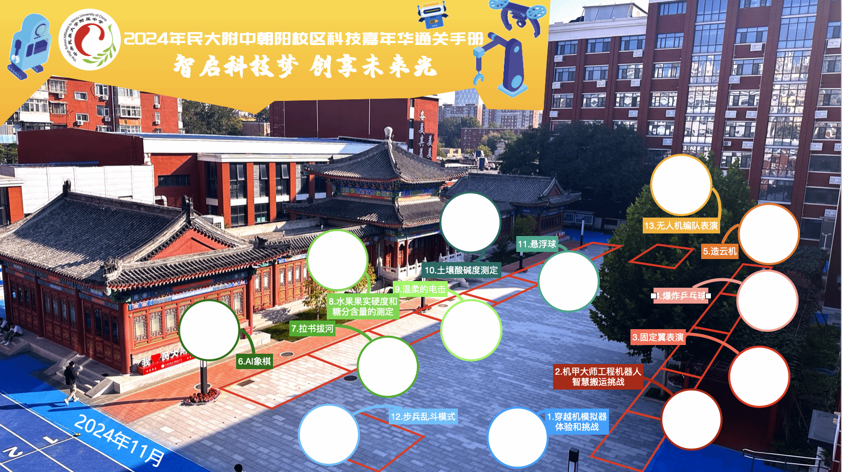2024年11月21日下午,民大附中朝阳校区成功举办了以 “智启科技梦,创享未来光”为主题的科技嘉年华活动,旨在响应国家对科普教育的号召,完善我校拔尖创新人才的培养体系,激发同学们的科学热情,培养科学创新精神与实践能力,并为未来的科技之星提供展示与锻炼的平台。