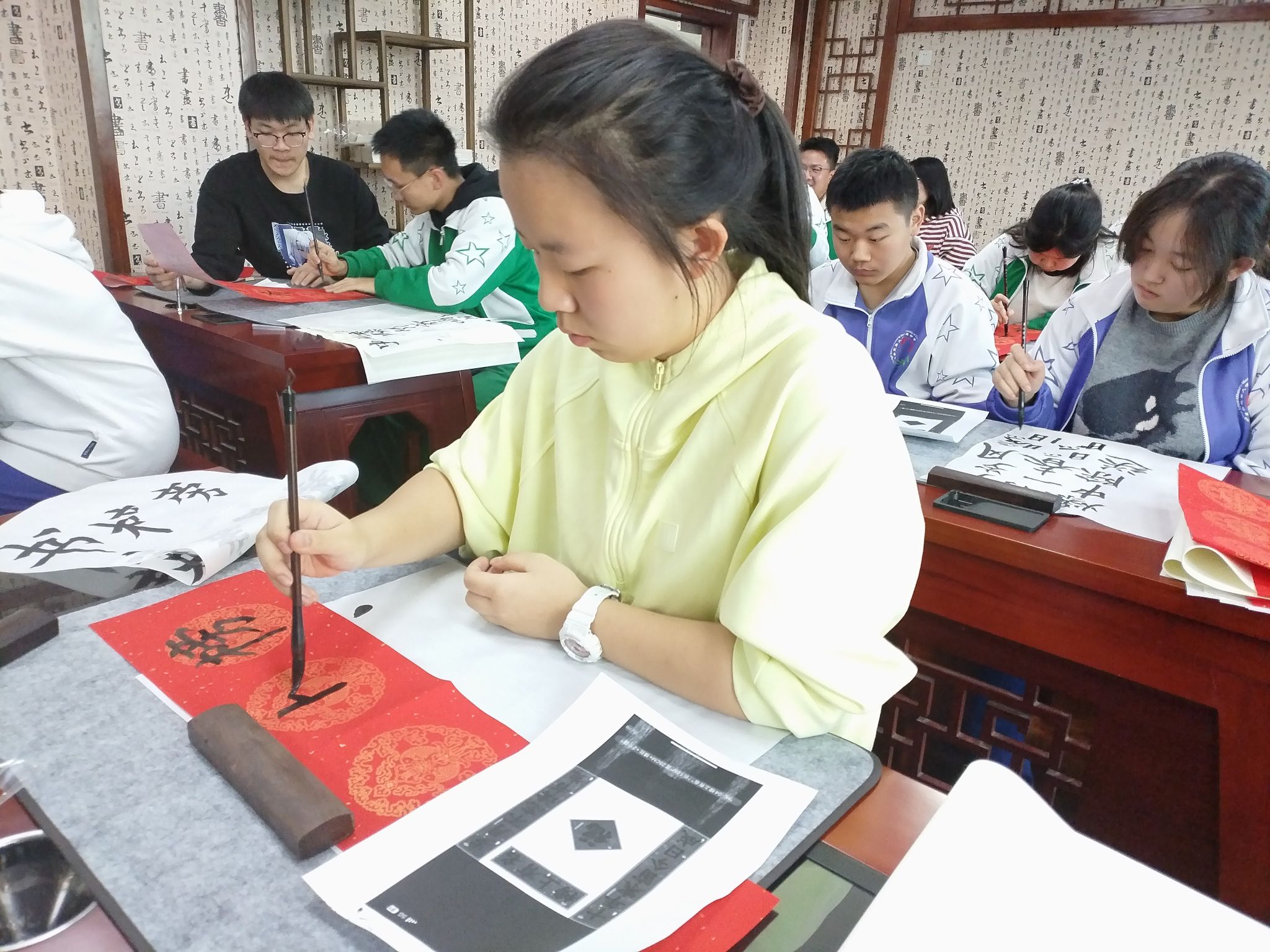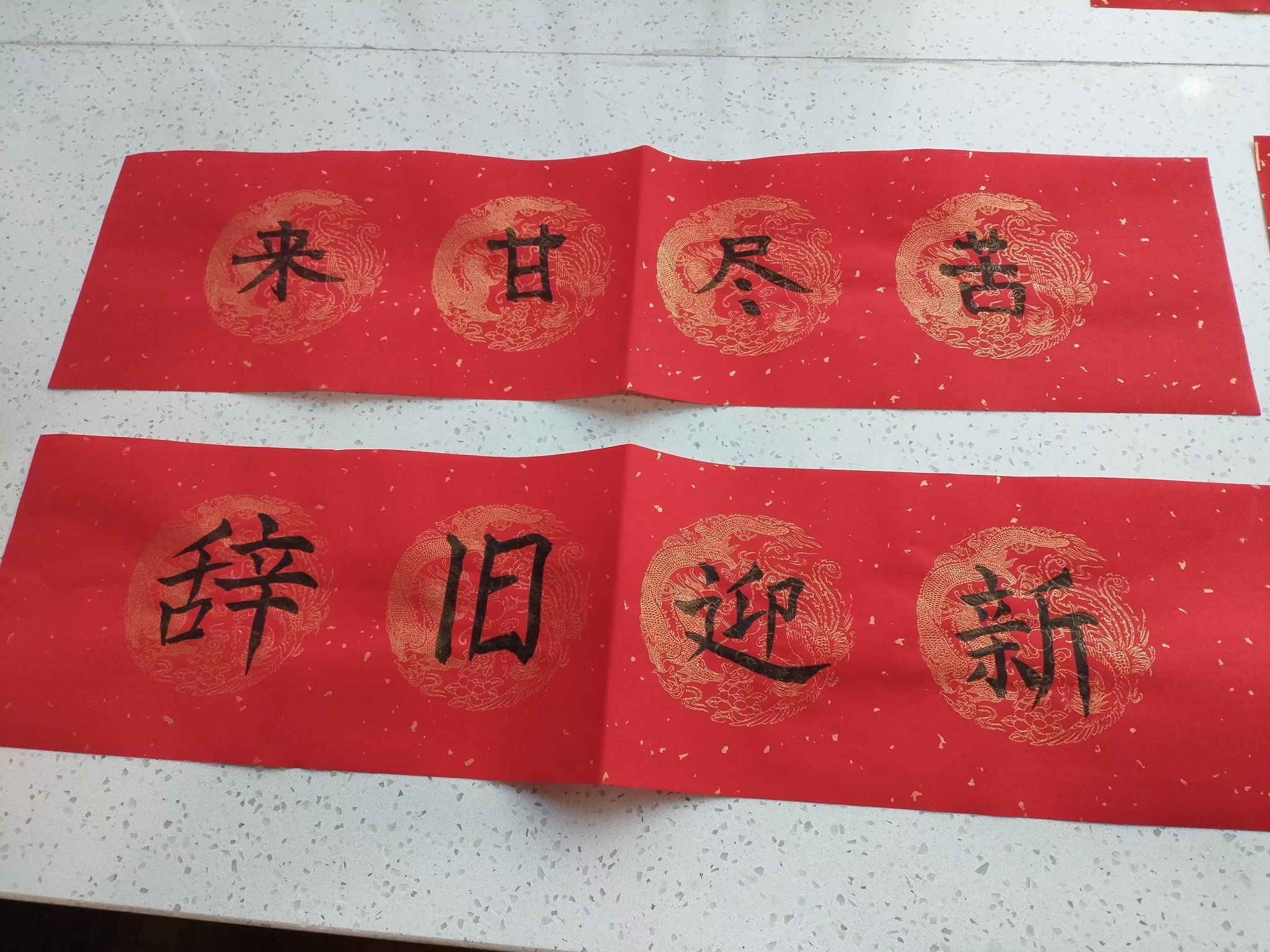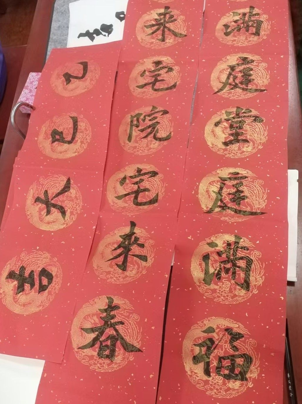 参与活动的同学们和老师现场挥毫泼墨,动作流畅,压纸、蘸墨、挥笔、收笔,笔尖在纸上舞动,他们或临摹或创作,书写着对新年的美好祝愿和对未来的无限憧憬。不一会儿,一幅幅洋溢着节日气息、寓意美好的春联便呈现眼前,每一副春联都充满了个性和创意,汉字和书法的魅力在一笔一画中绽放。