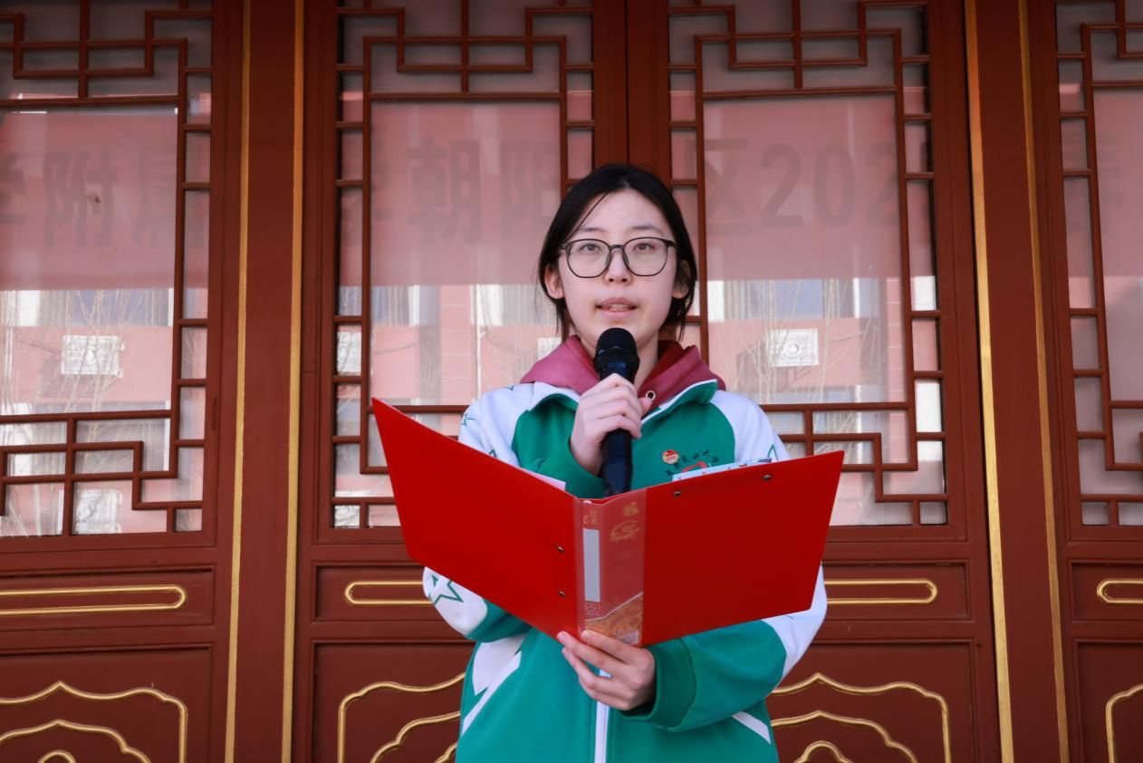 最后,民大附中副校长、朝阳校区执行校长魏立功热情致辞,他首先代表民大附中校长唐洪波、党委常务副书记佟丽娟向朝阳校区全体师生致以新学期的问候和美好的祝愿。他对校区全体同学过去一年取得的进步和收获表示祝贺。