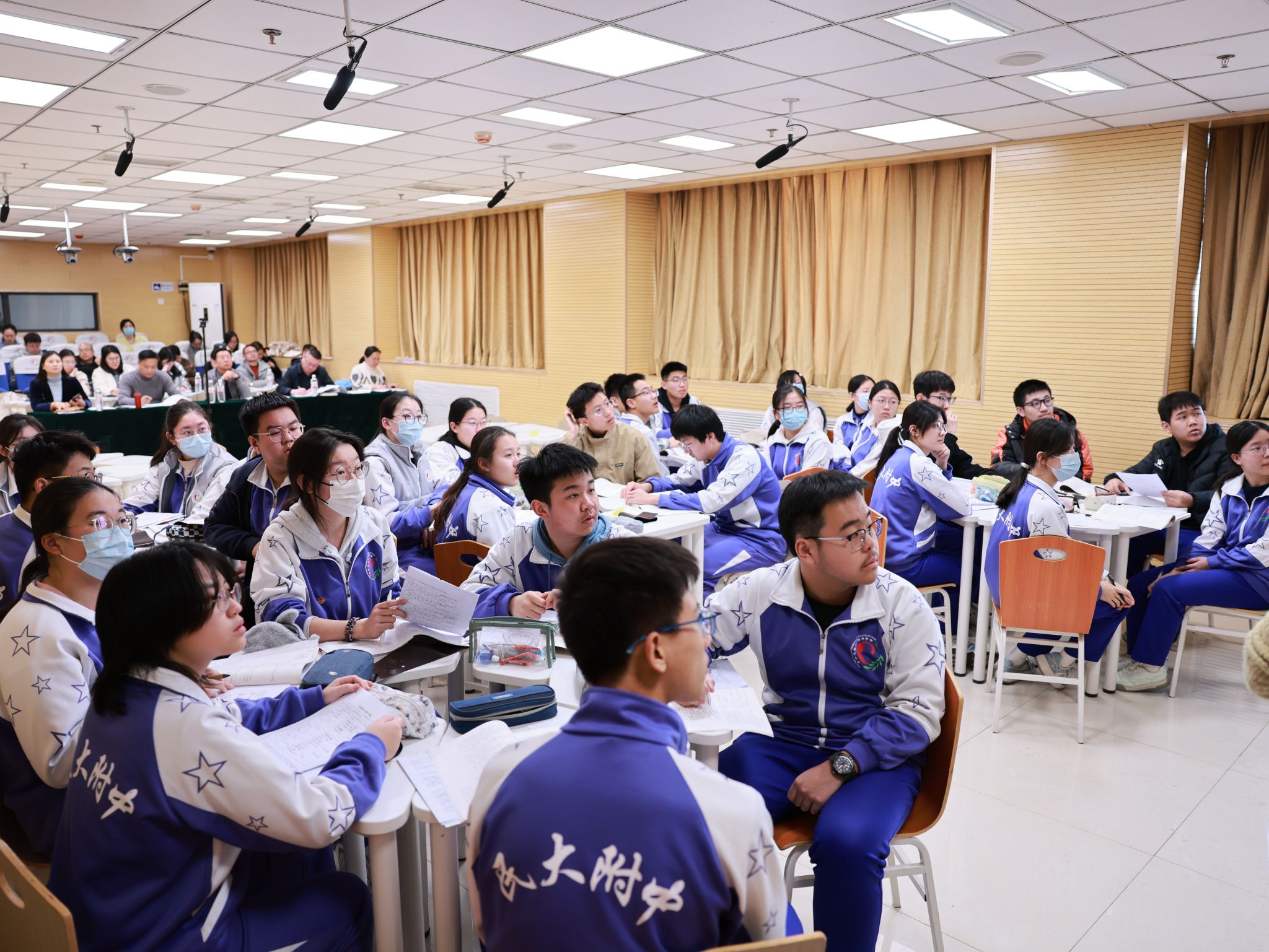 全国著名特级教师、北京教育科学研究院基教研中心语文教研员连中国,中国教育报社教育大数据研究院技术总监陈兴和,无锡市滨湖区名特教师培养项目组的各位老师,民大附中朝阳校区执行校长魏立功,民大附中朝阳校区副校长韩秀清,民大附中教科室主任姜明亮,民大附中朝阳校区语文组教师共同参加活动,此外,民大附中集团各分校语文组的各位老师,以及新加入集团合作共建校的河口高级中学的各位老师在线上参加了此次活动。活动涵盖观摩教学和座谈会两部分,分别在校区录播室和辟雍南厅举行。
