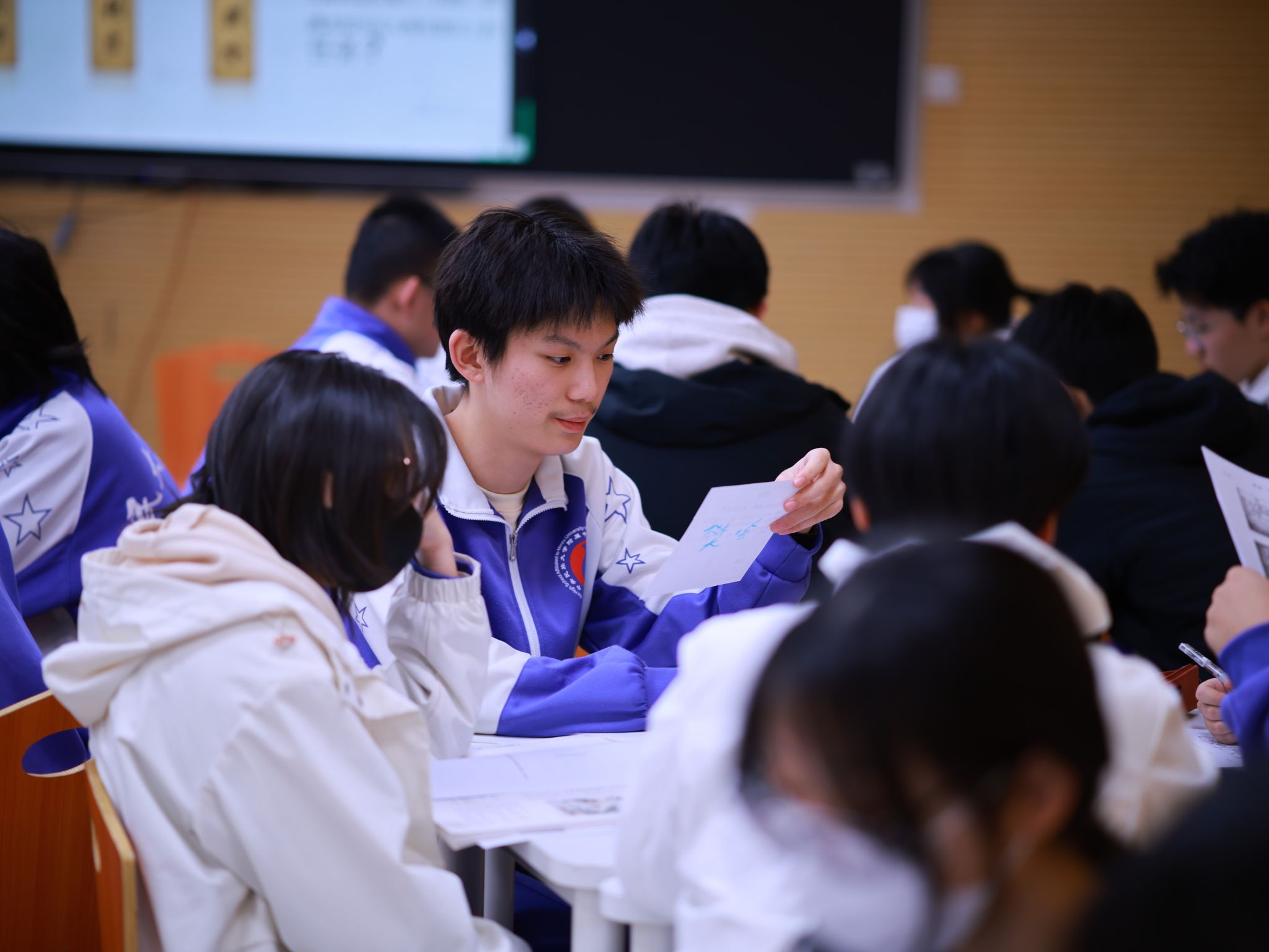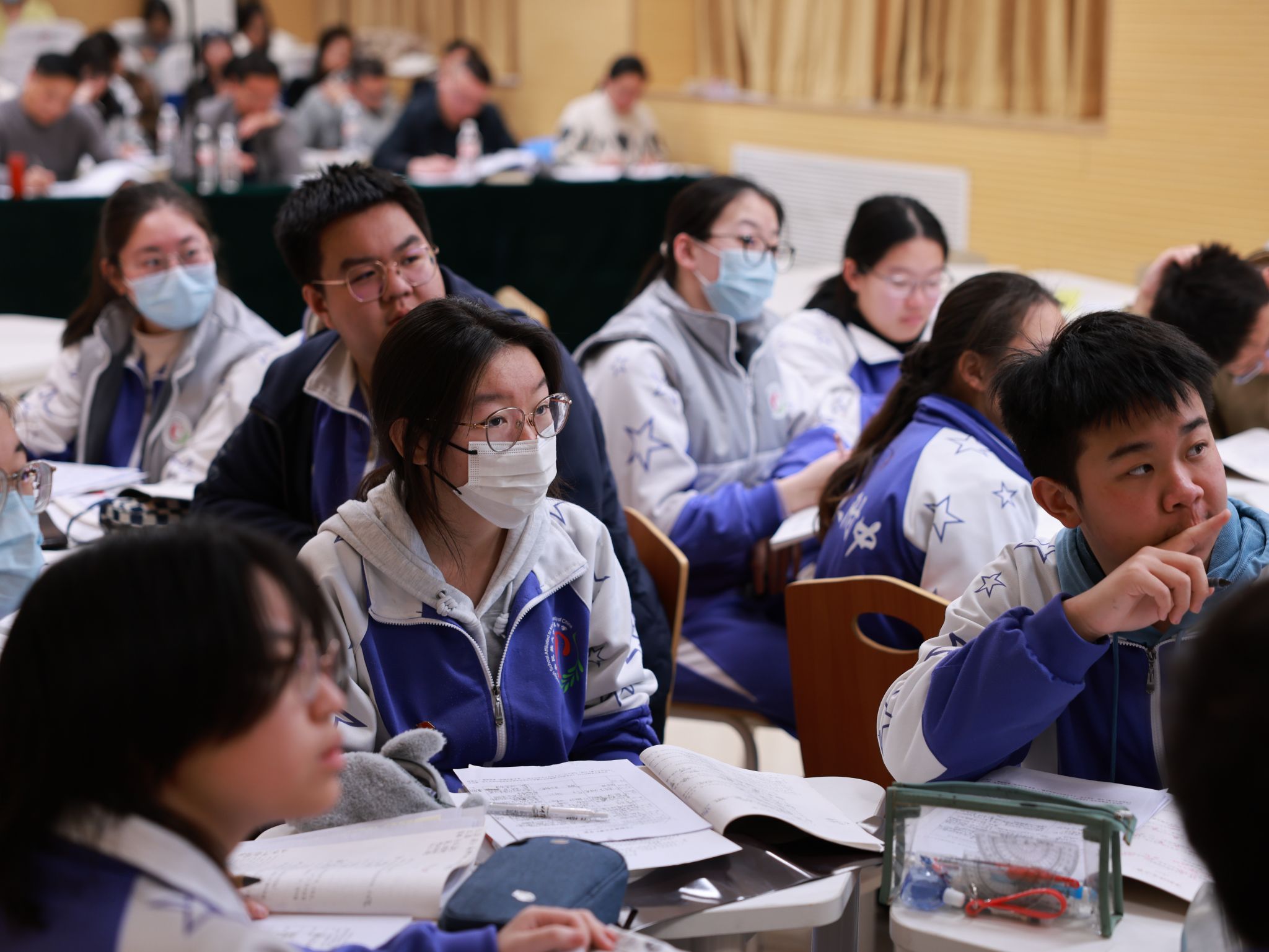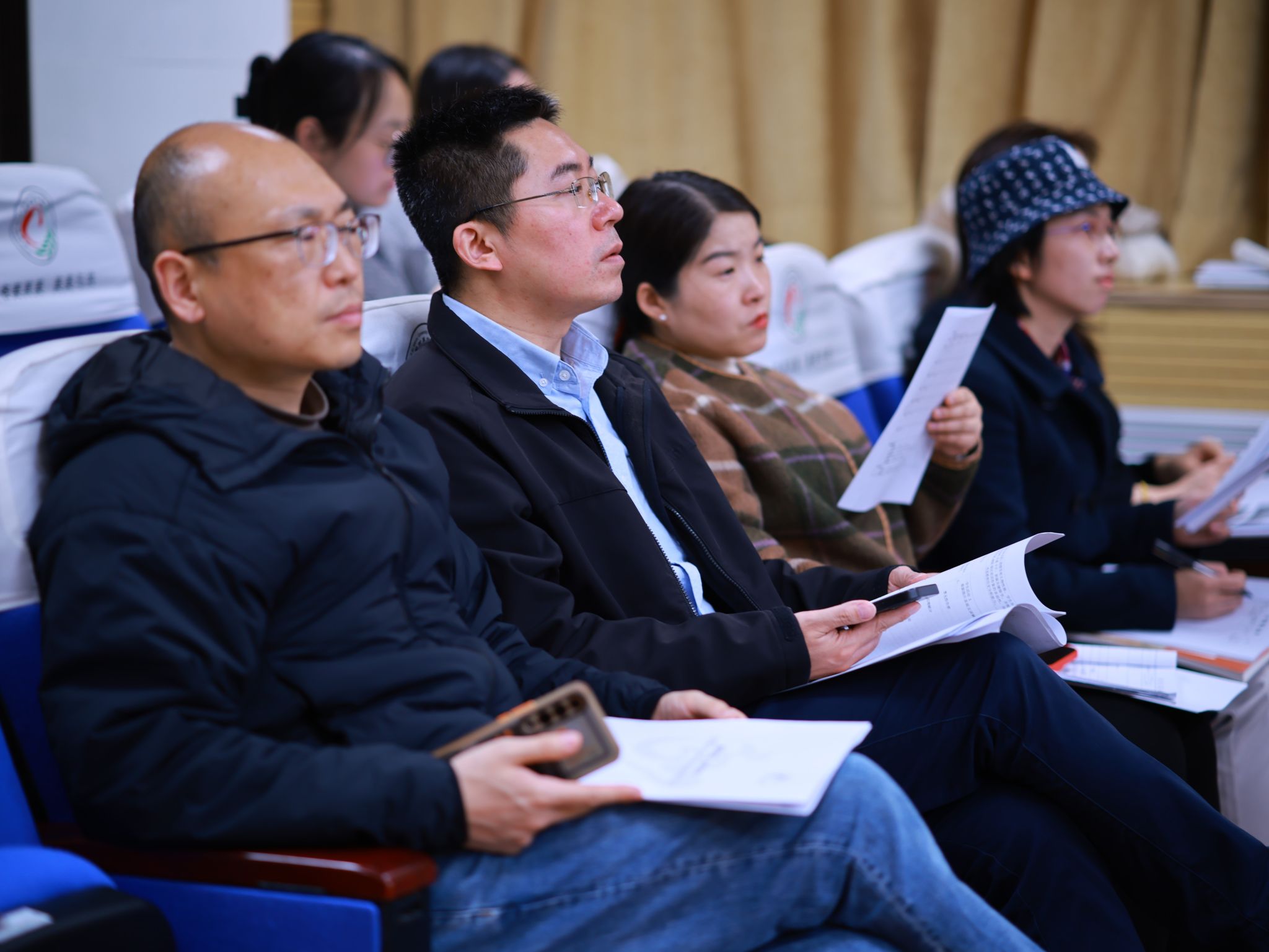 观摩课现场气氛热烈融洽,活动成员神情专注,认真倾听。