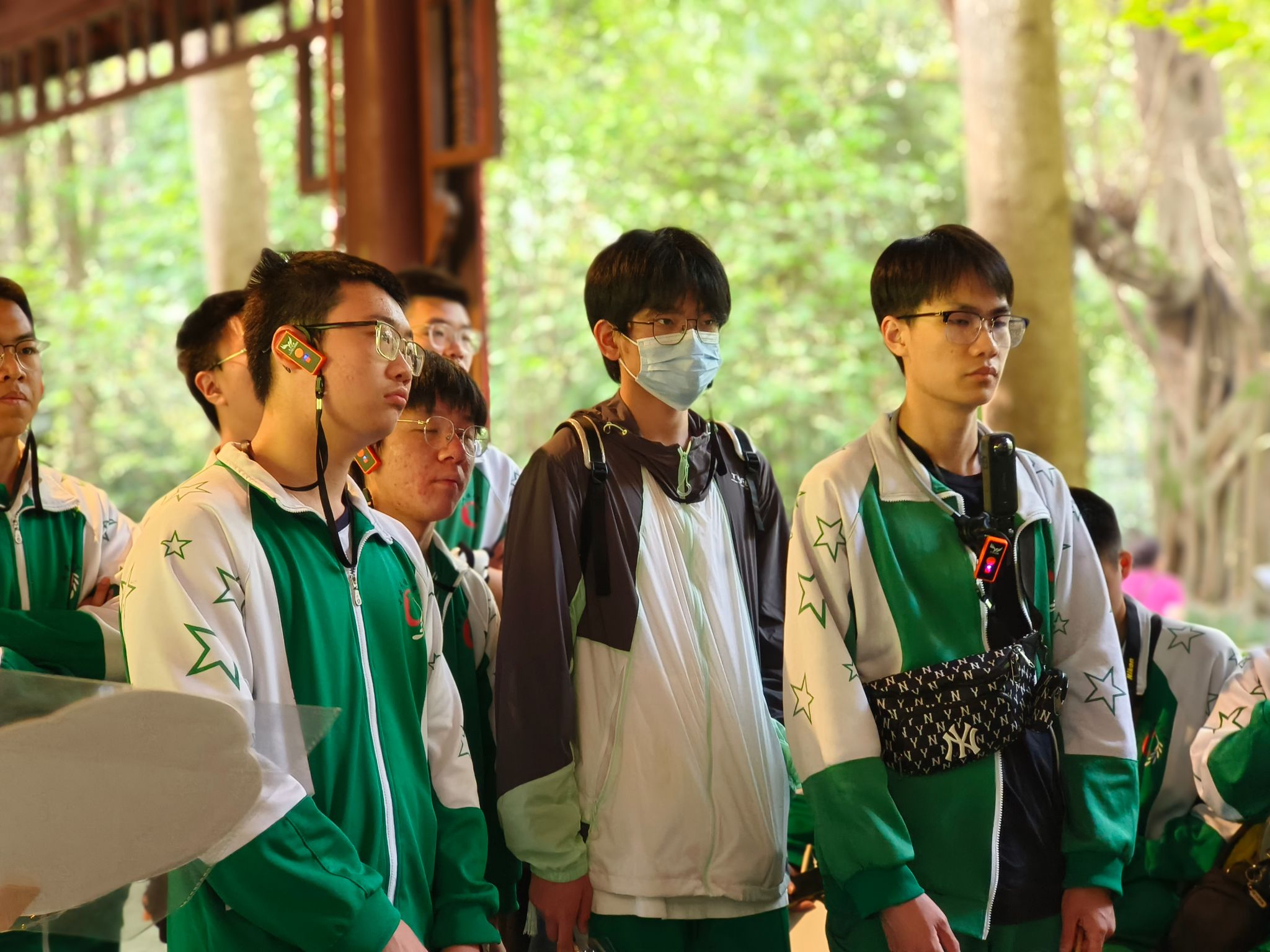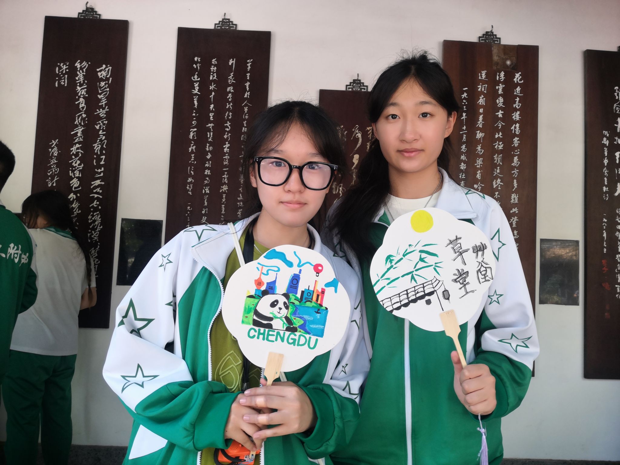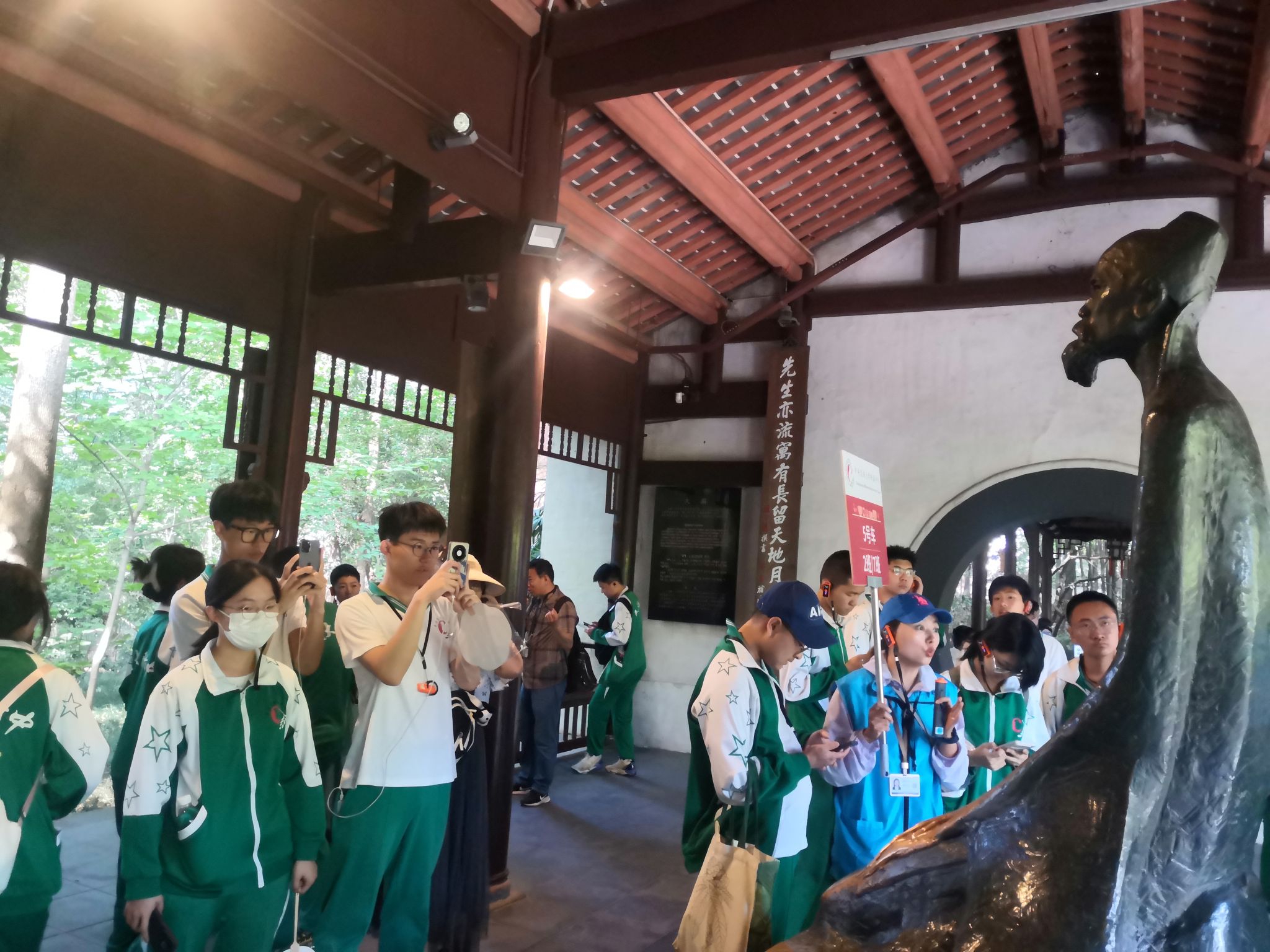 穿过青竹掩映的小径,A团走进了诗圣杜甫的草堂。同学们探访旧居,了解杜甫流寓成都时期的生活与创作背景,在古今间探寻诗意的回响。