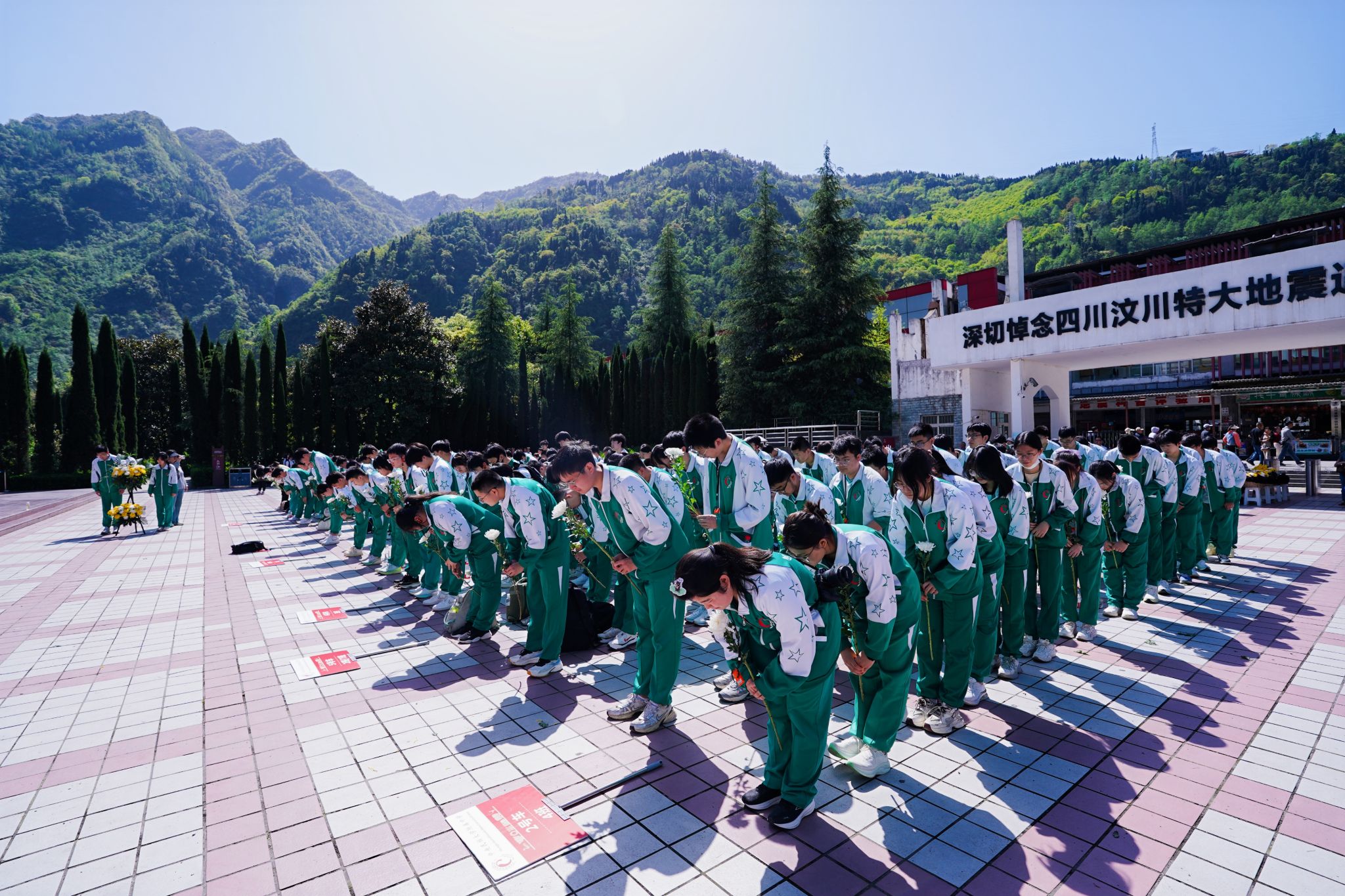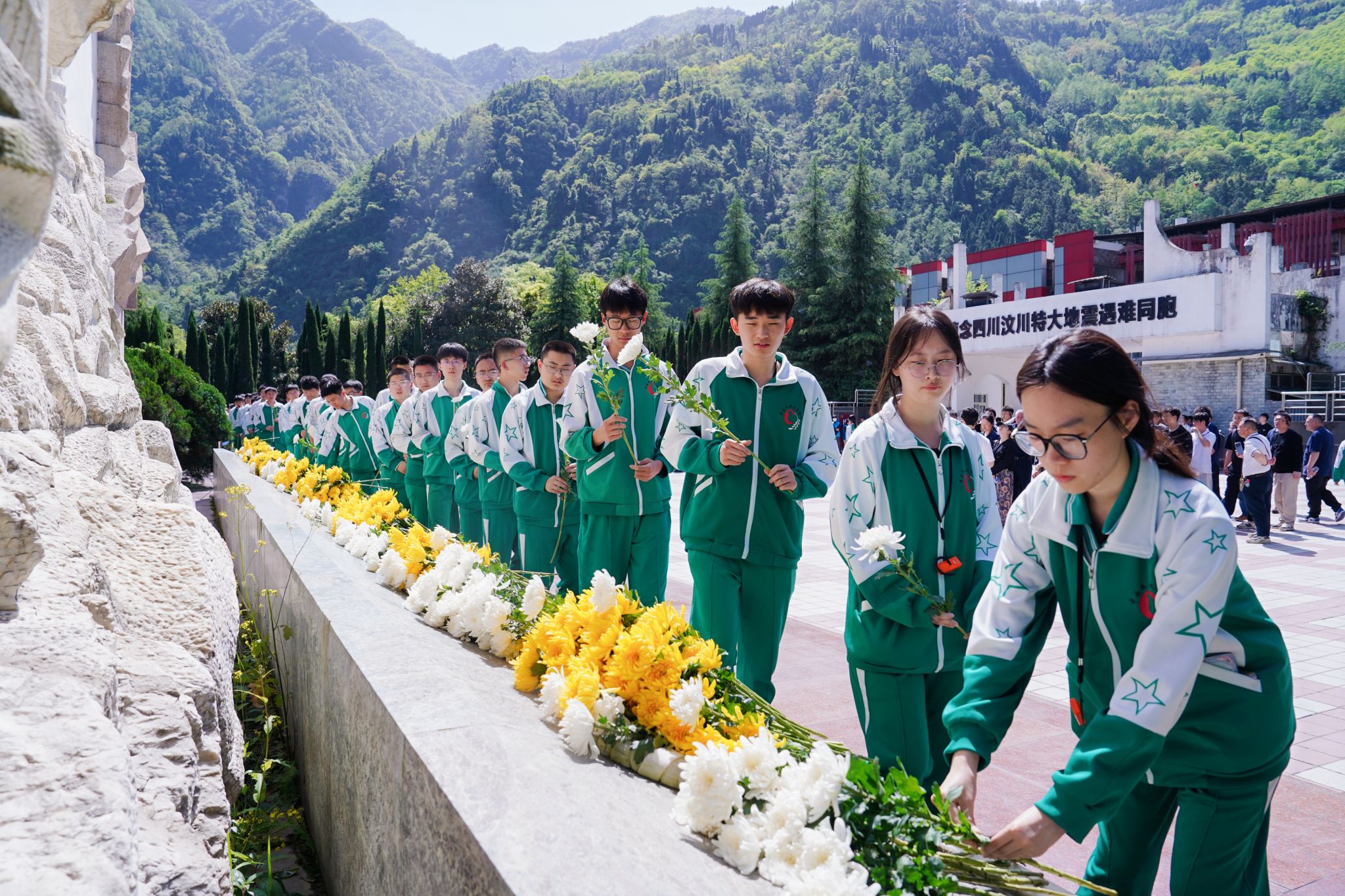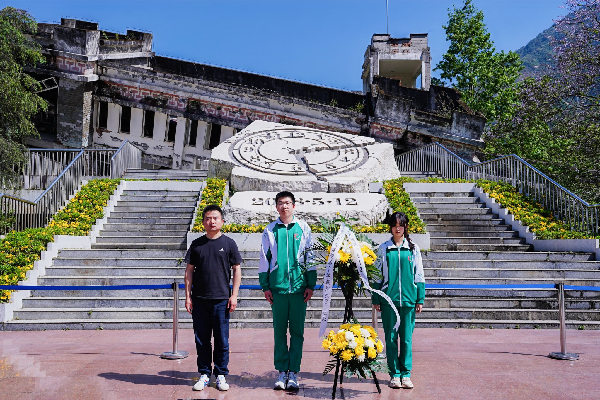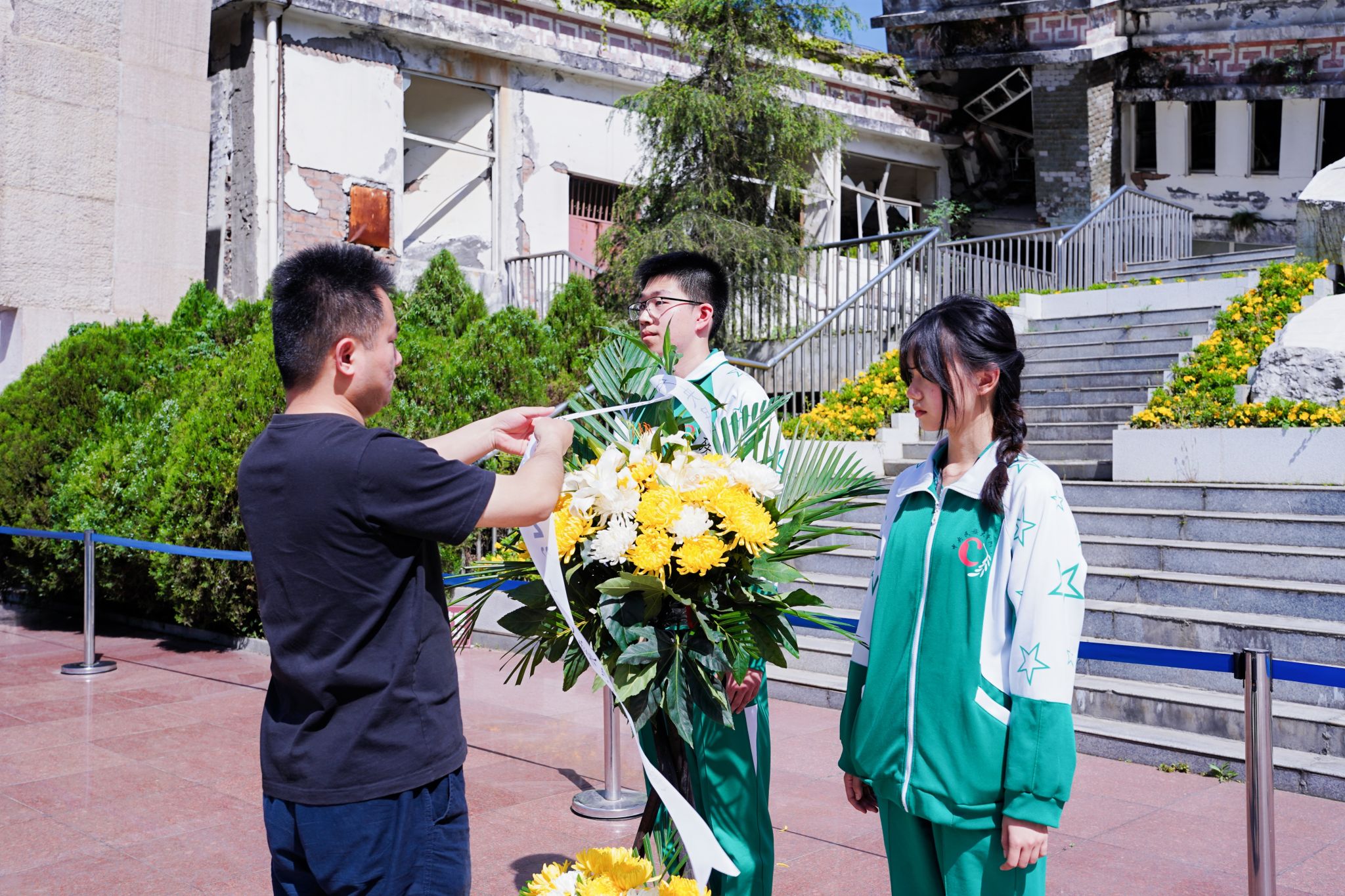 A团学子缓步走近,神情肃然。眼前是断裂的操场、倾斜的教学楼、崩塌的楼板,一切定格在那个不可忘却的春日。讲解员轻声讲述当年的震情与守护者的故事,每一个名字,都有分量。
