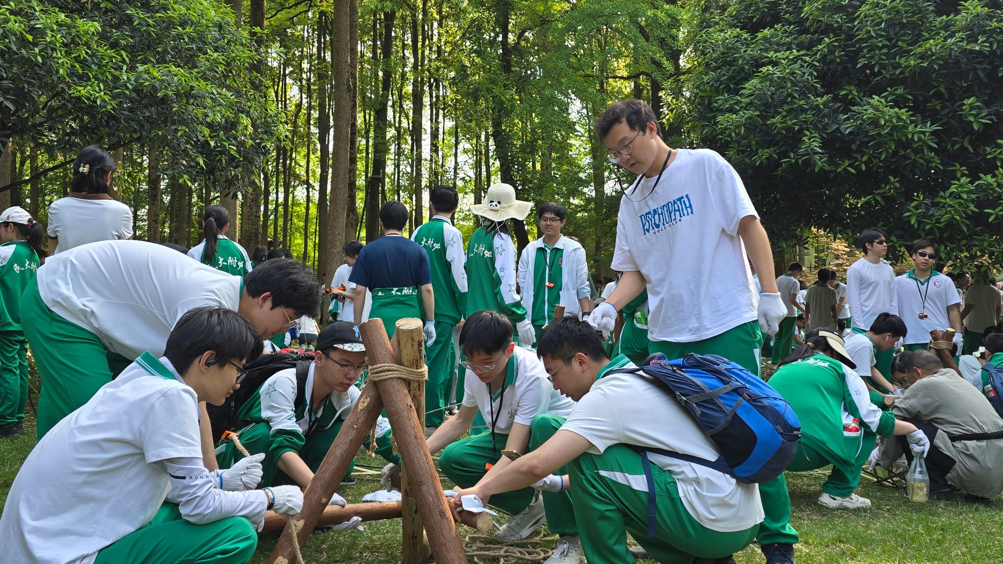 走进熊猫谷,翠竹摇曳,空气中弥漫着潮湿与青草气息。B团学子穿行其间,悄声观望憨态可掬的大熊猫。