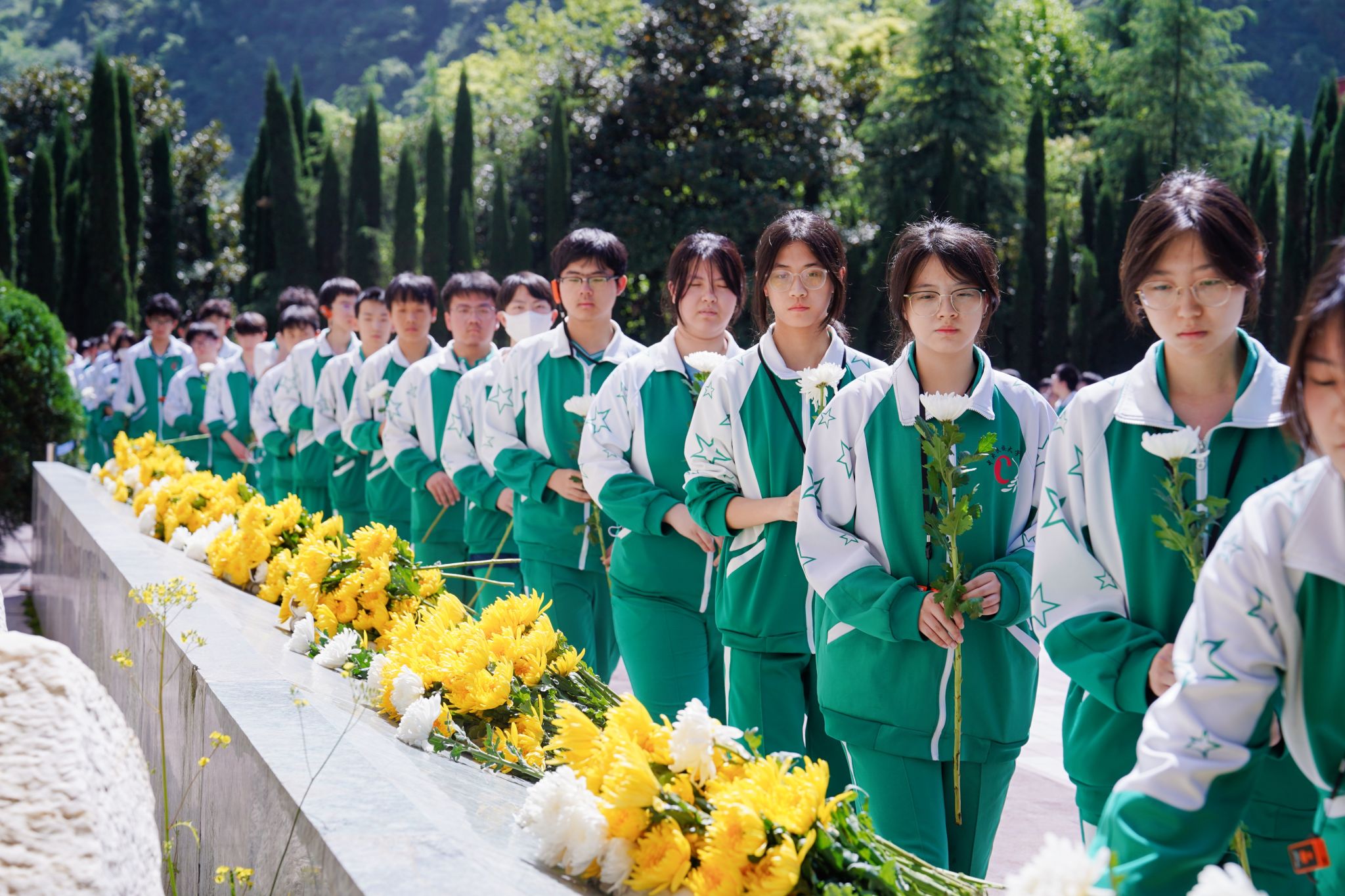 在纪念仪式中,两位同学代表敬献花篮,全体肃立默哀,随后举起右拳,郑重宣誓。他们以一束花、一句承诺,铭记逝者,也唤醒对责任的思考。